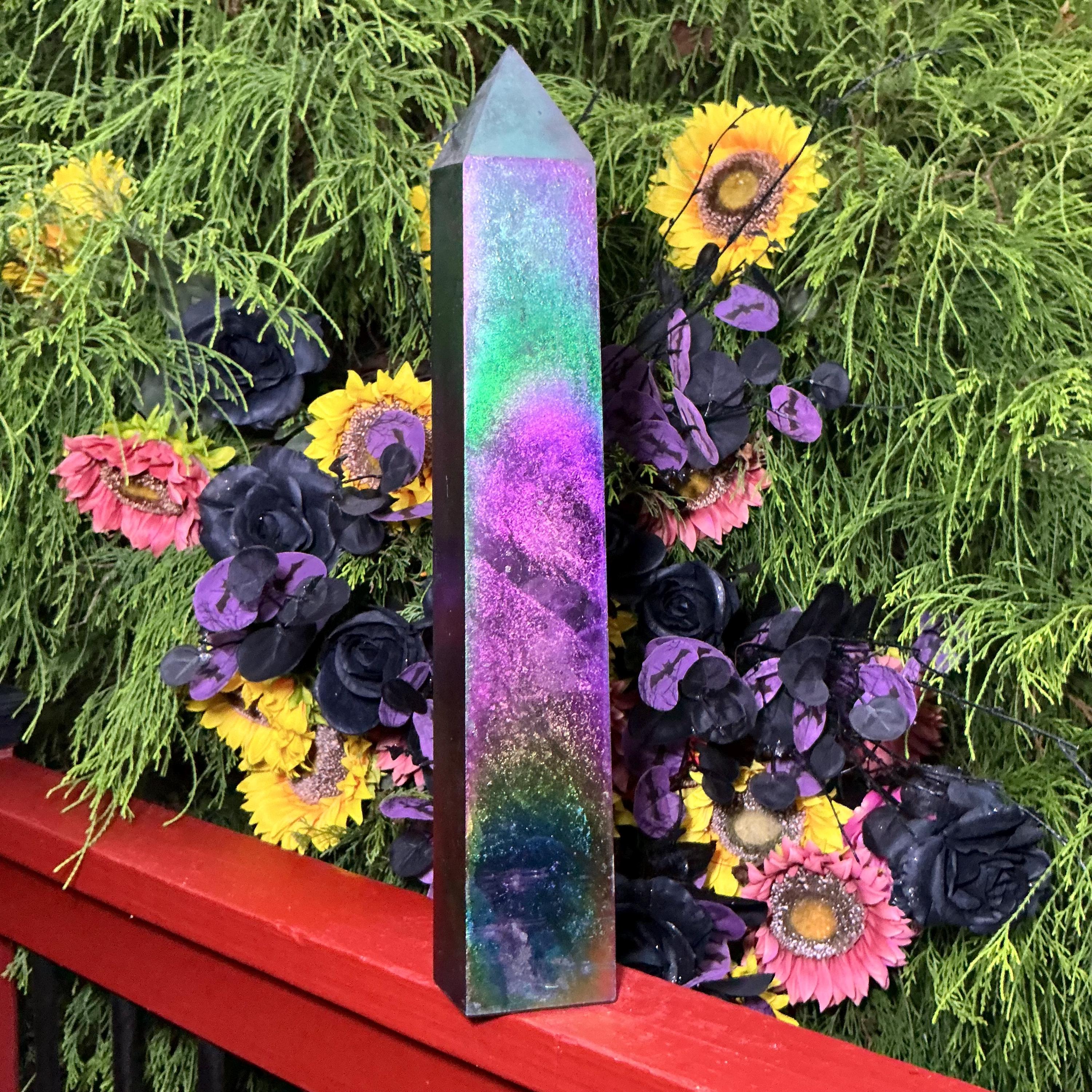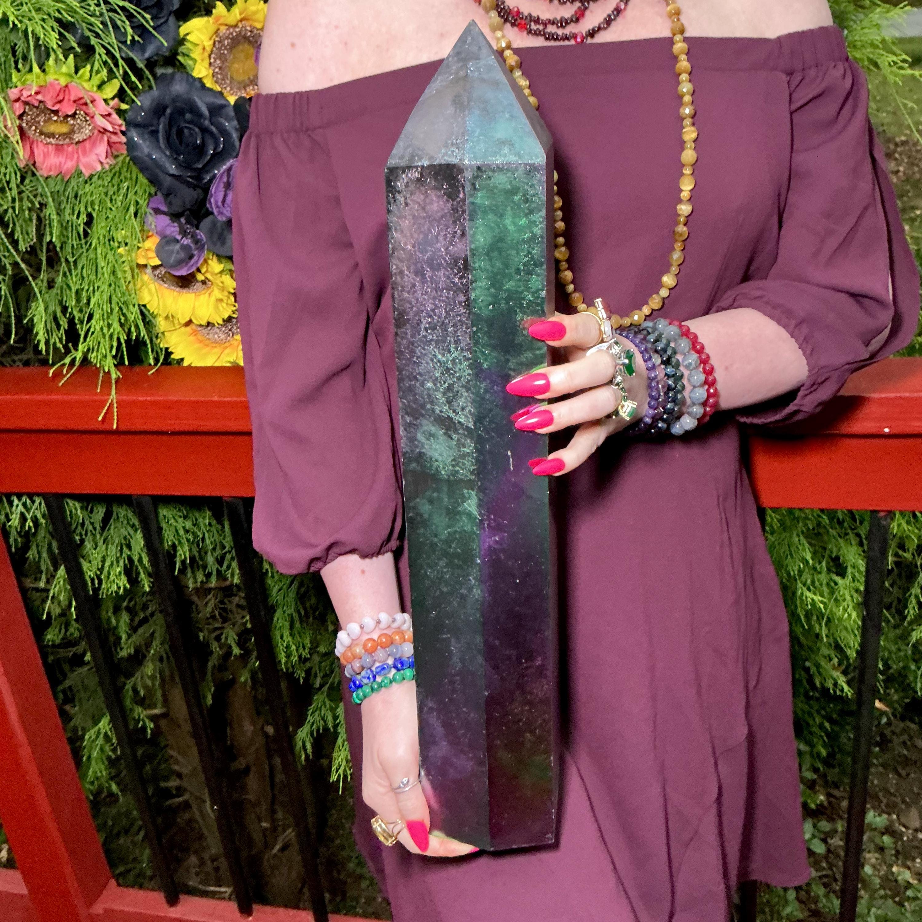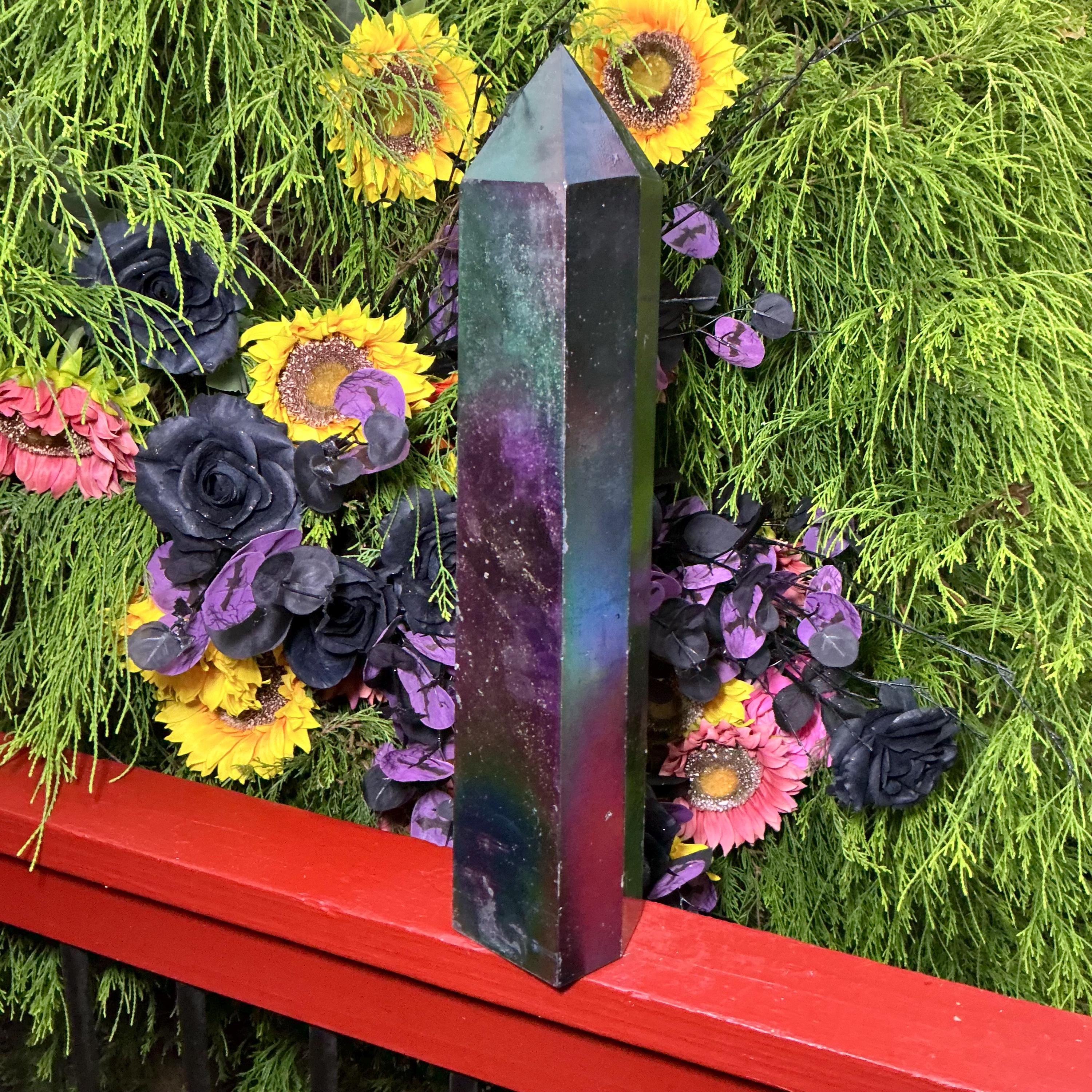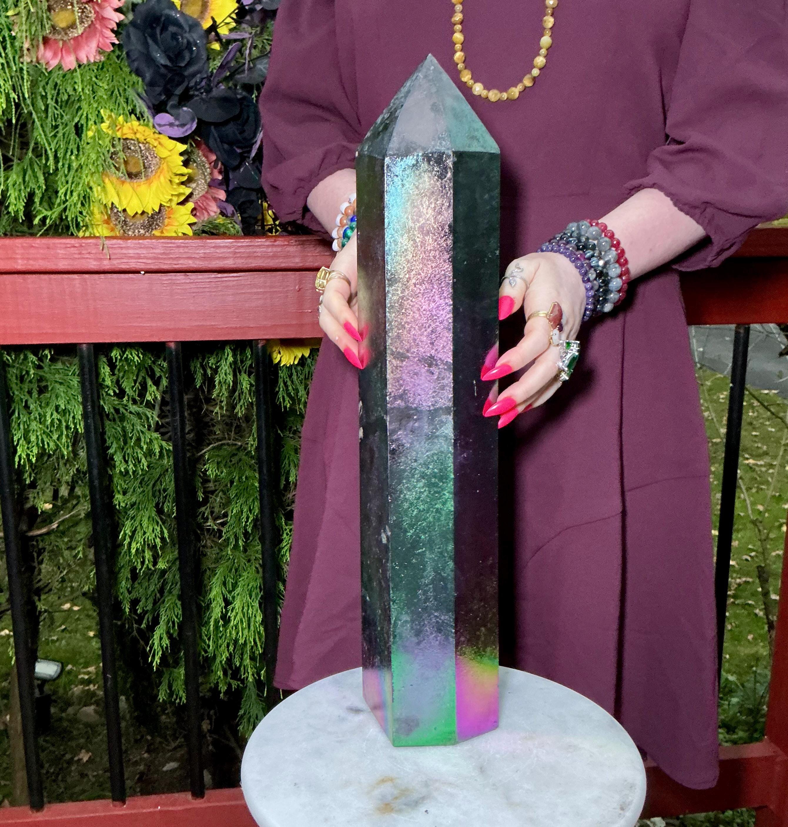 Aura Shungite Crystal Generator ~ Large 25 Lb. ~ 21" Tall Tower ~ Rainbow Colors ~ Pink, Blue, Green, Yellow ~ Fast & Free Shipping from USA