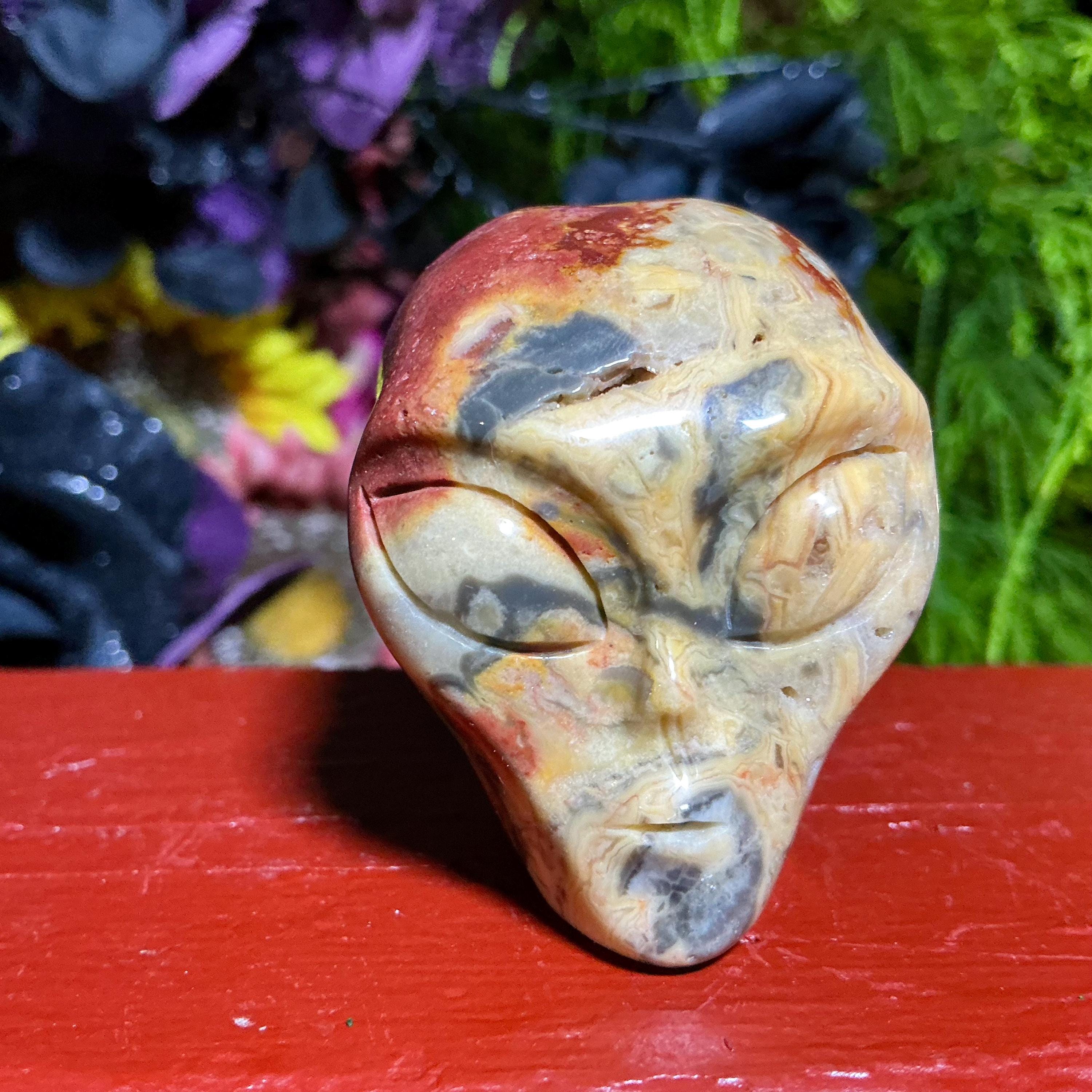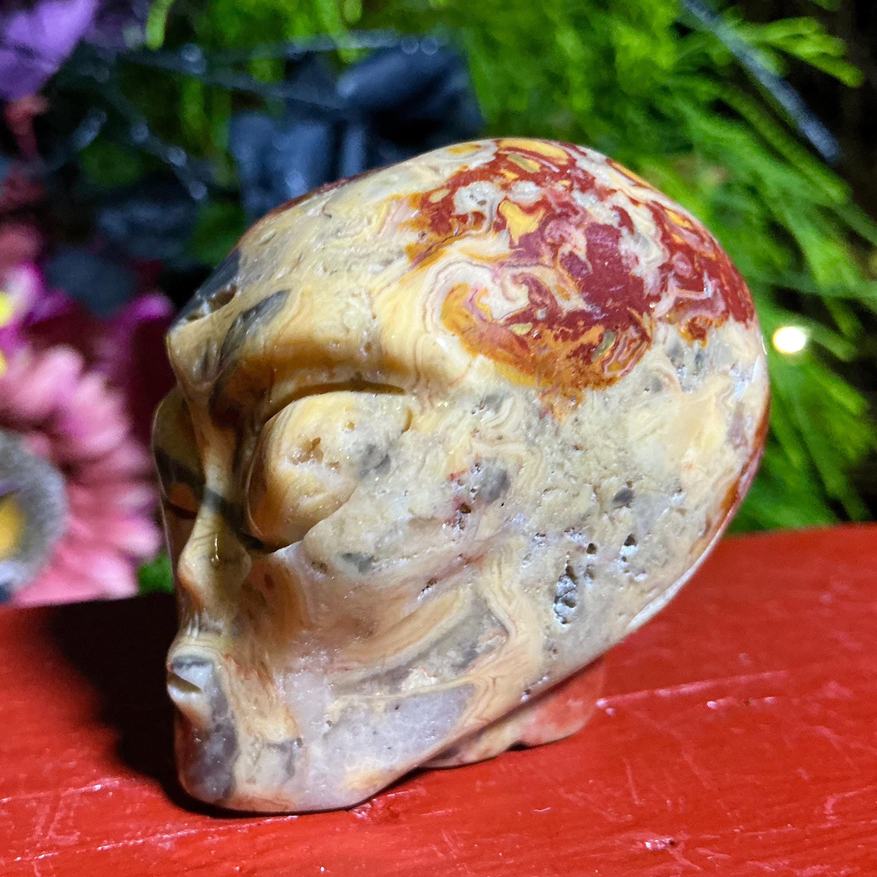 This red and yellow Crazy Lace Agate Mini Skull is a very nice specimen and extremely hard to find in this size making it a one-of-a-kind treasure.