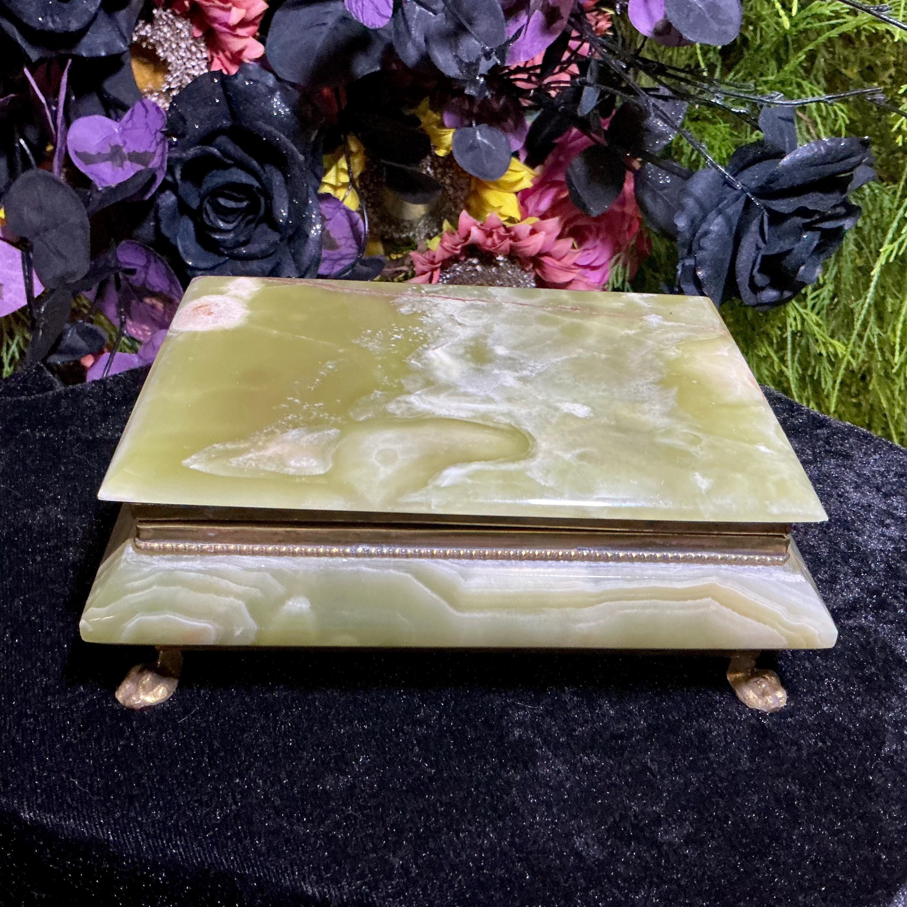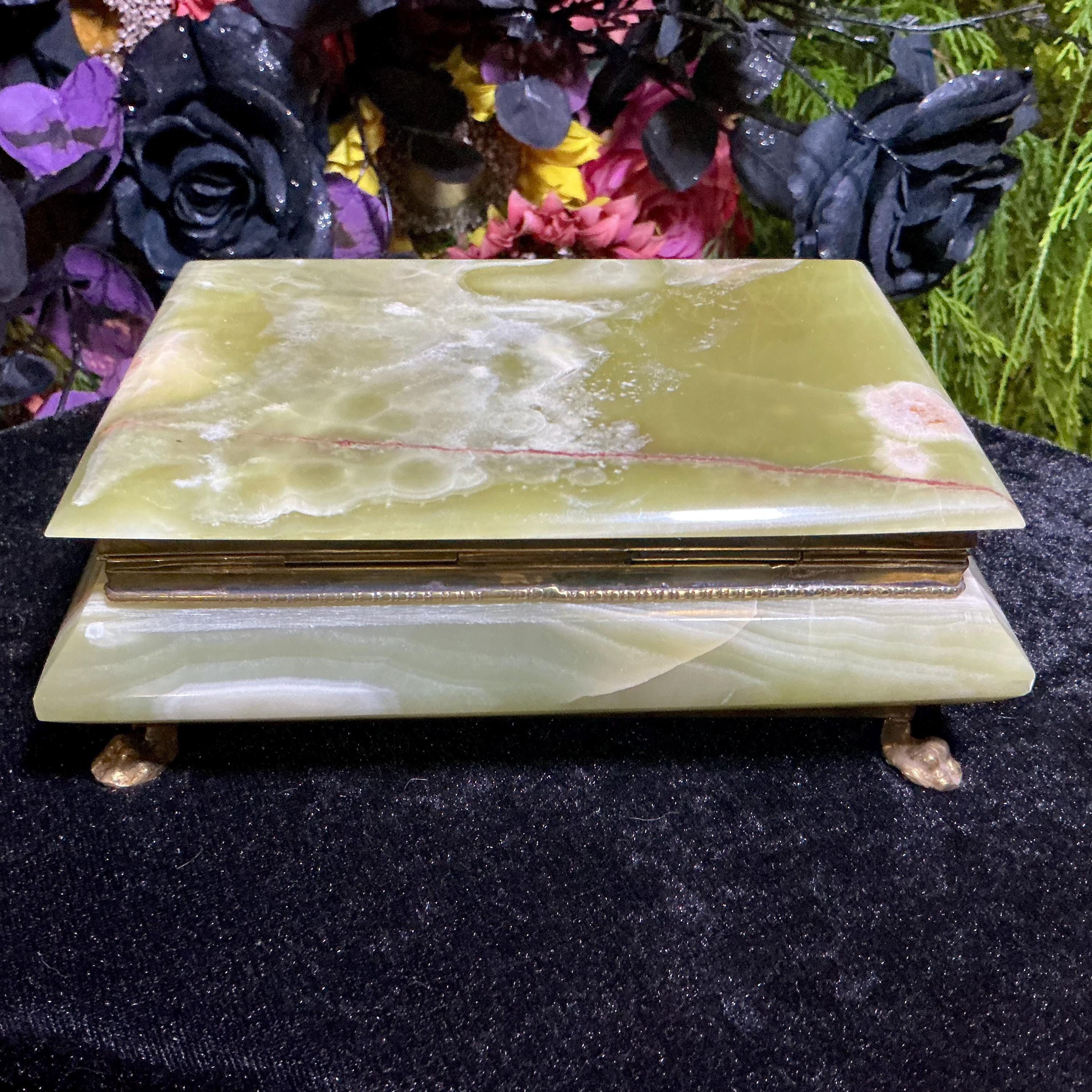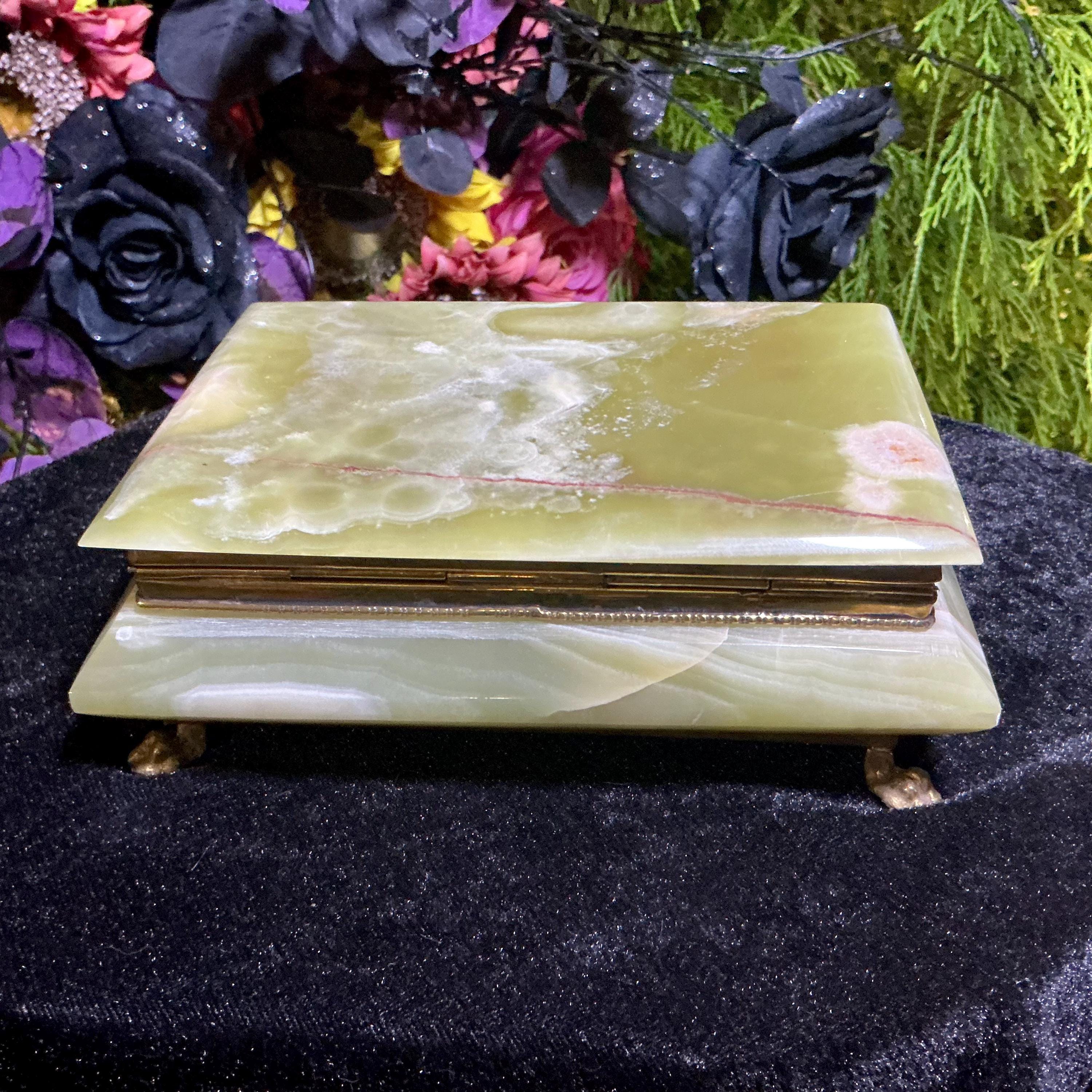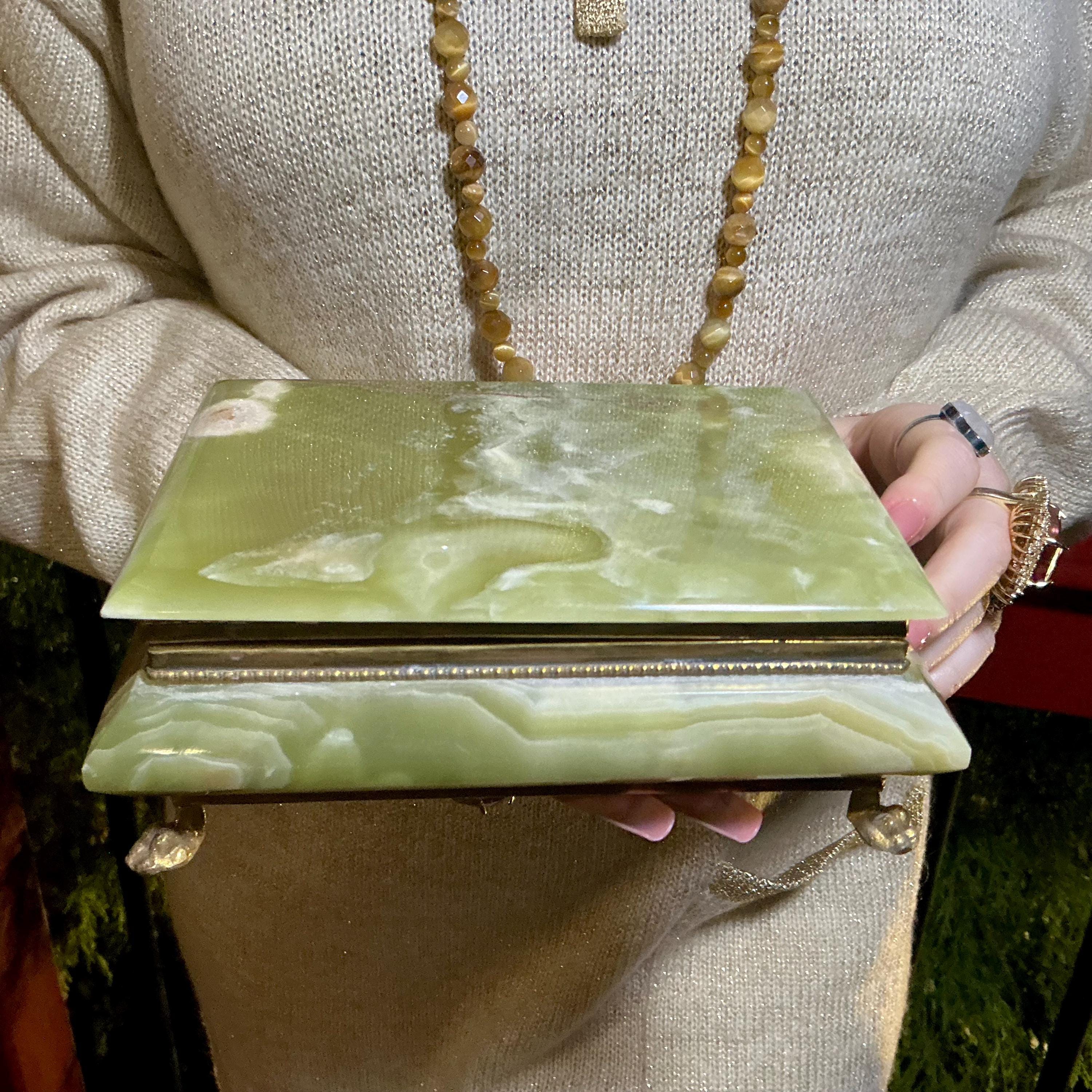 It is loaded with Swirling green, white, yellow & golden-brown pattern's swirling throughout making this a one-of-a-kind treasure box.