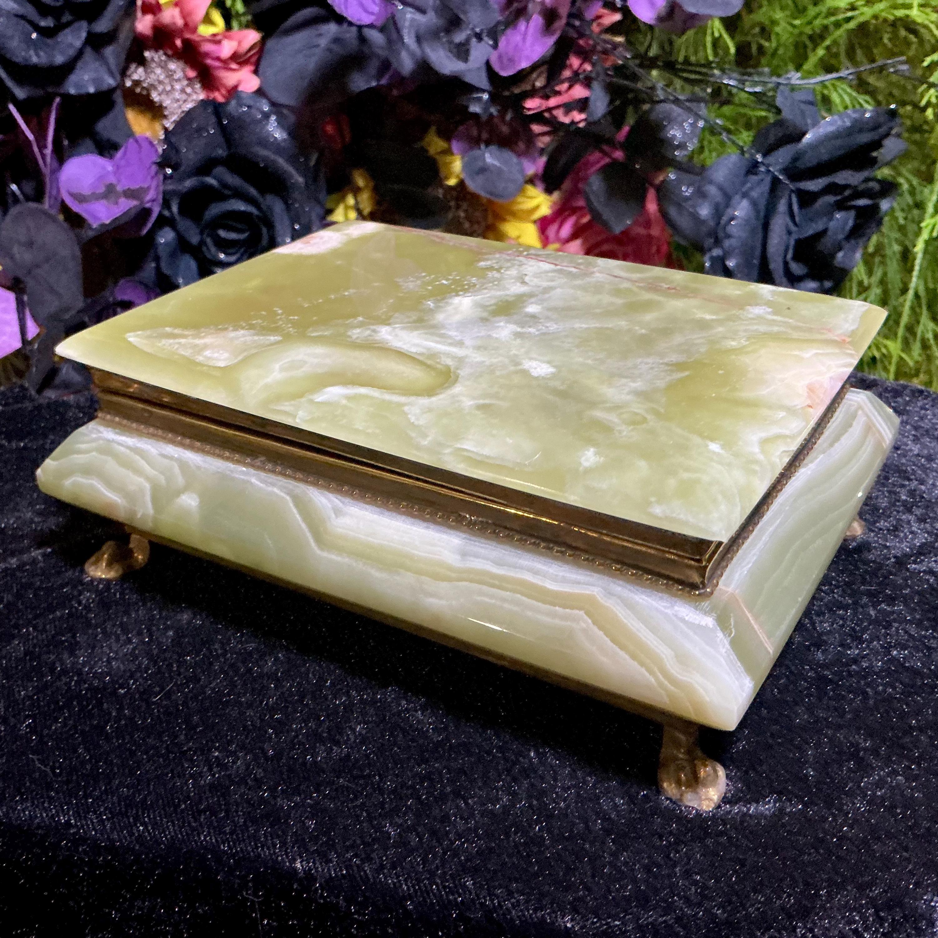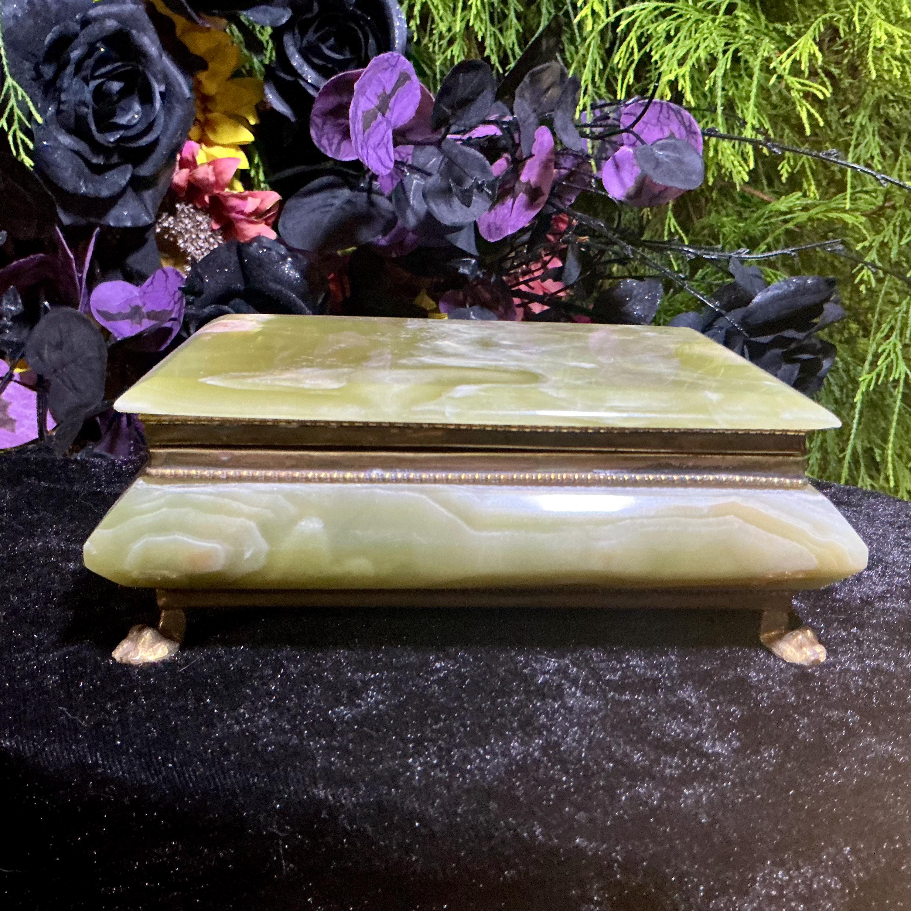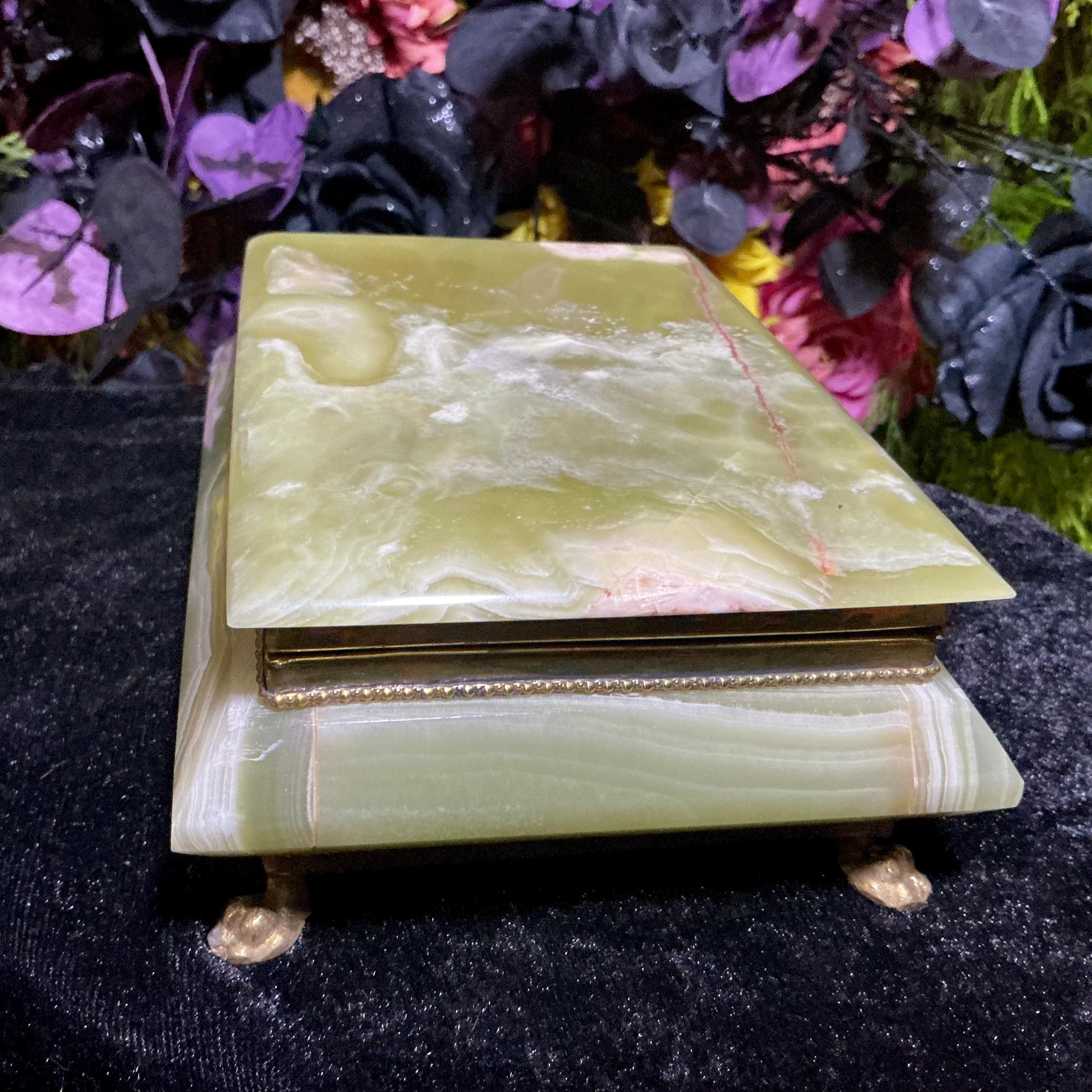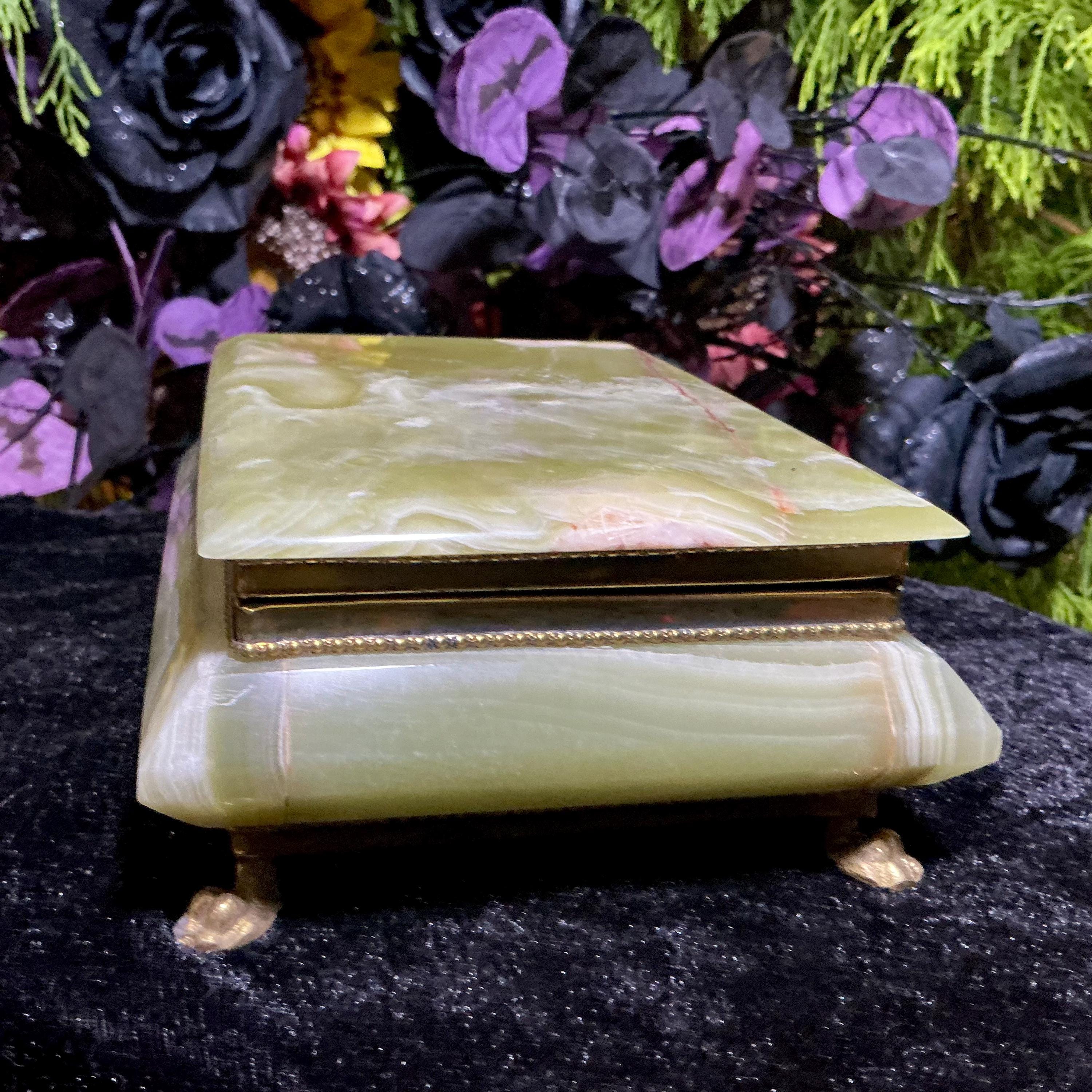 It is loaded with Swirling green, white, yellow & golden-brown pattern's swirling throughout making this a one-of-a-kind treasure box.