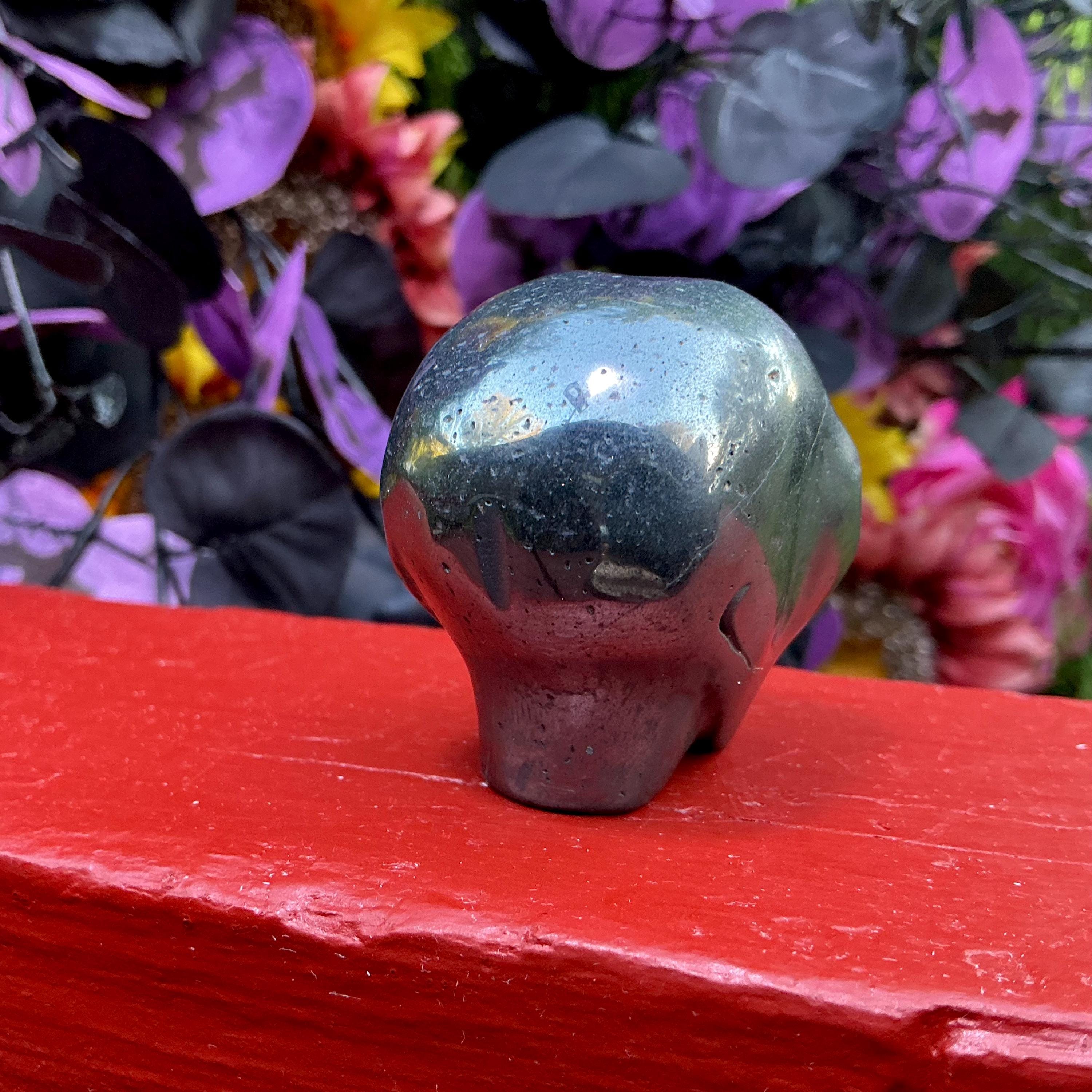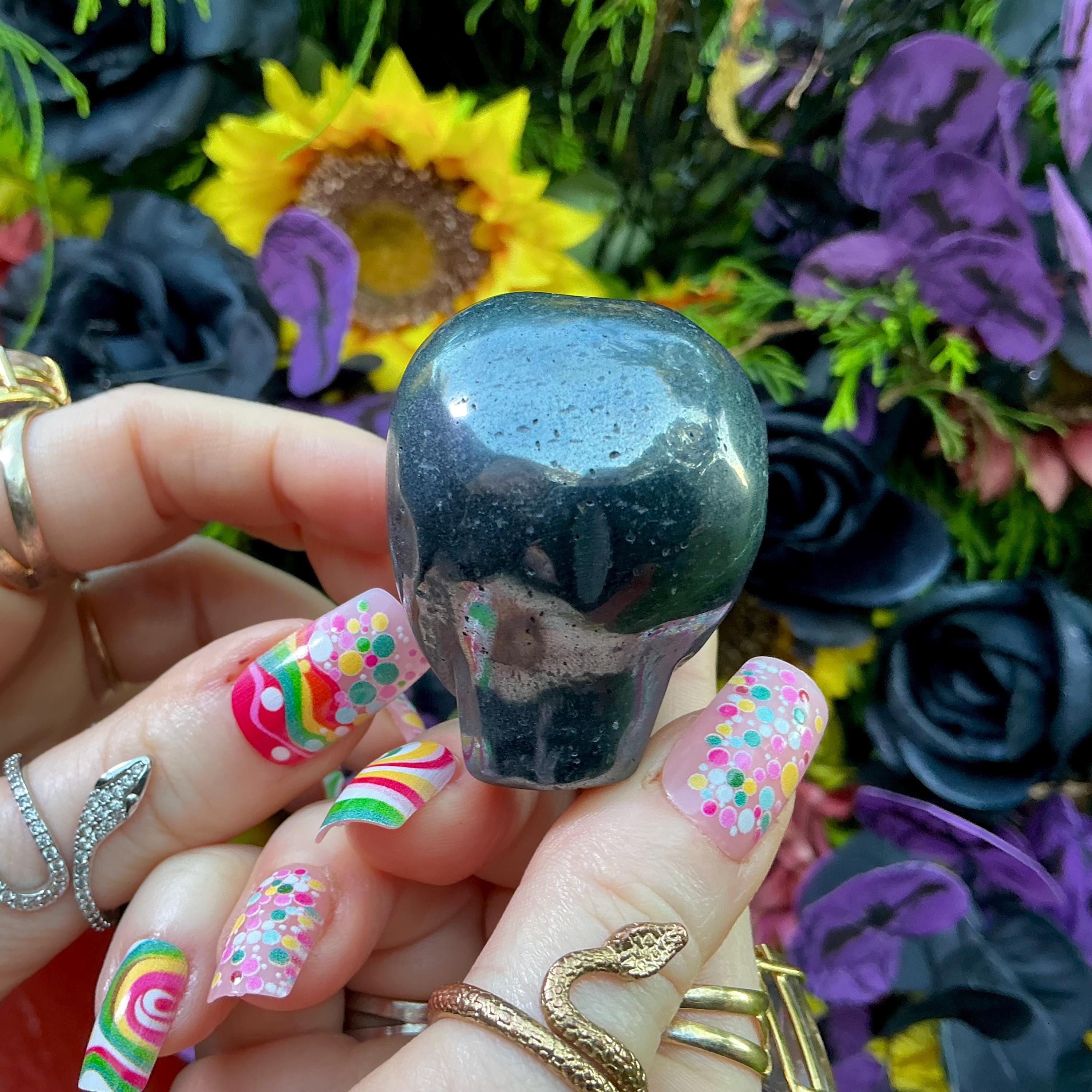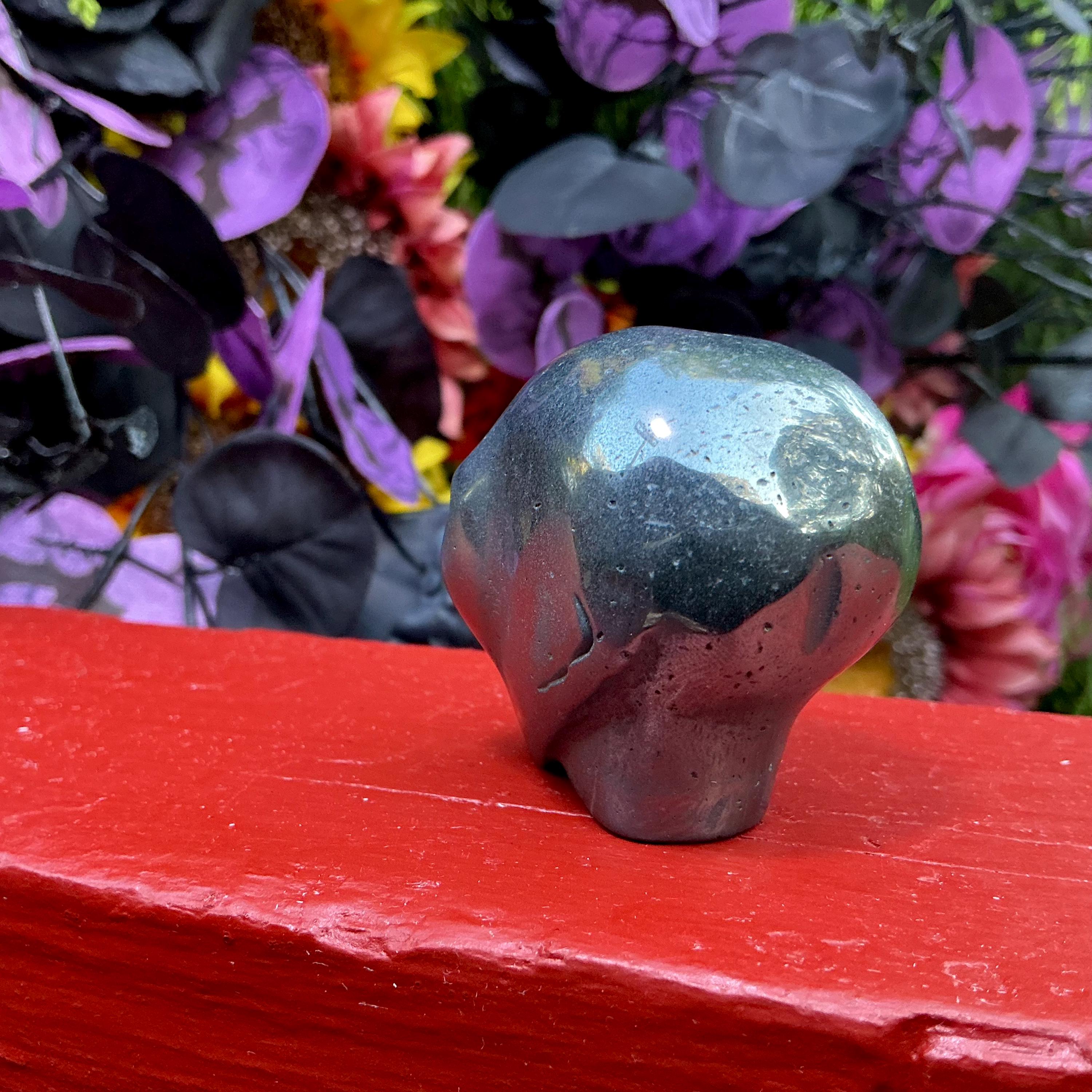 Hematite Alien Skull Crystal 9 oz. Mini Skull ~ 2" Long ~ Black Metallic Luster Gemstone ~ Hand-Carved Sculpture ~ Fast & Free Shipping