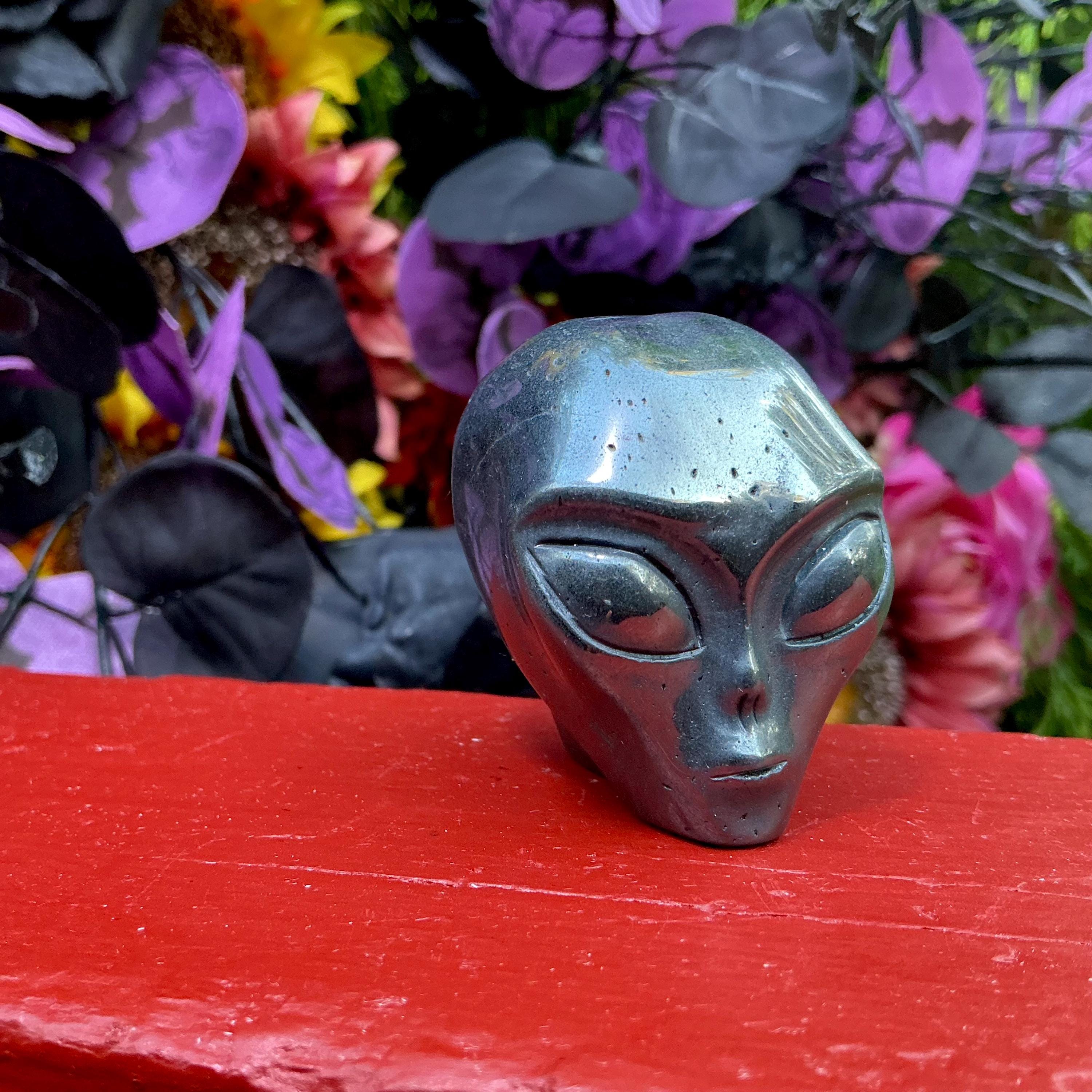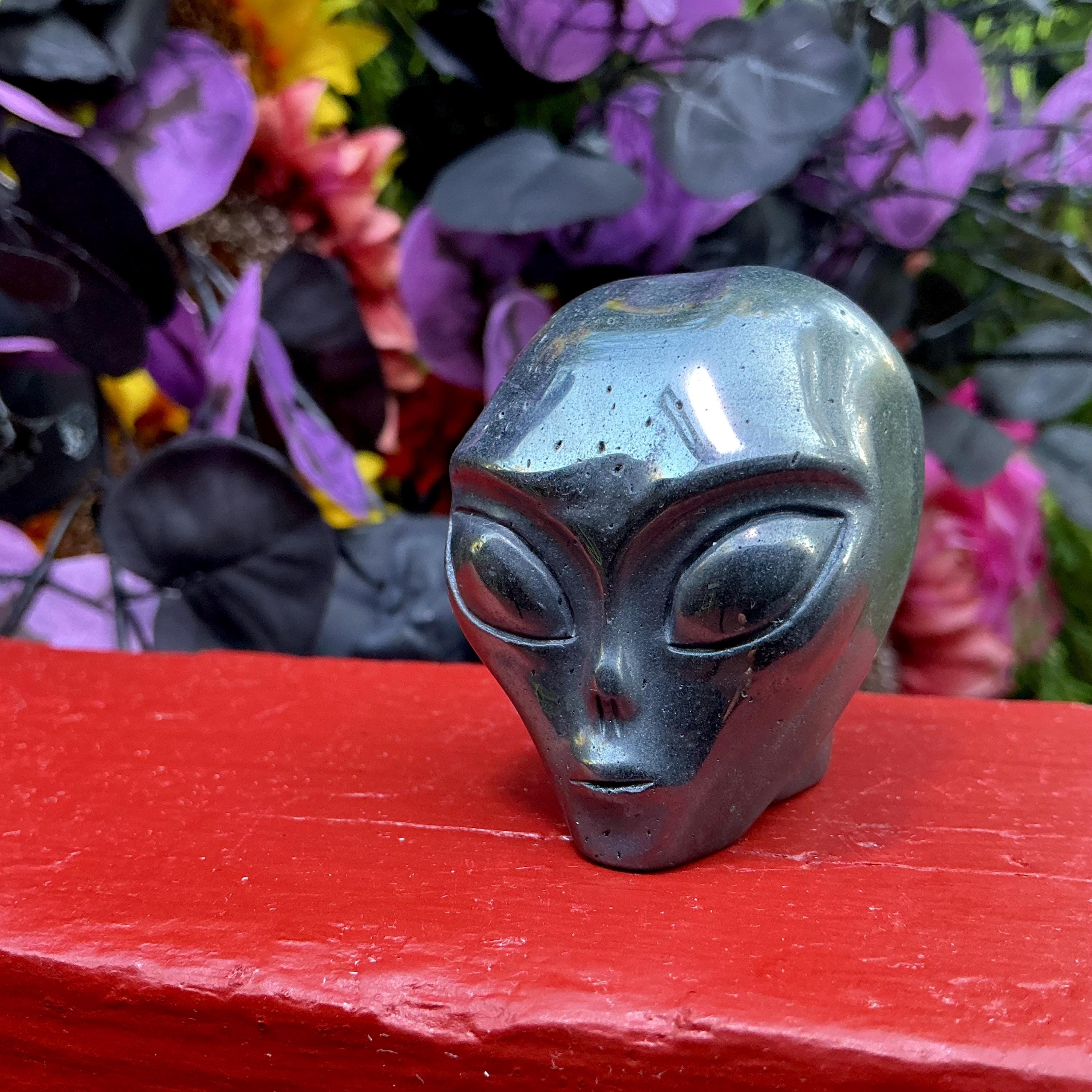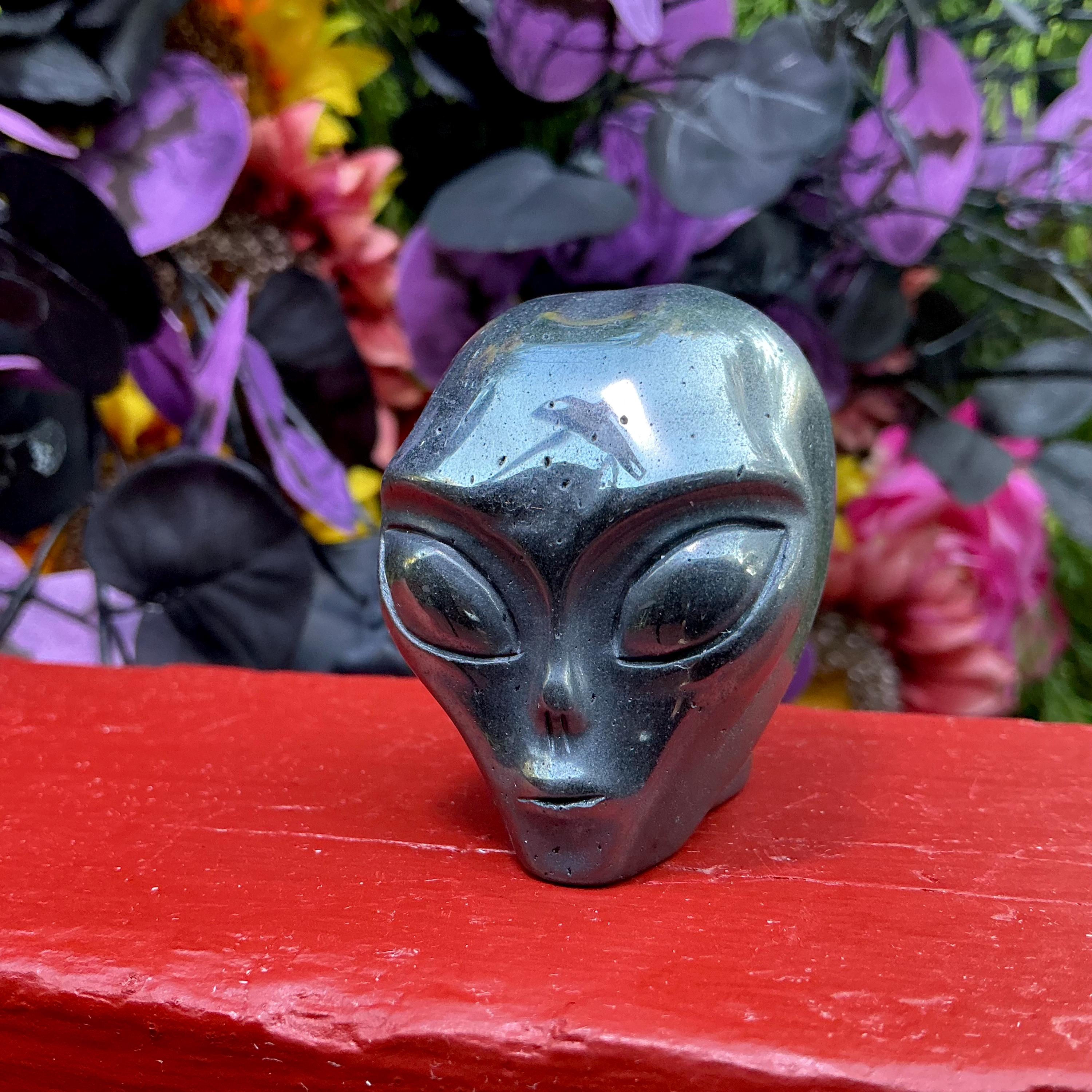 This beautiful Hematite Alien skull is a self-standing making it perfect for you display or your altar.