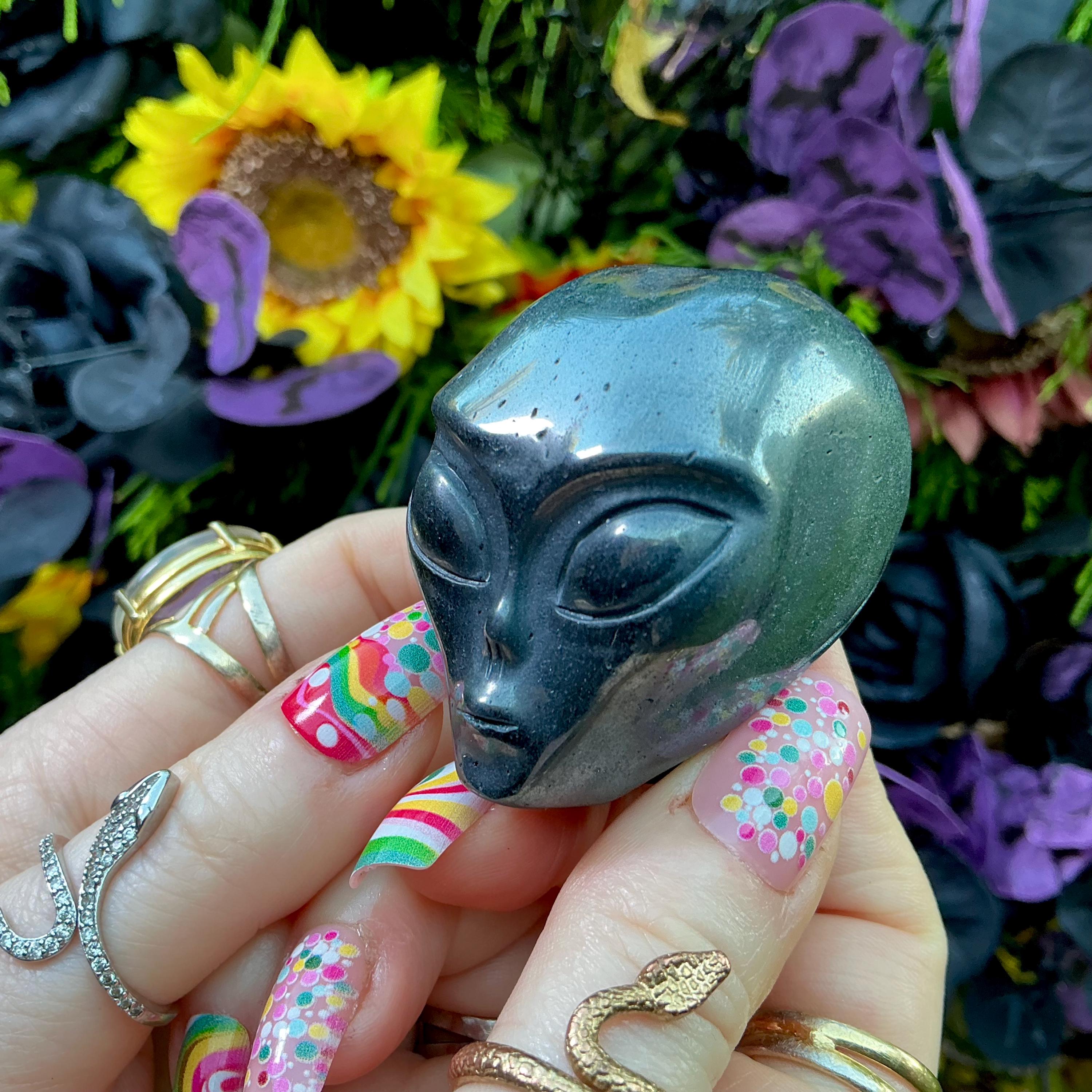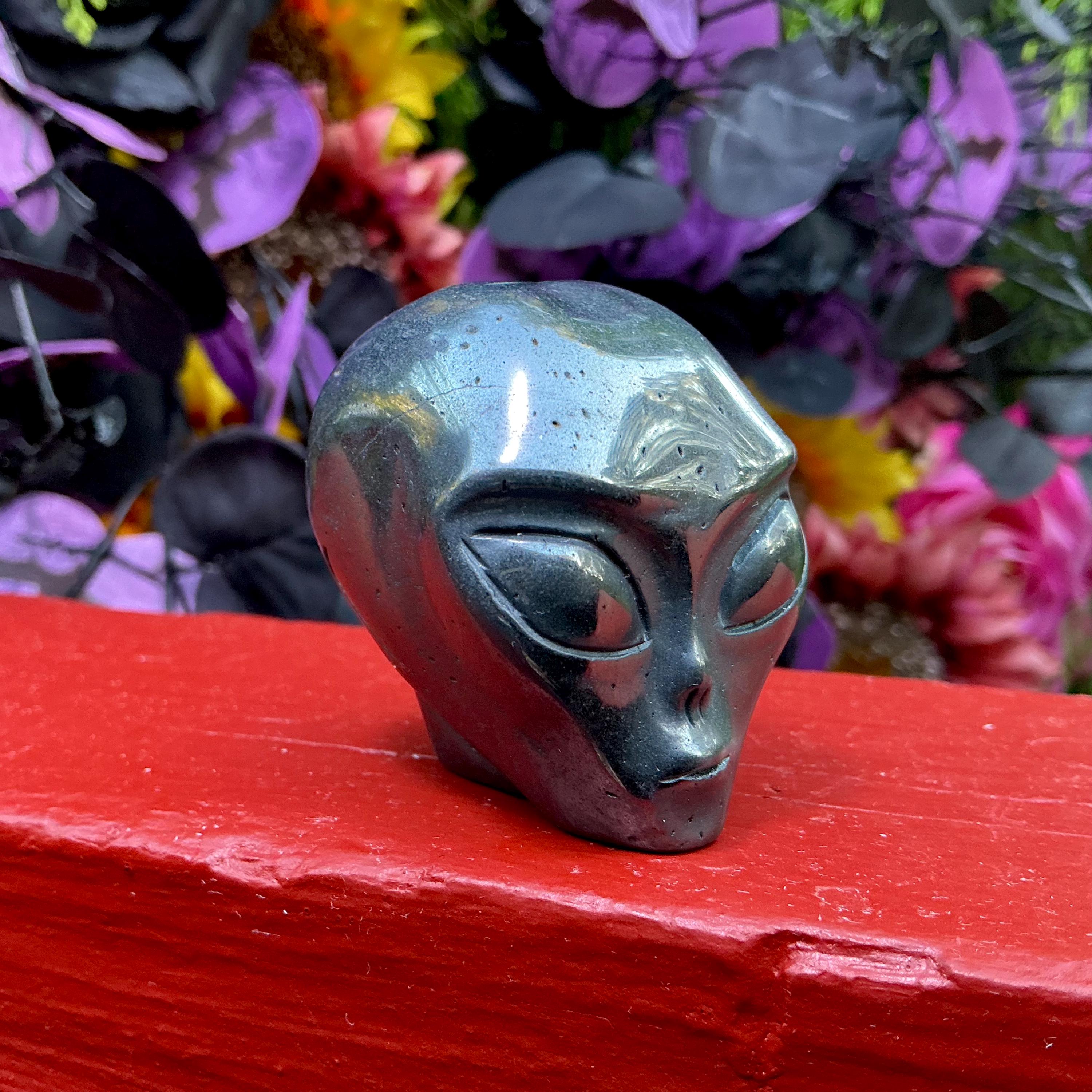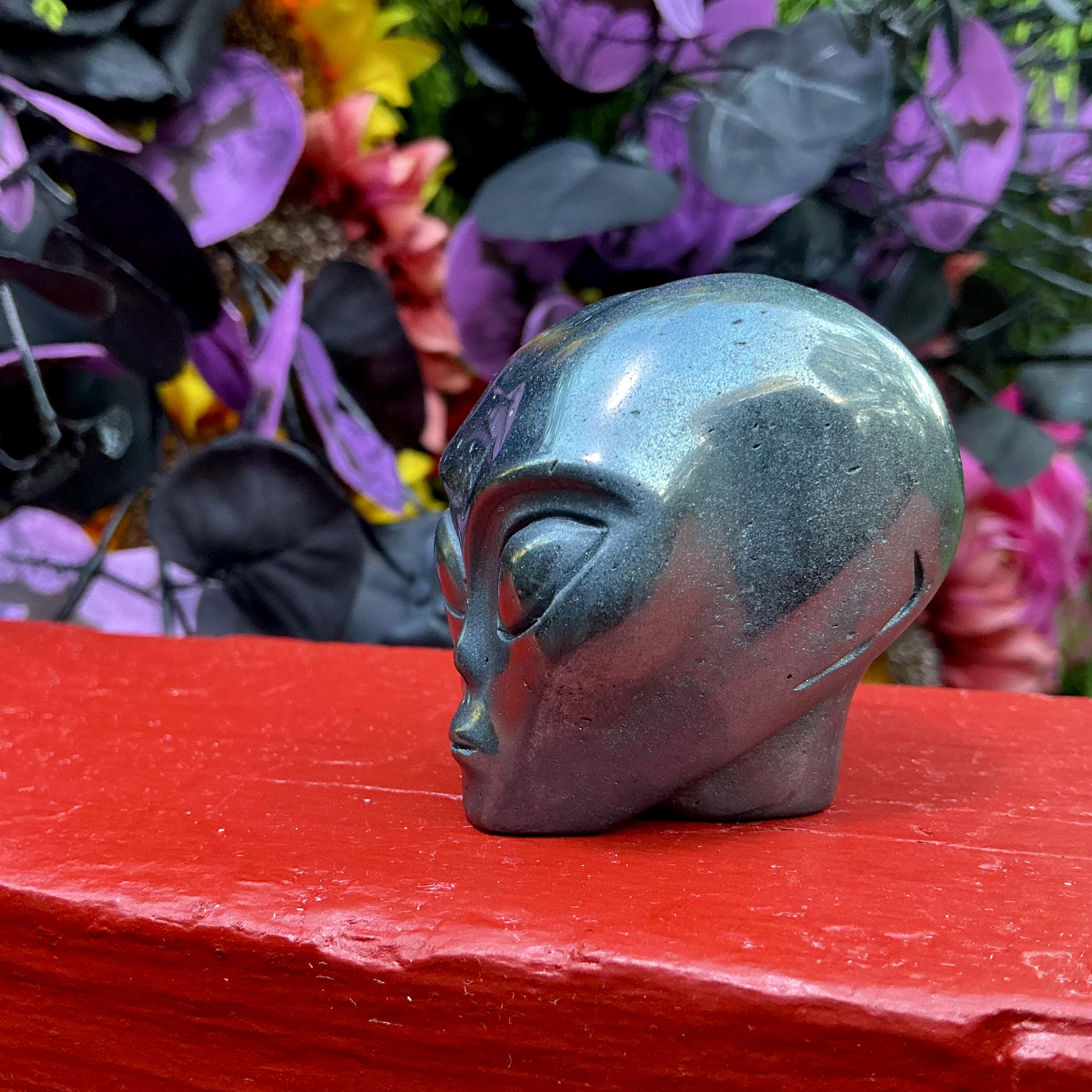 This beautiful Hematite Alien skull is a self-standing making it perfect for you display or your altar.