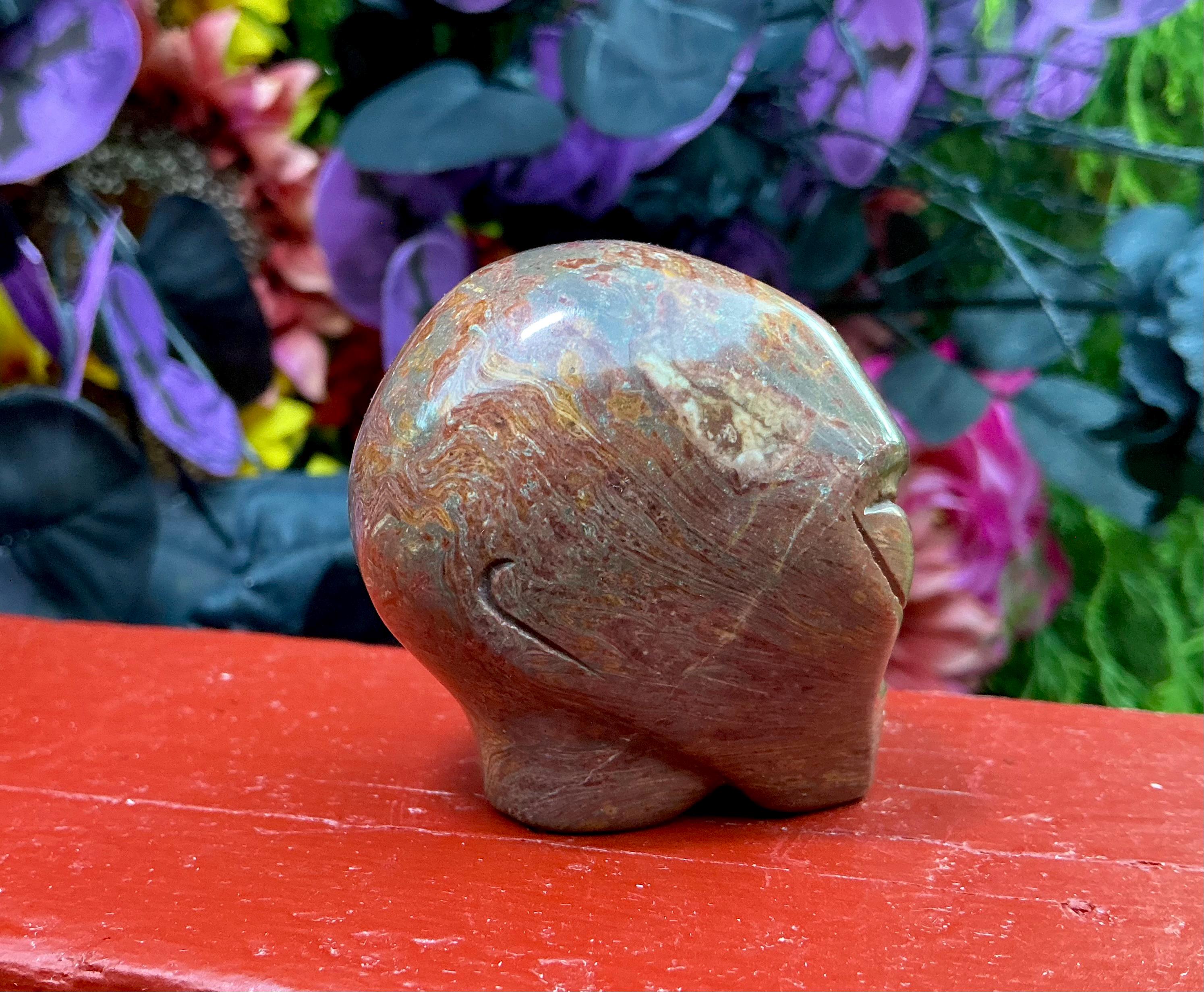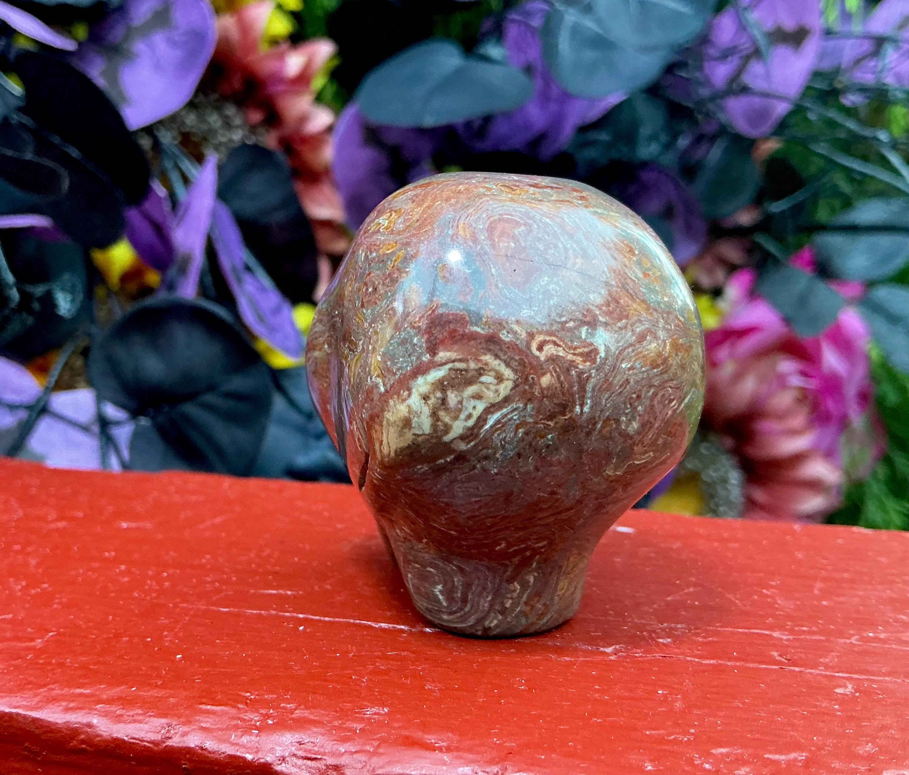 This red and yellow Agate Mini Skull is a very nice specimen and extremely hard to find in this size making it a one-of-a-kind treasure.