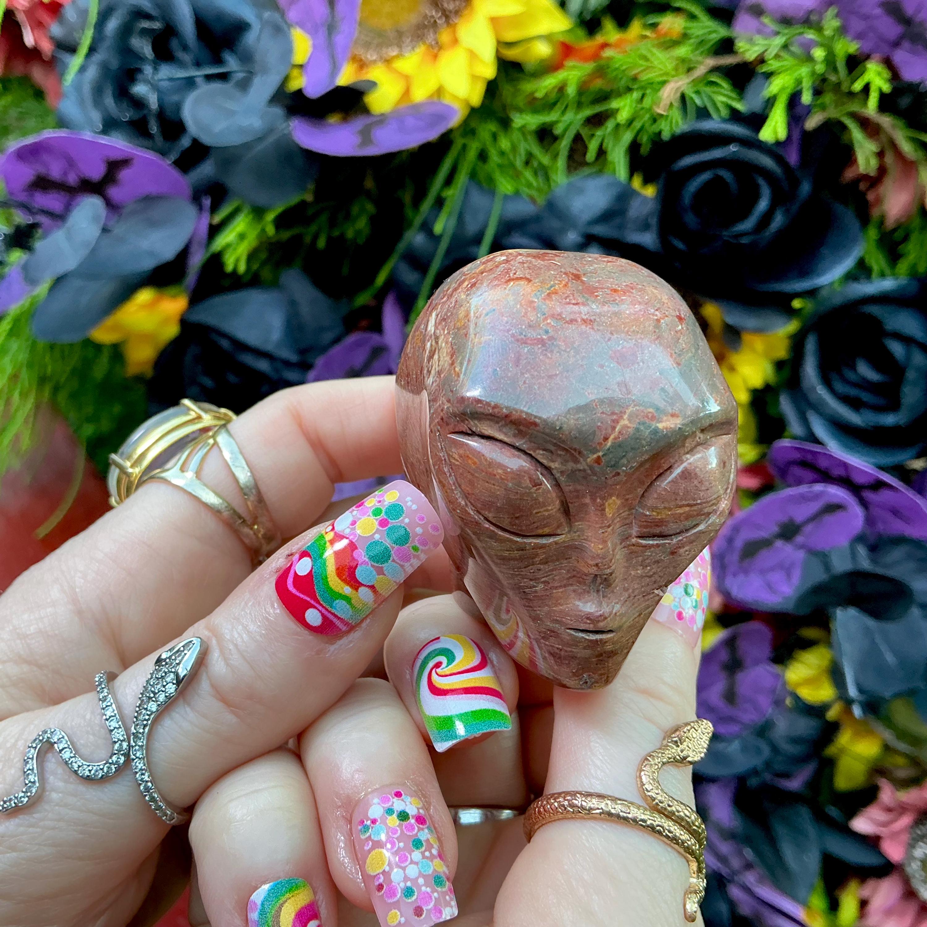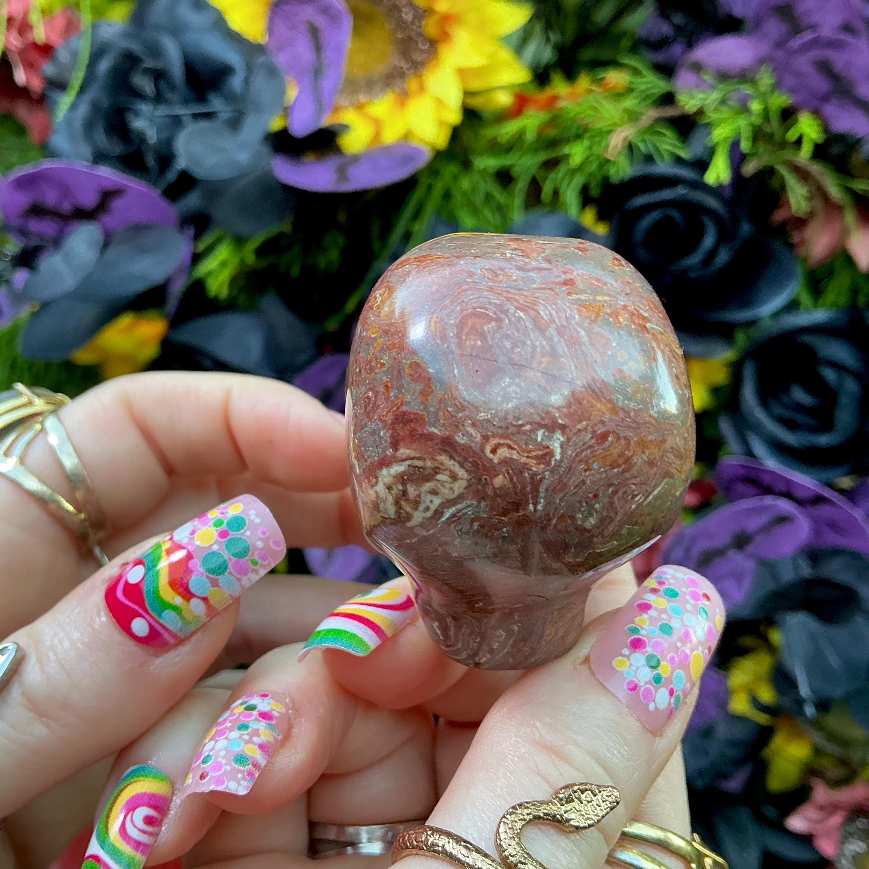 This is such a gorgeous red and yellow Agate Mini Skull crystal scull.