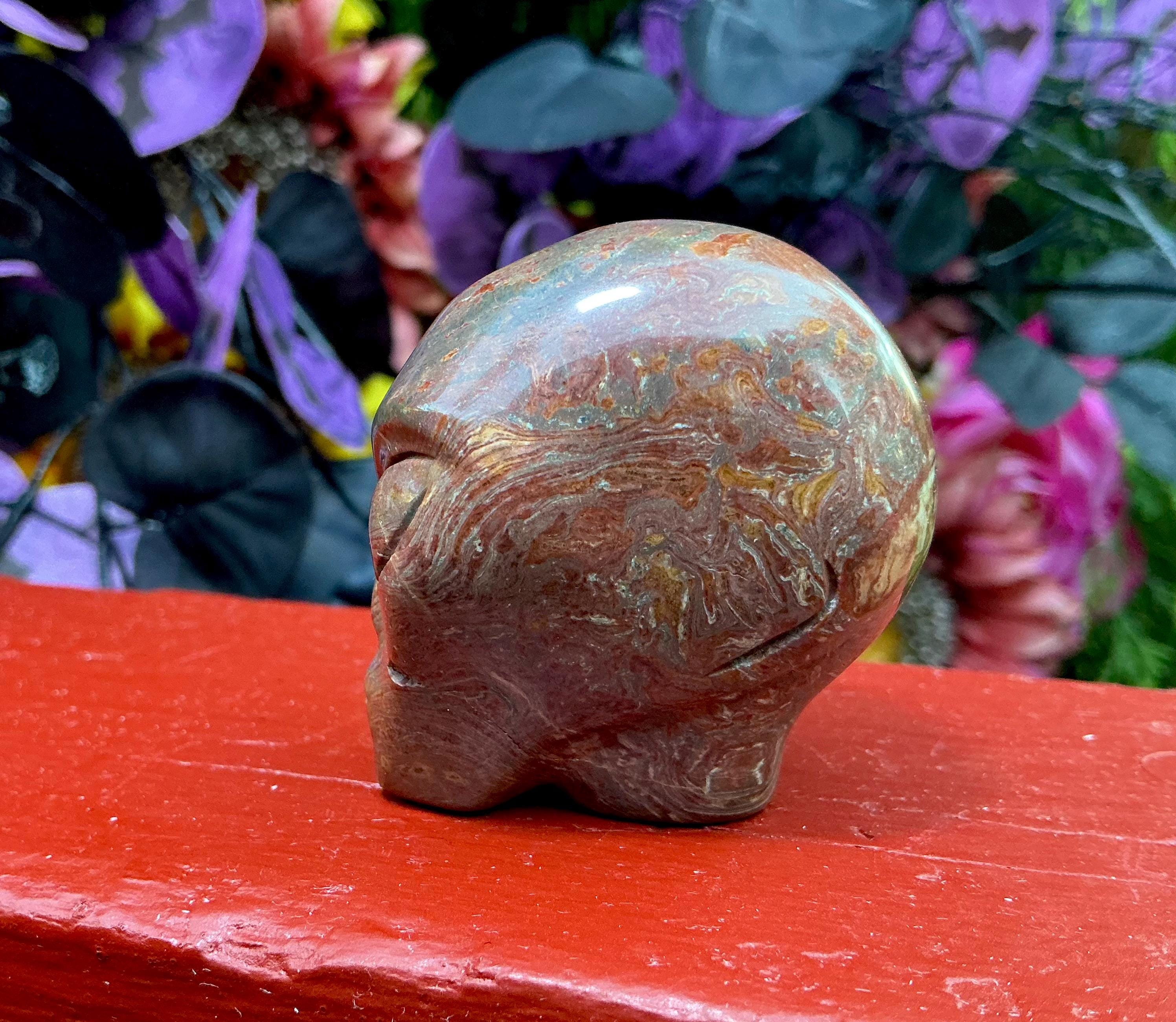 Red Lace Agate Mini Skull 5 oz. Crystal ~ 2" Long ~ Swirling Red & Yellow Colors ~ Expertly Hand -Carved Display Sculpture ~ Fast Shipping