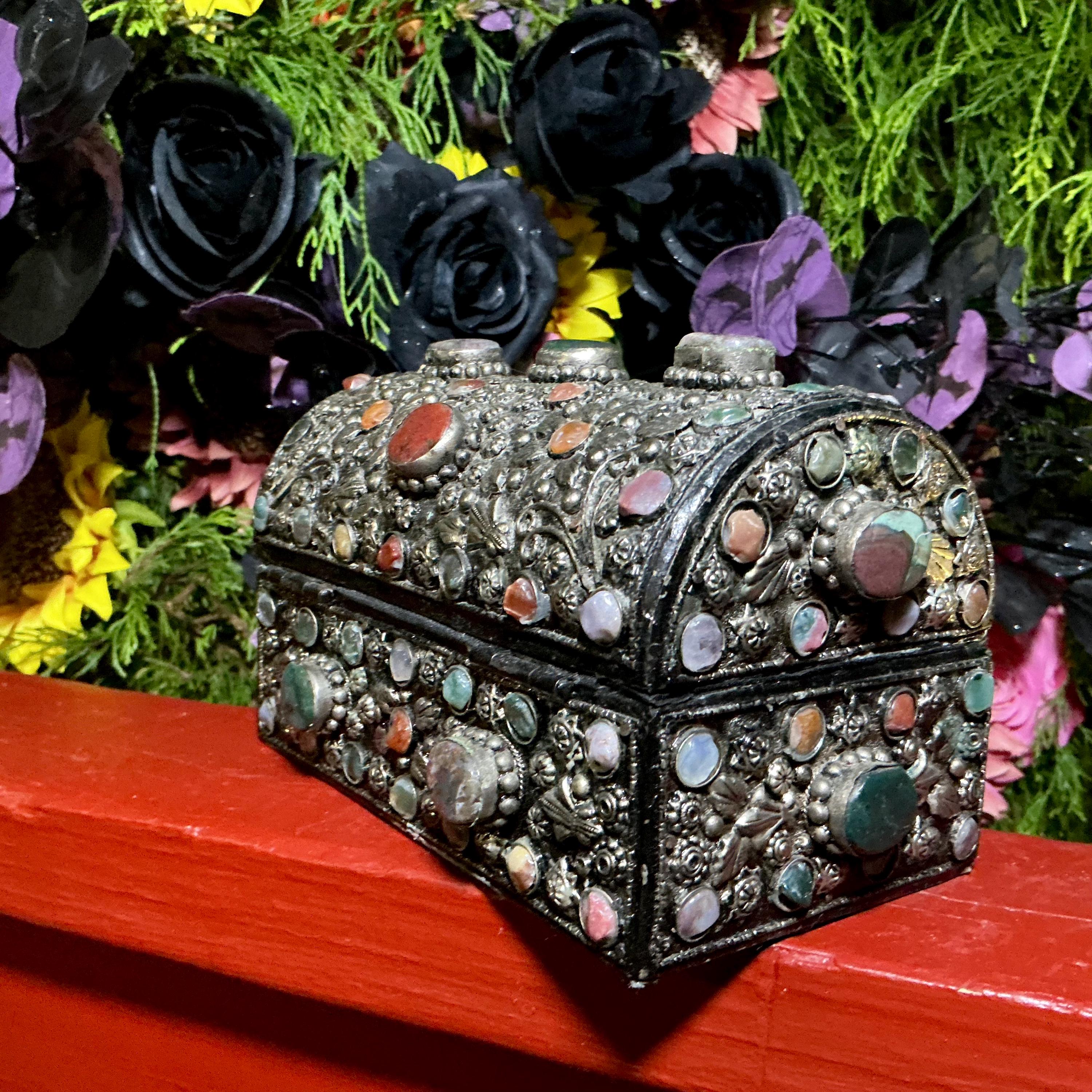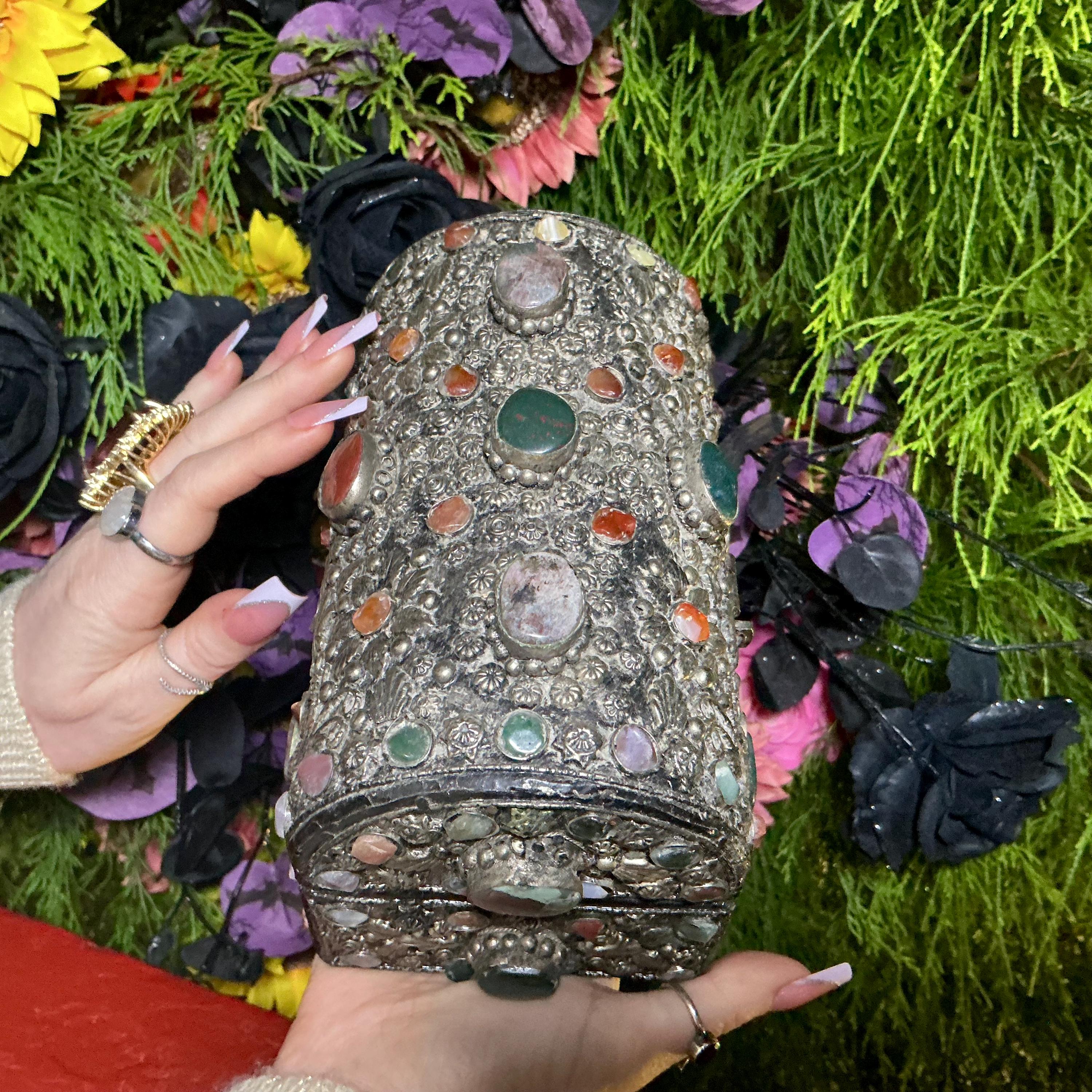 It is a Brass over Moroccan silver vintage jewelry box making it a one-of-a-kind work of art WOW!! this was meant for a goddess.