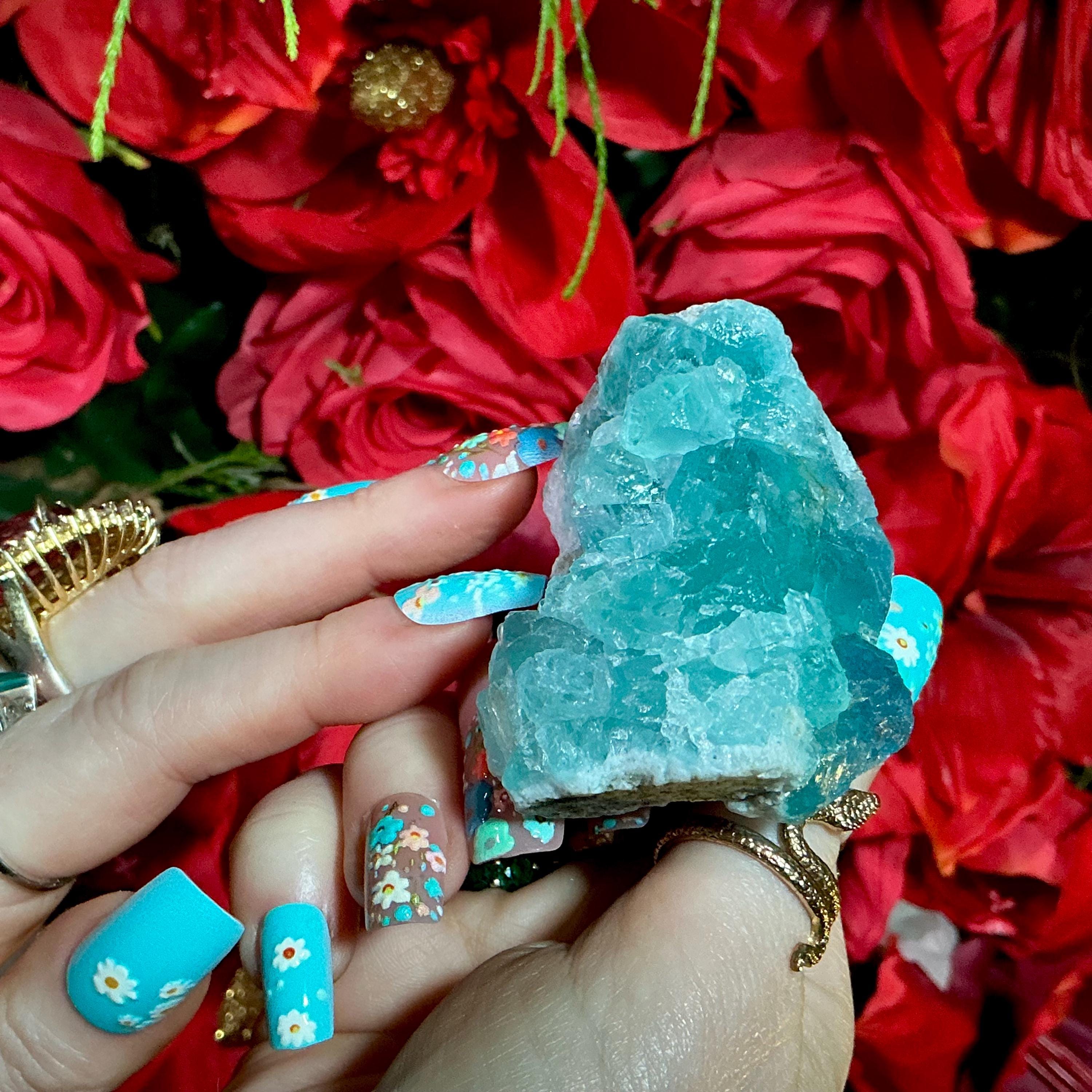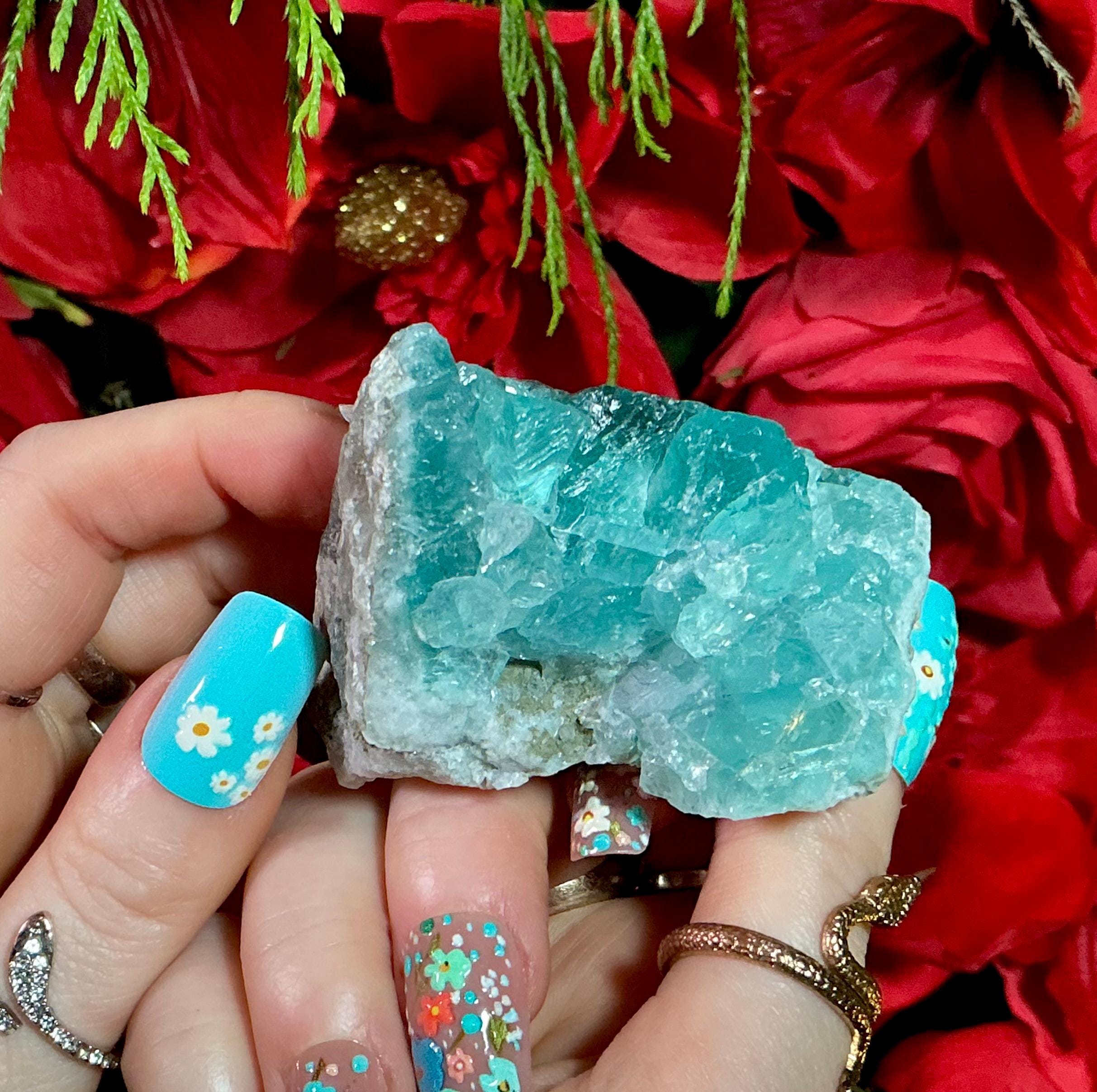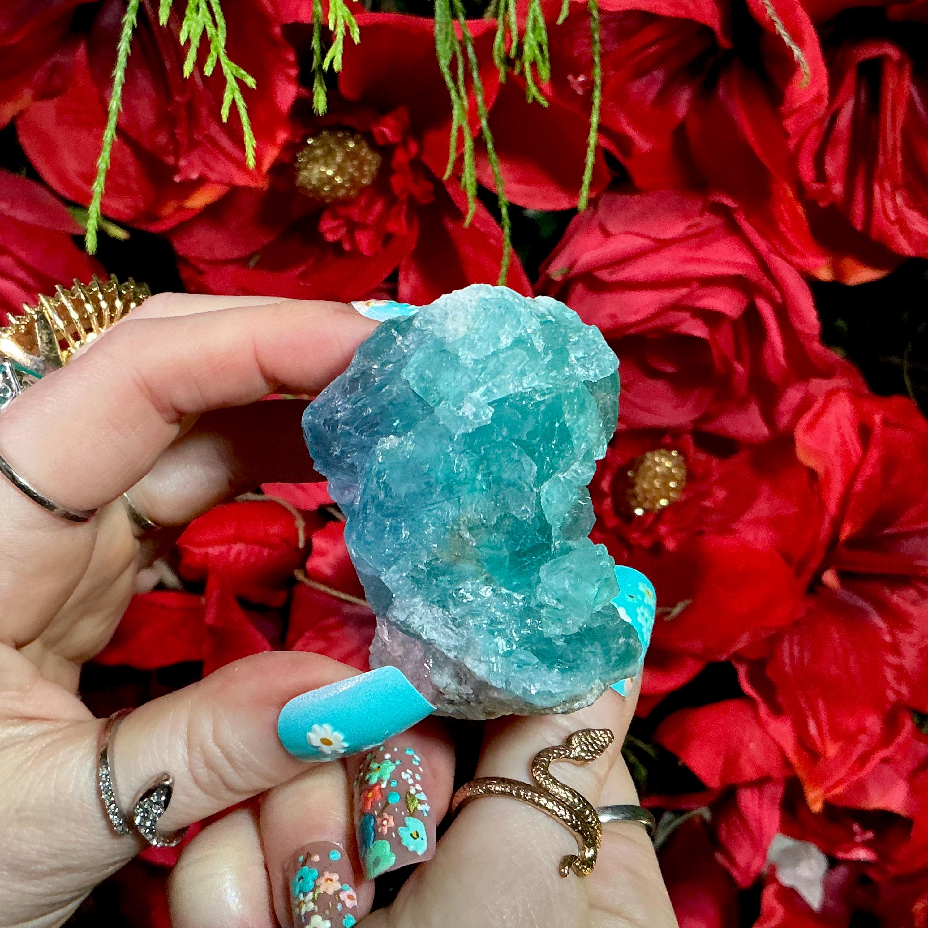 Blue Cubic Fluorite Crystal Cluster ~ Large 5 oz. ~ 2" Long ~ Third Eye, Throat Chakra, Reiki Healing Altar Display, Meditation Size ~