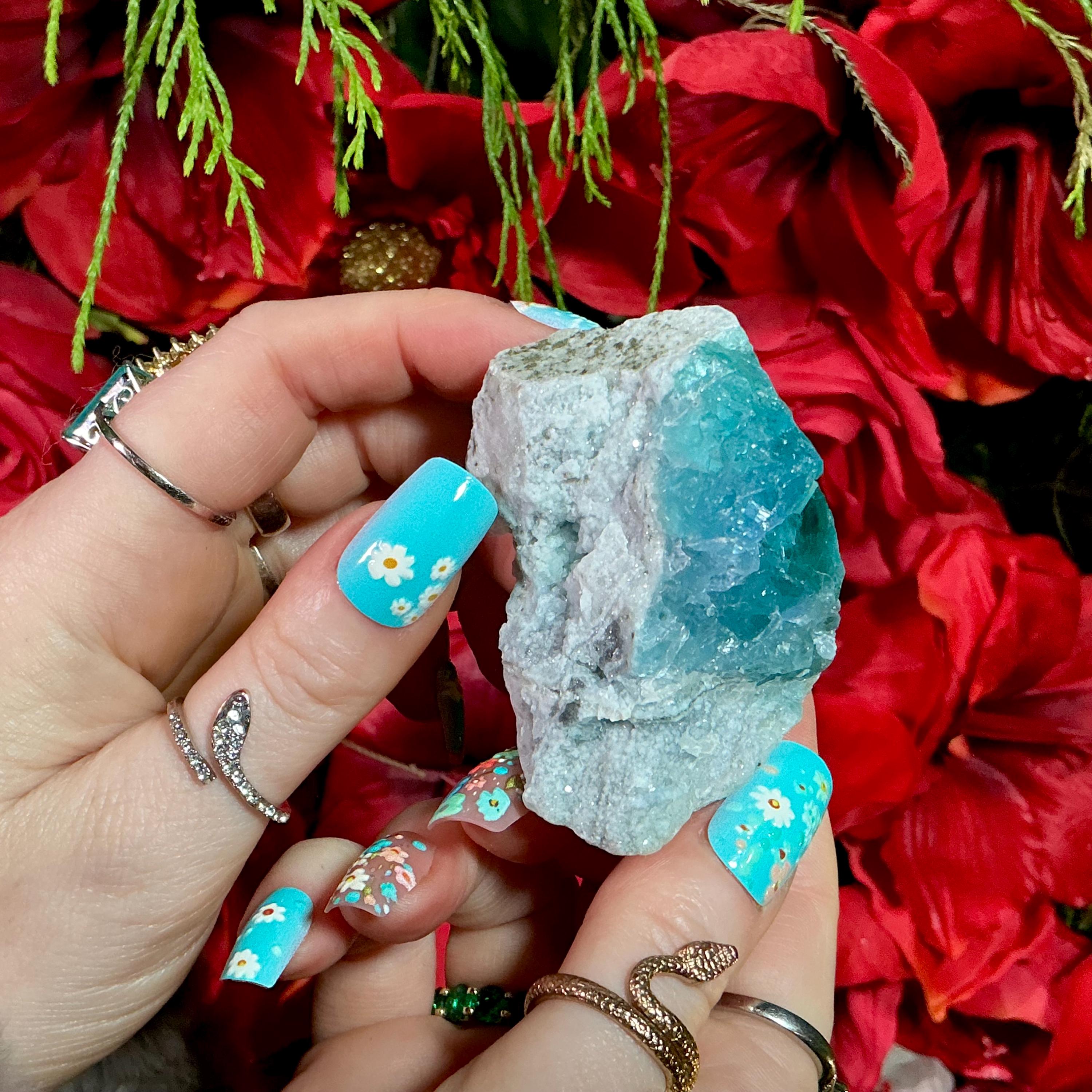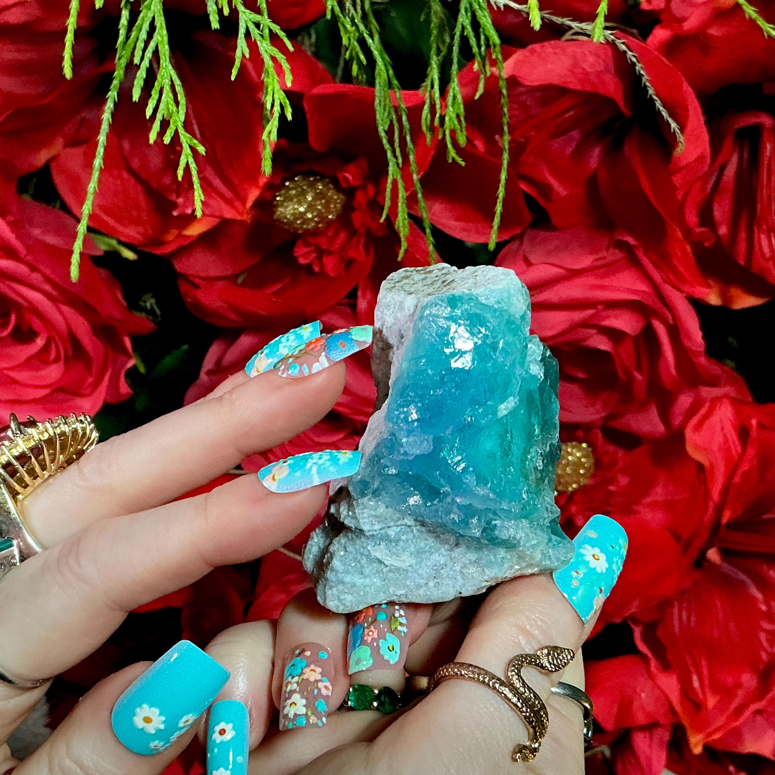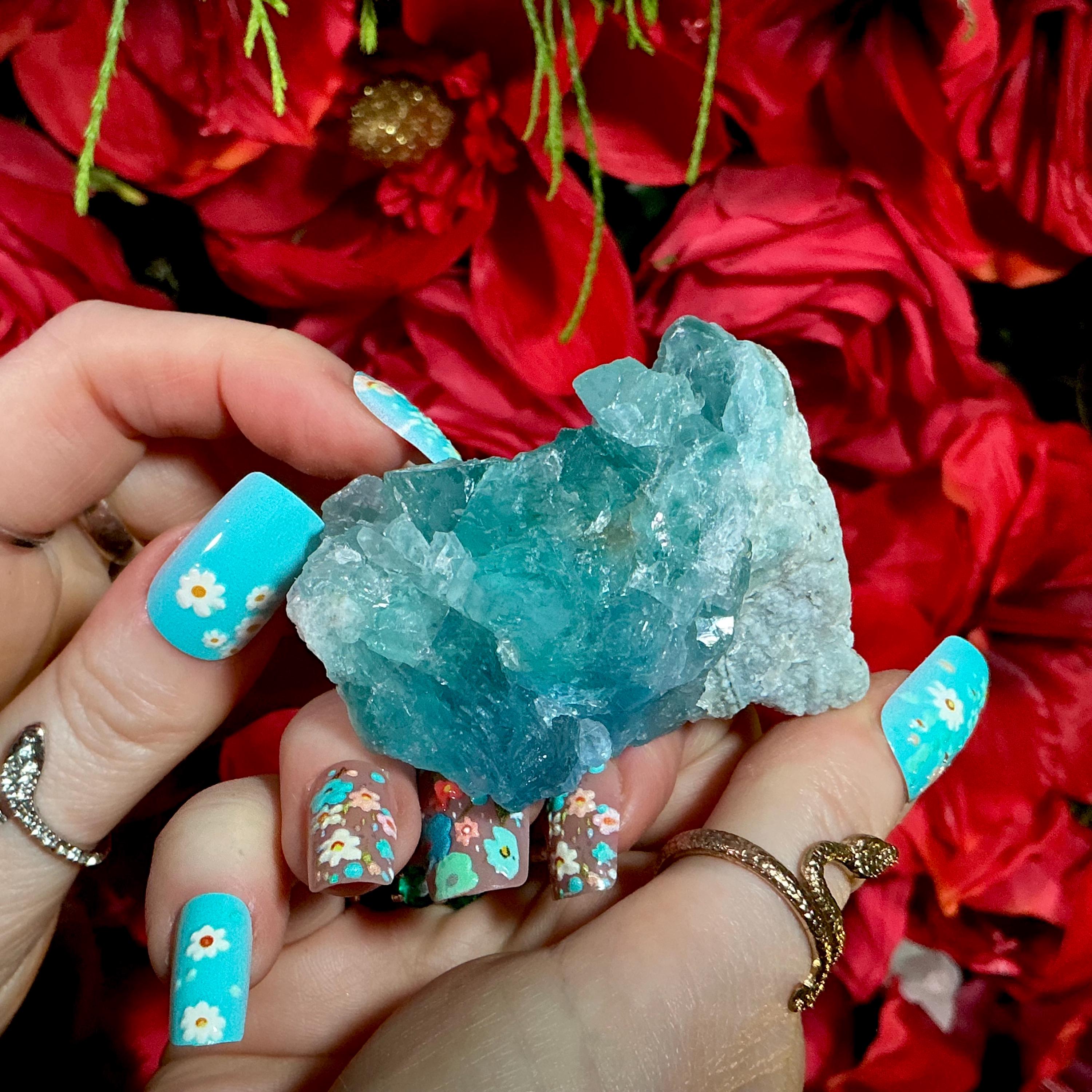 Blue Cubic Fluorite Crystal Cluster 5 oz. Reiki Healing Altar Display, 2" Long