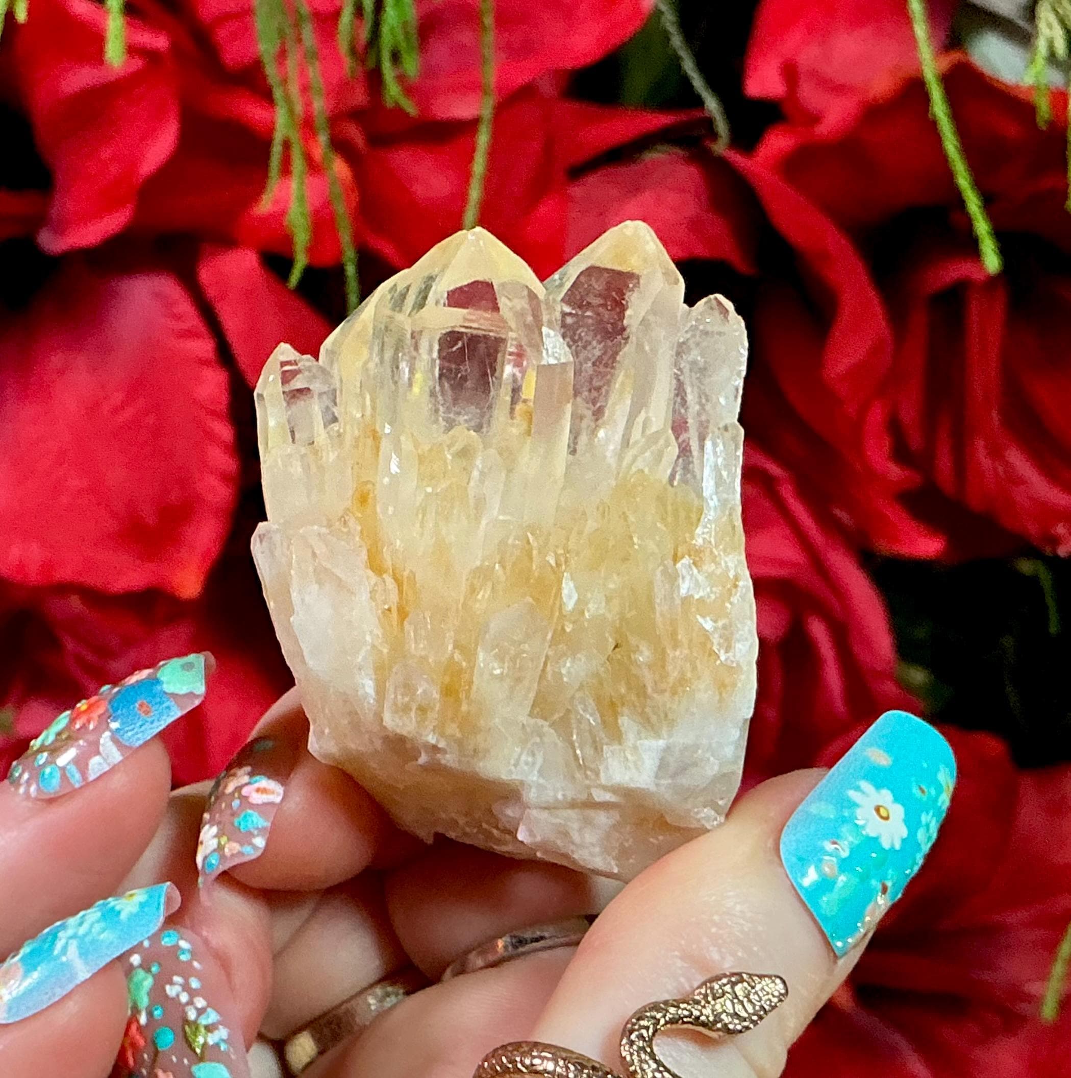 This is such a nice size cluster measuring, 2 1/2 inches long, 1 1/2 inches wide and weighs 3 ounces.
