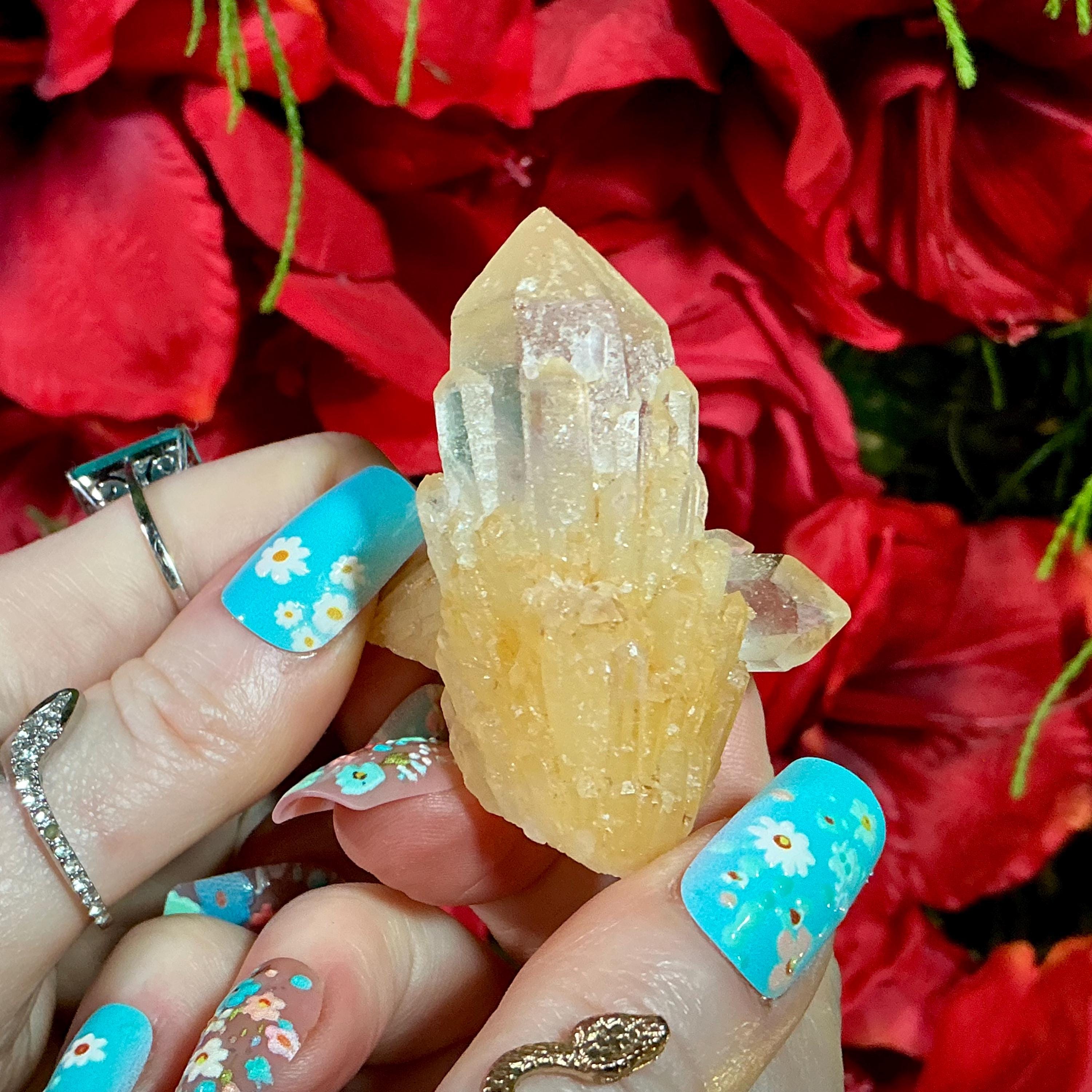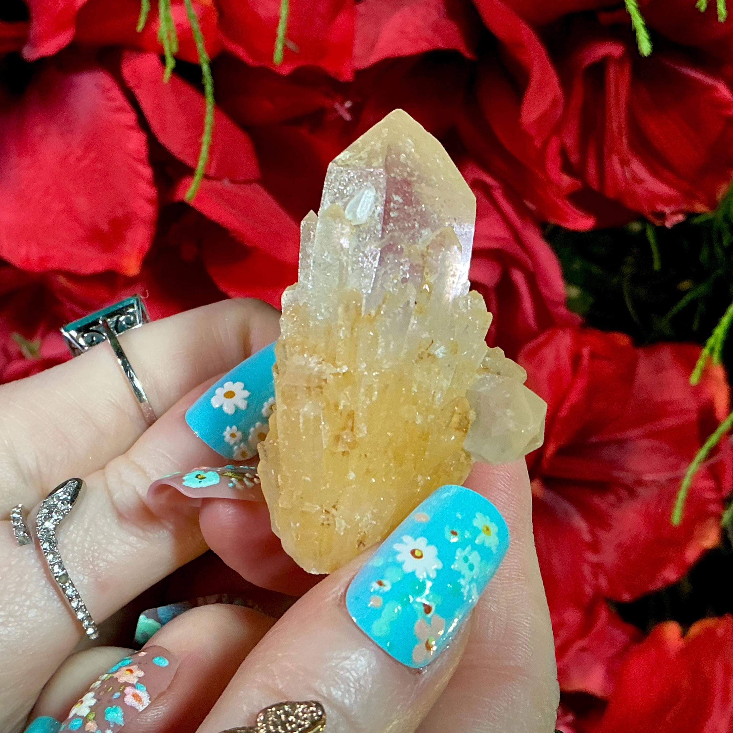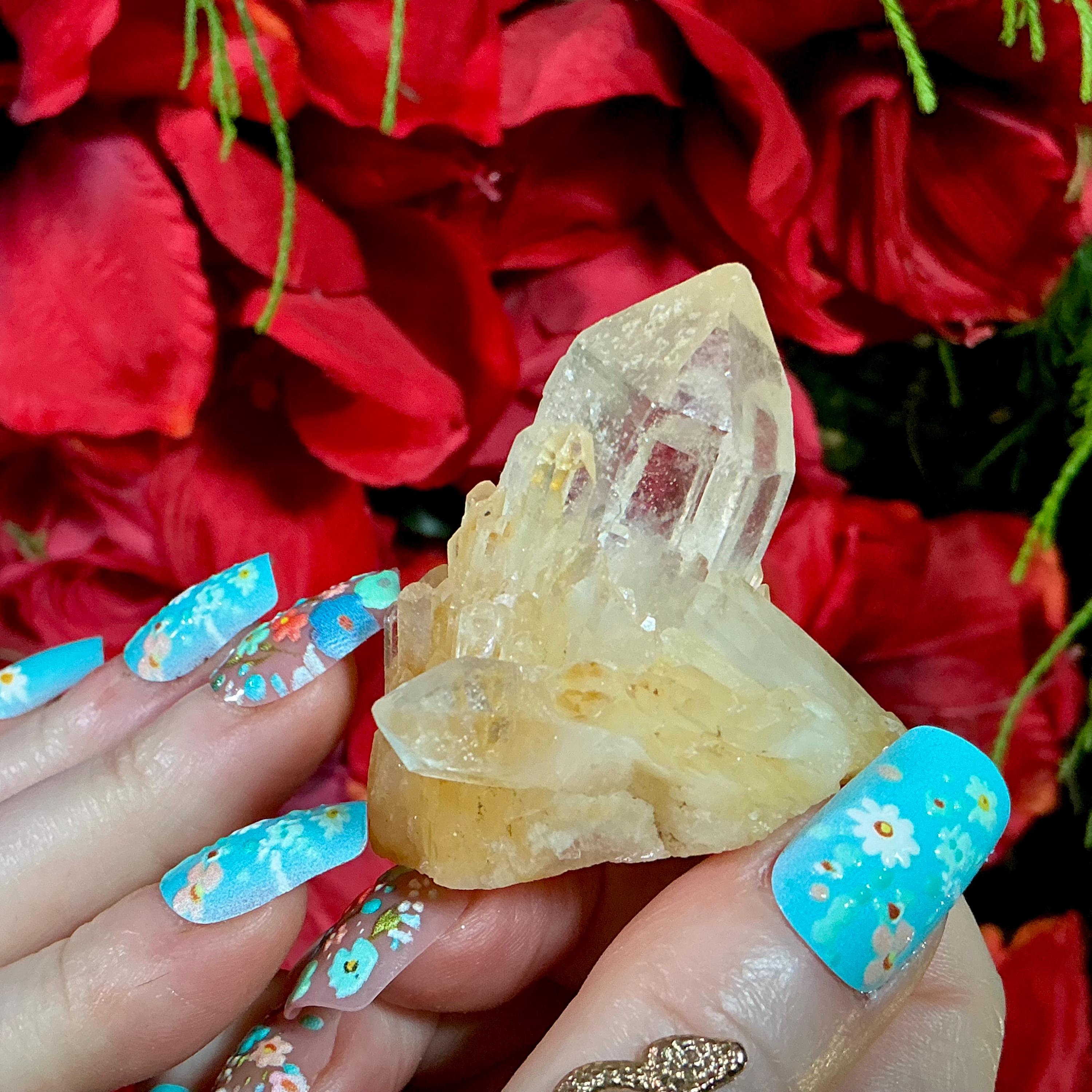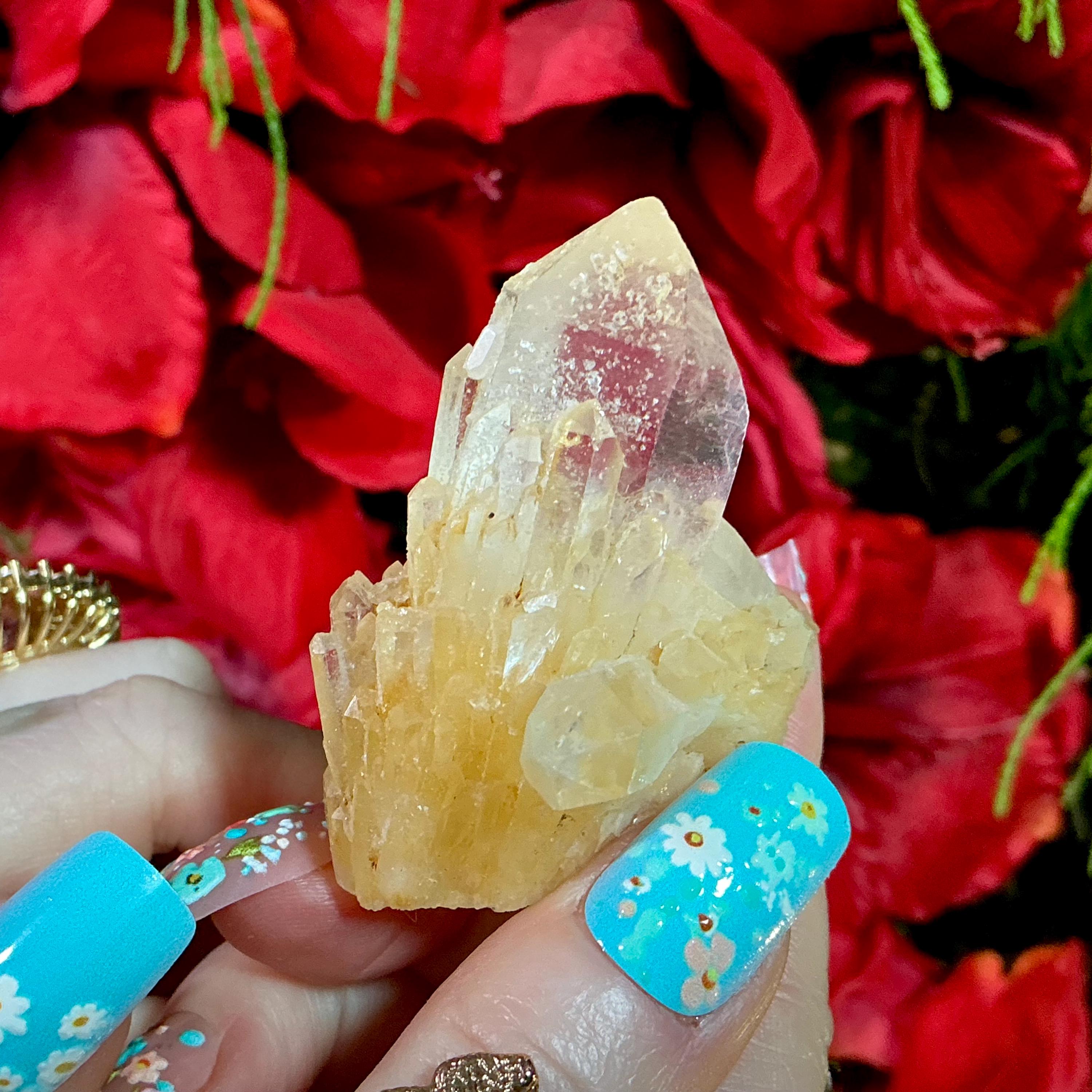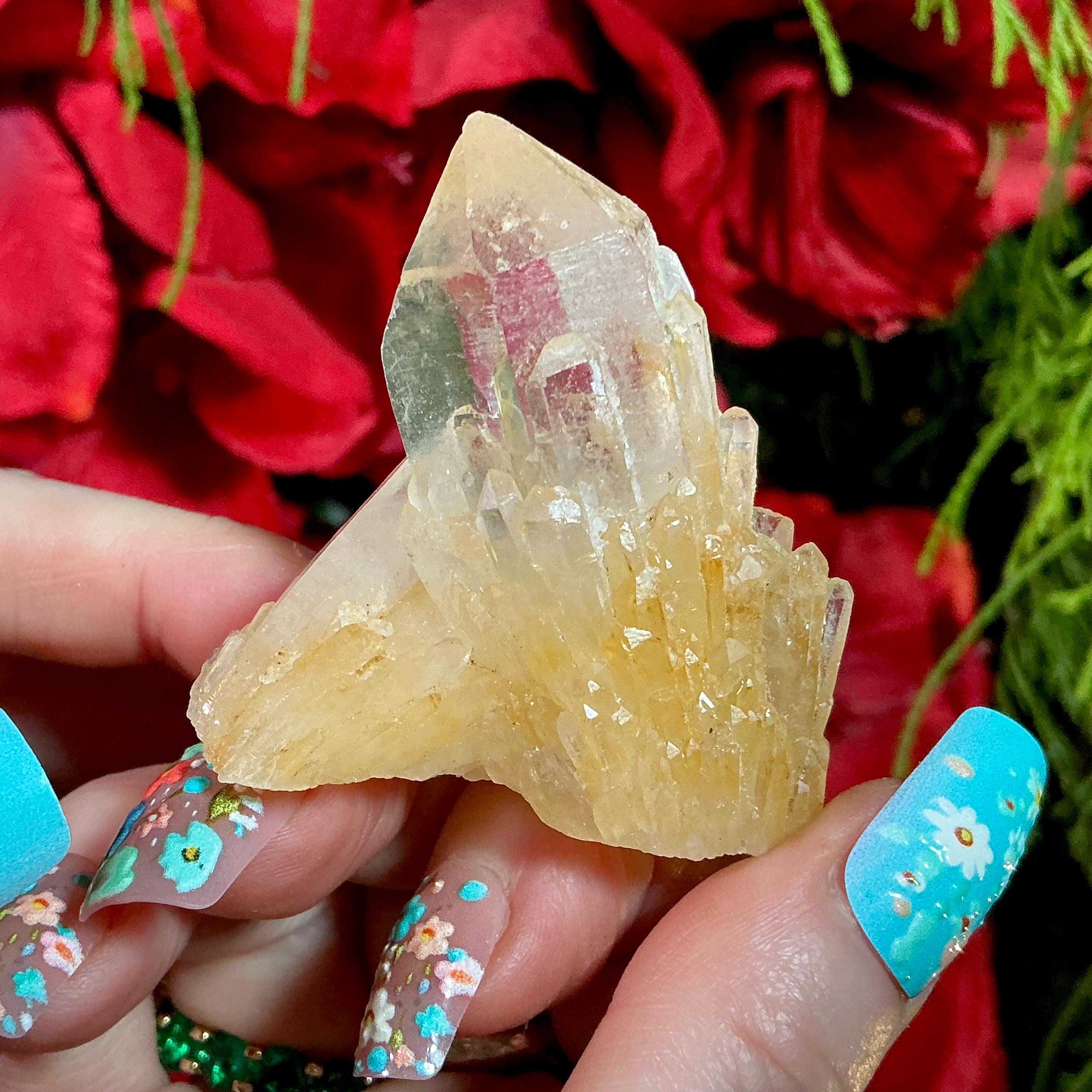 This is such a nice size cluster measuring, 2 inches long, 1 1/2 inches wide and weighs 2 1/2 ounces.