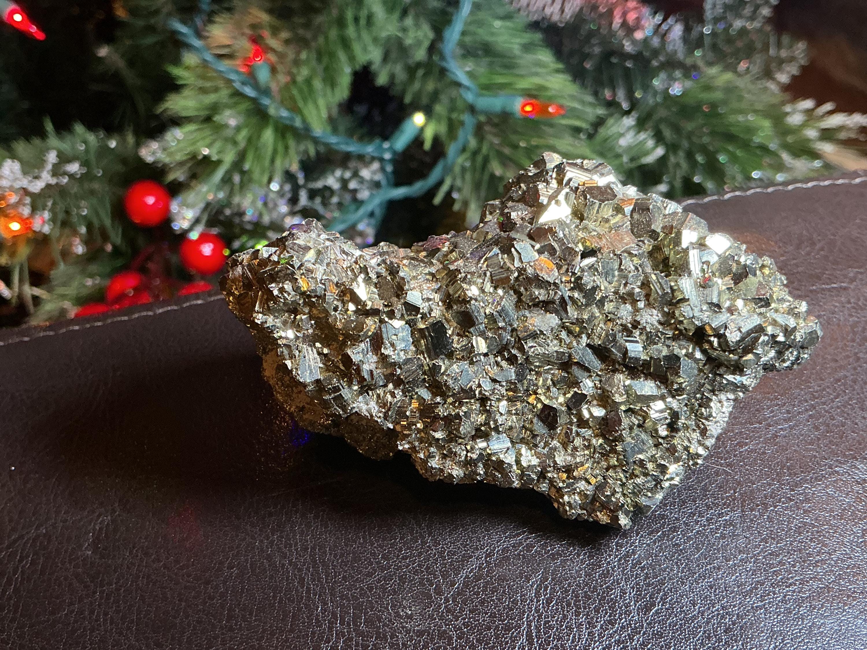 Sparkling Golden Pyrite Crystal 3" Long Cluster, 9 oz. Meditation Altar Decor
