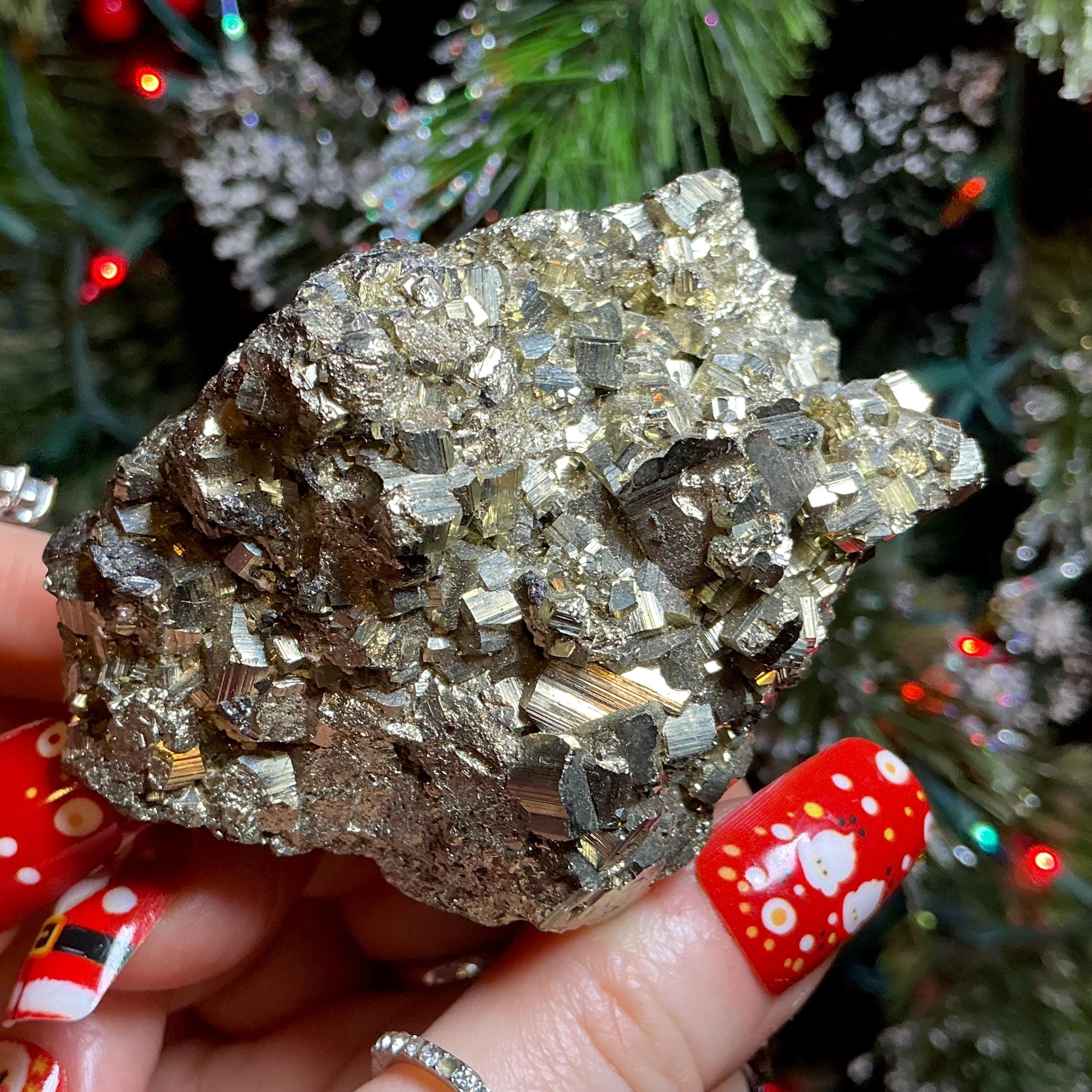 Pyrite Crystal Cluster ~ Large 12 oz. ~ 3" Long ~ Super Sparkling Golden Specimen ~ Meditation Stone, Altar Feng Shui