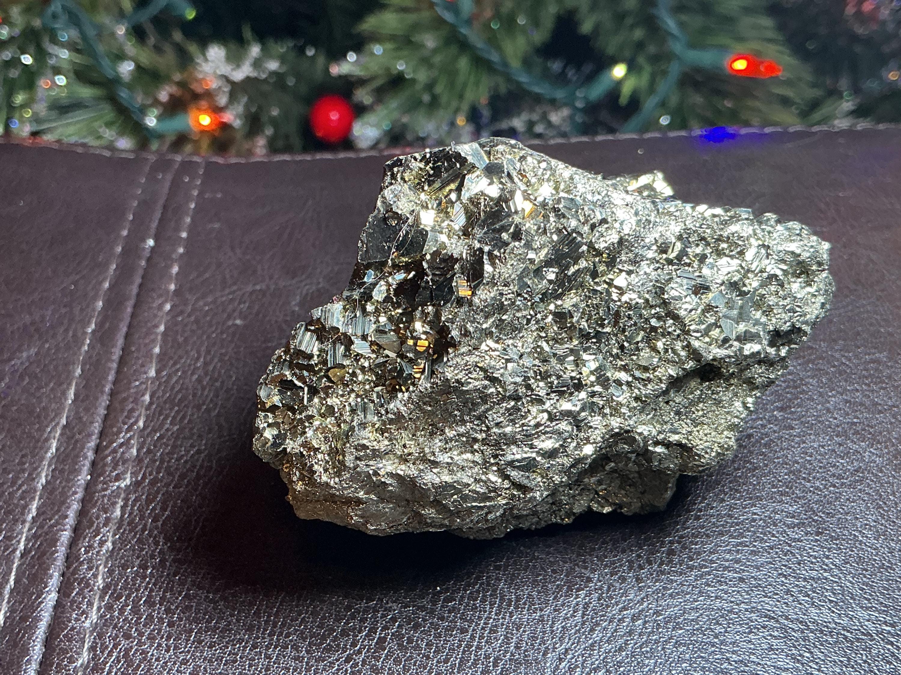 Sparkling Golden Pyrite Crystal 3" Long Cluster, 12 oz. Meditation Altar Decor