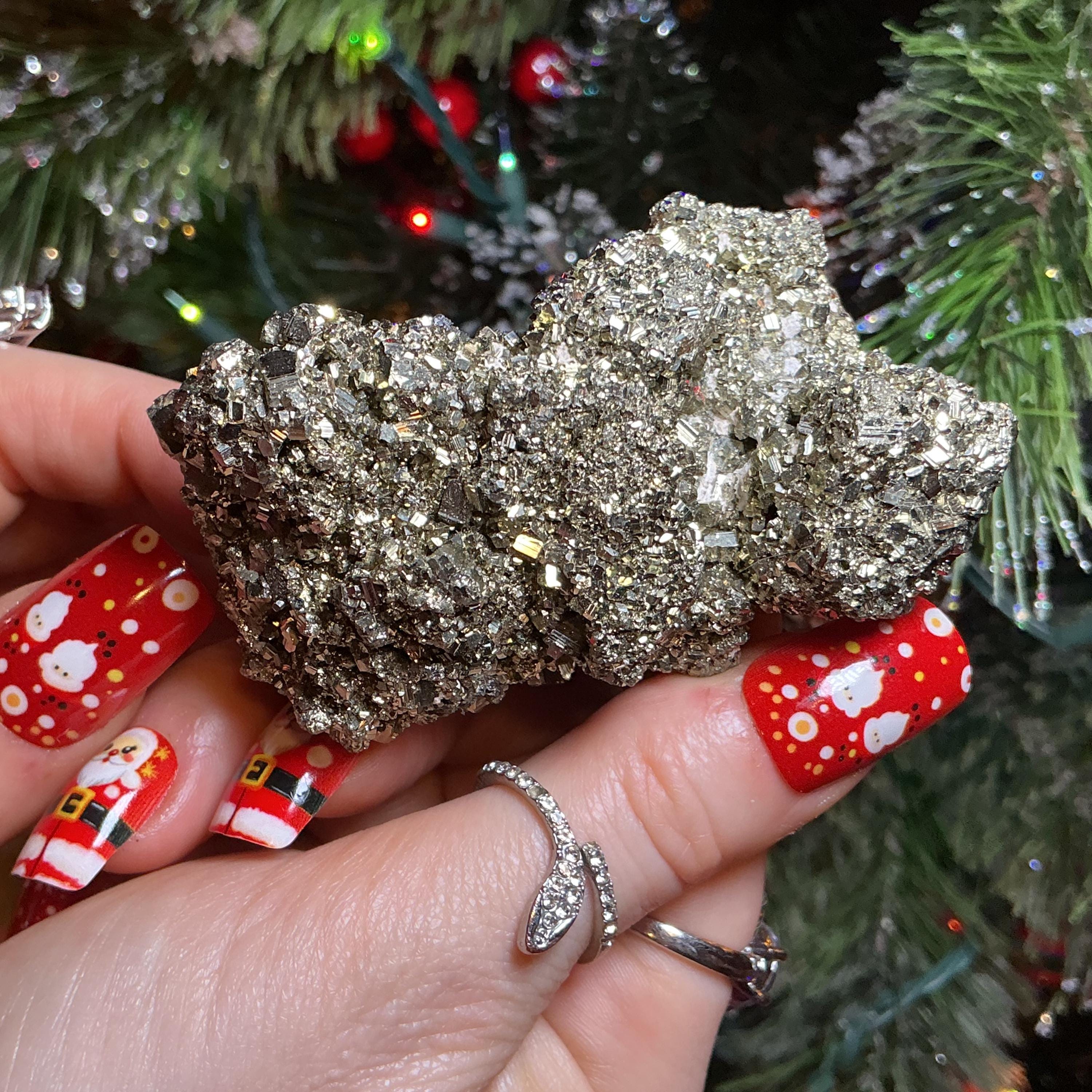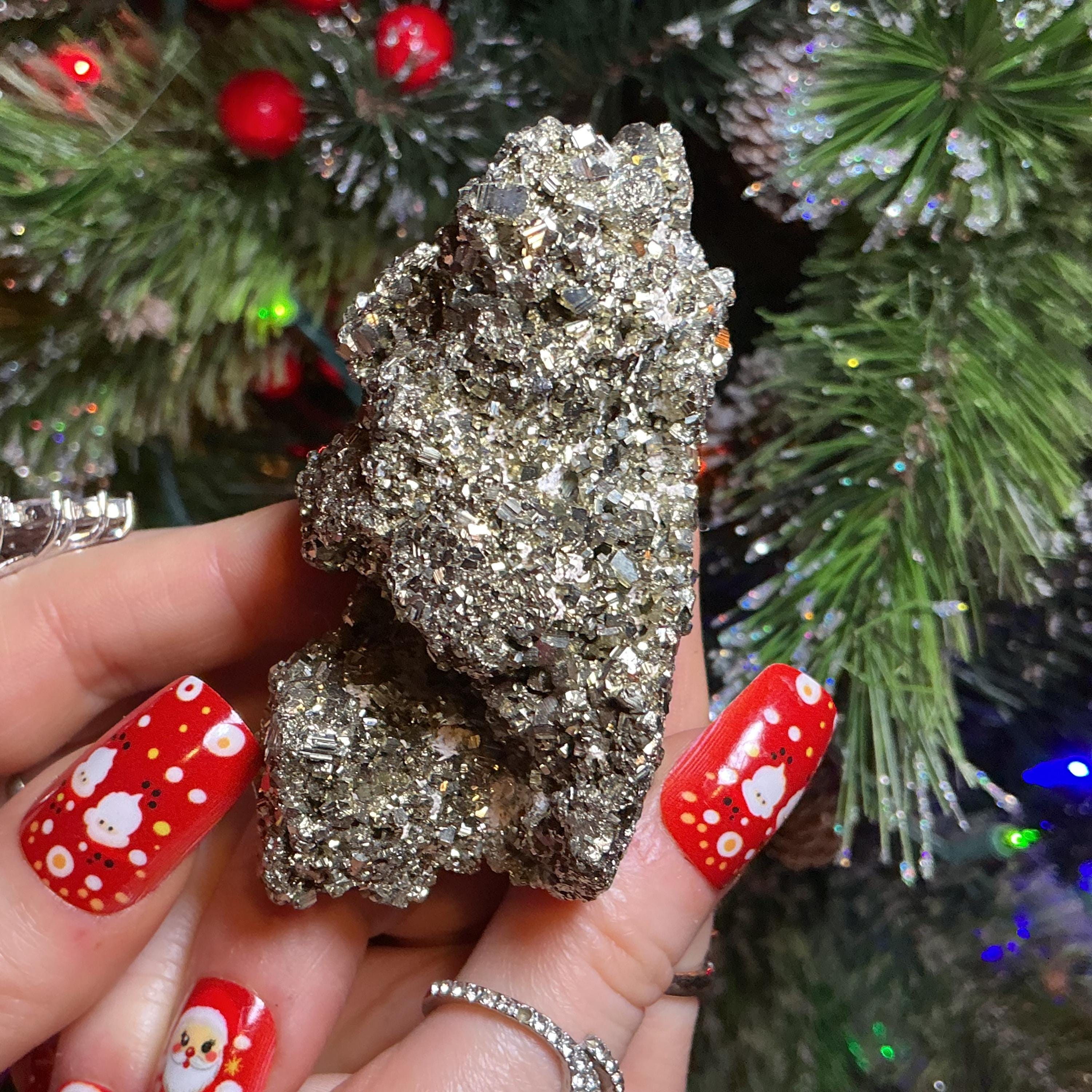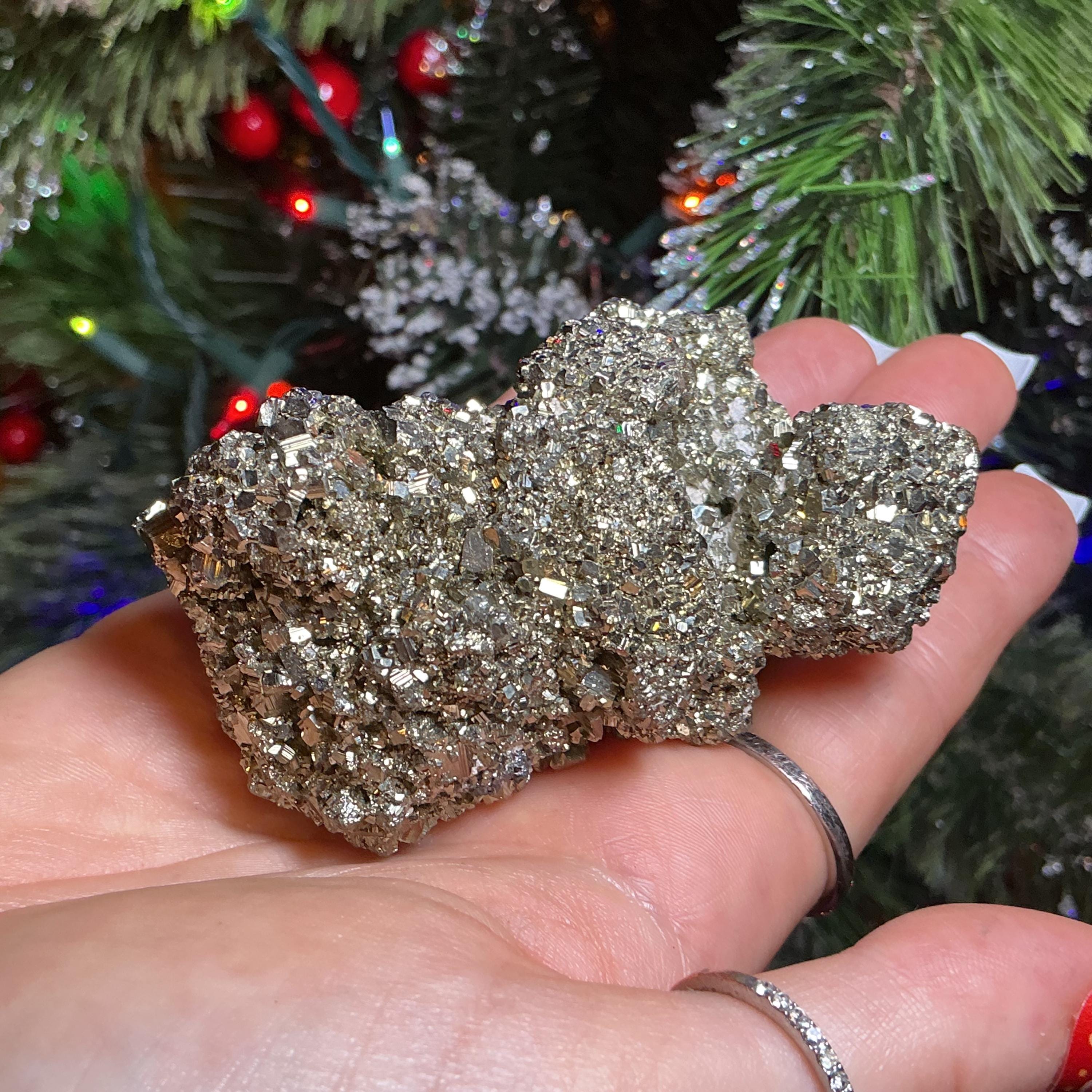 Pyrite Crystal Cluster ~ Large 8 oz. ~ 3" Long ~ Super Sparkling Golden Specimen ~ Meditation Stone, Altar Feng Shui