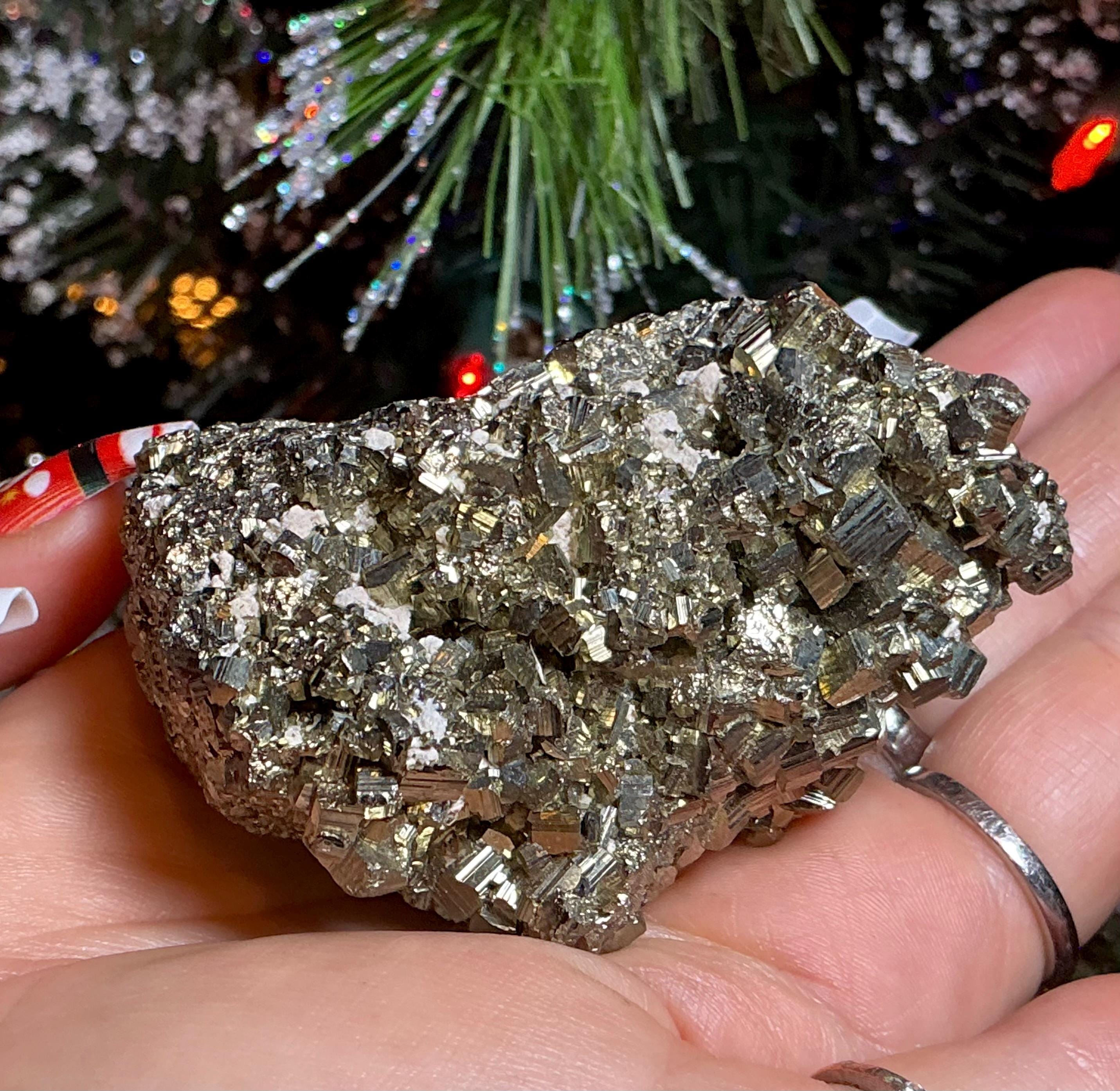 Pyrite Crystal Cluster ~ Large 9 oz. ~ 3" Long ~ Super Sparkling Golden Specimen ~ Meditation Stone, Altar Feng Shui