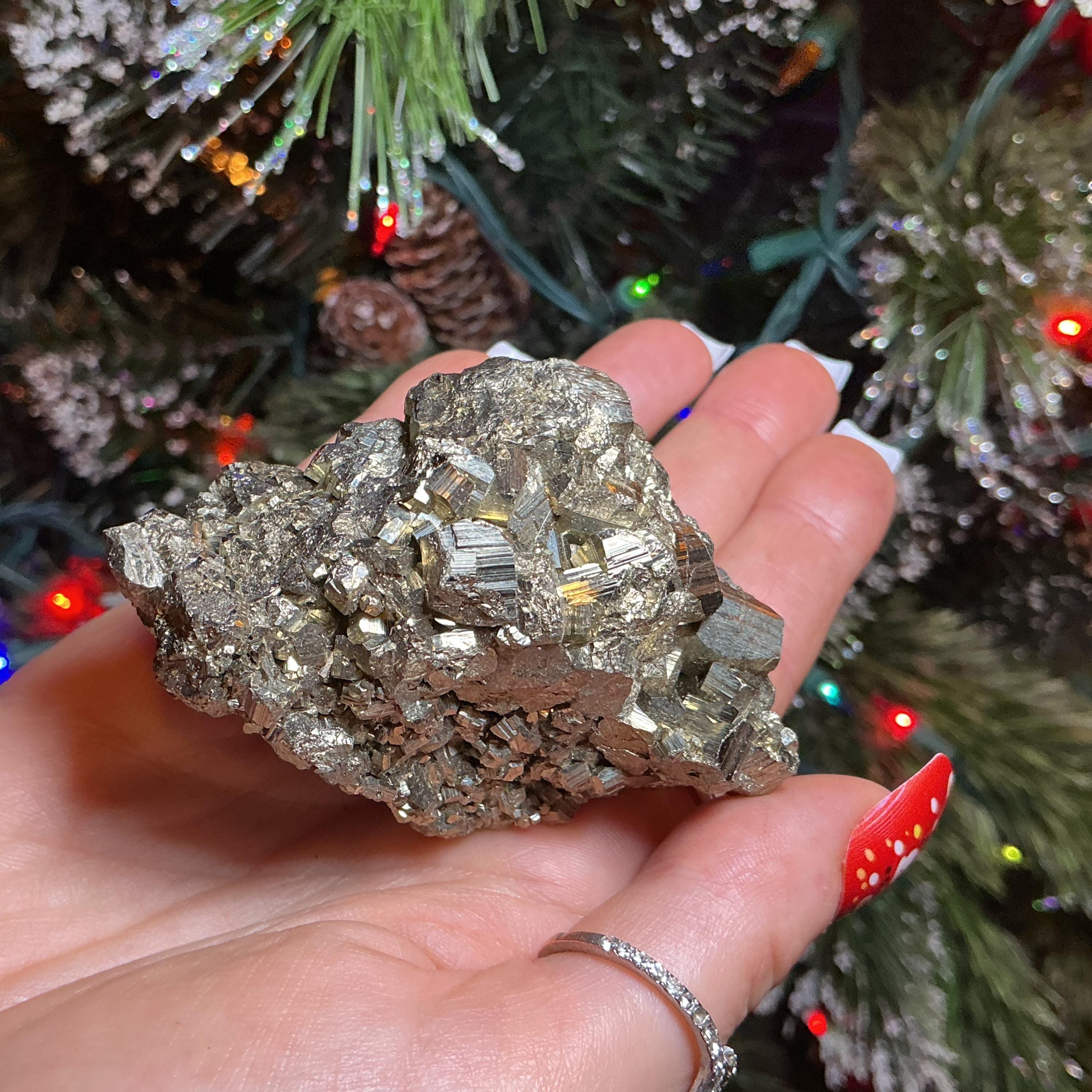 Pyrite Crystal Cluster ~ Large 9 oz. ~ 3" Long ~ Super Sparkling Golden Specimen ~ Meditation Stone, Altar Feng Shui