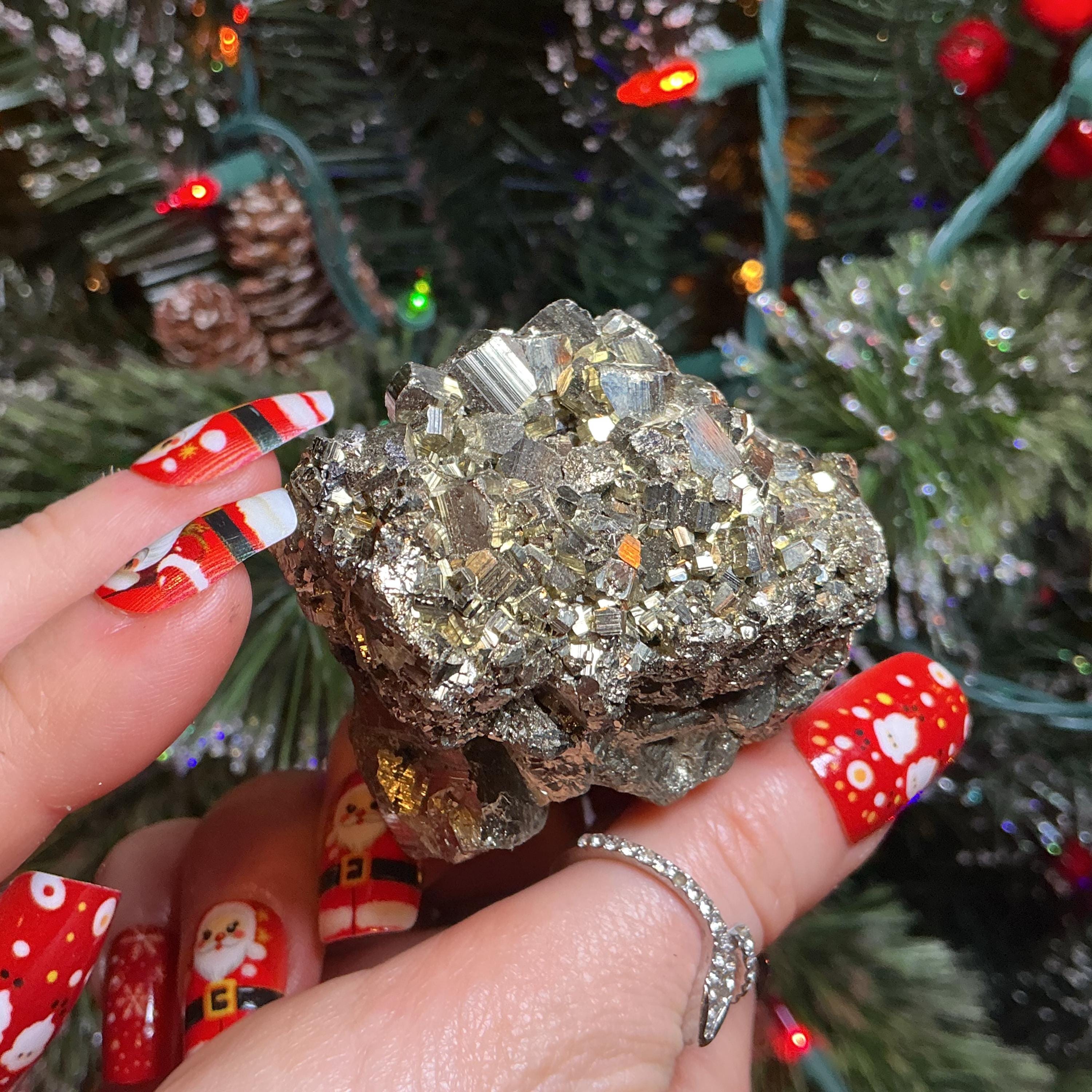 Pyrite Crystal Cluster ~ Large 11 oz. ~ 3" Long ~ Super Sparkling Golden Specimen ~ Meditation Stone, Altar Feng Shui