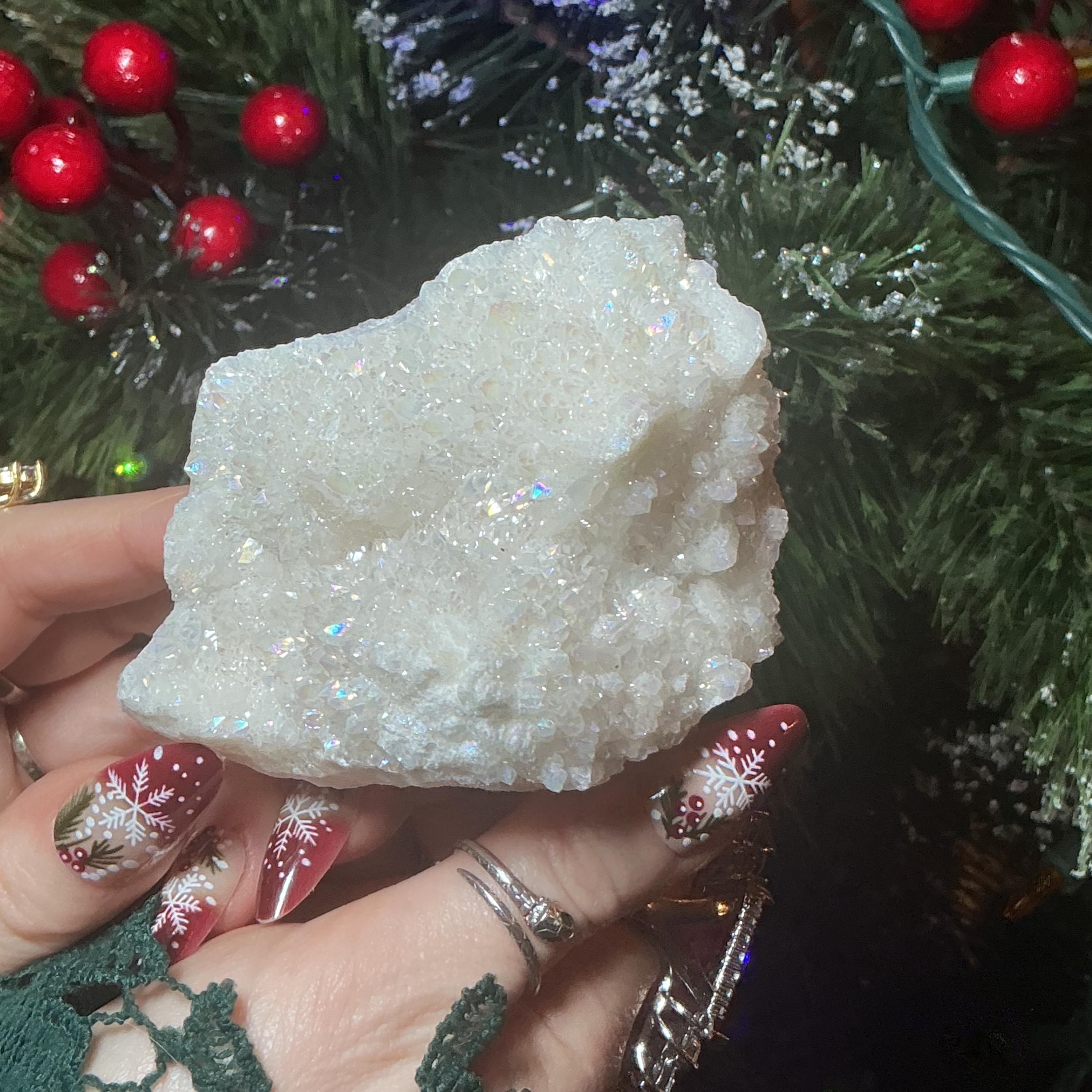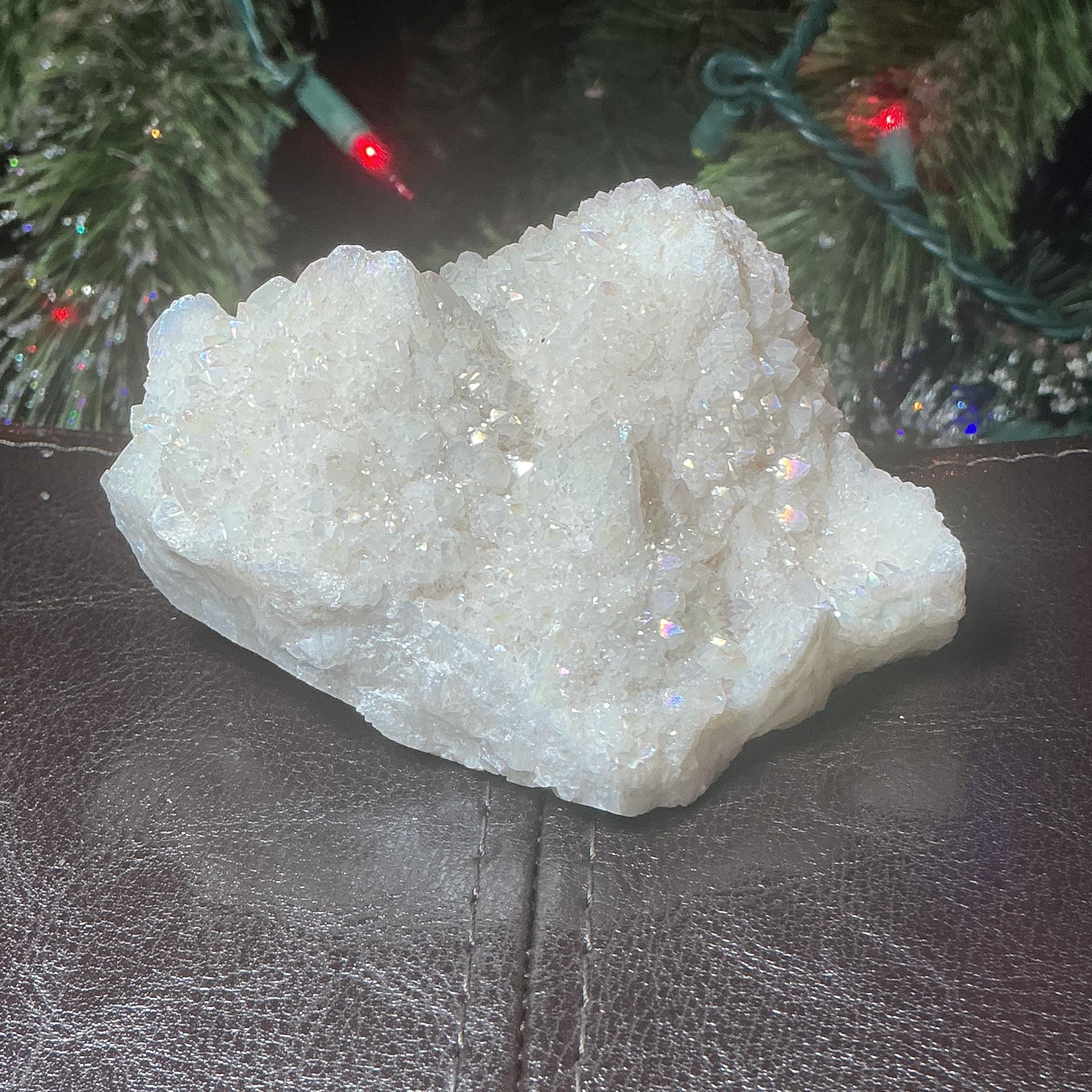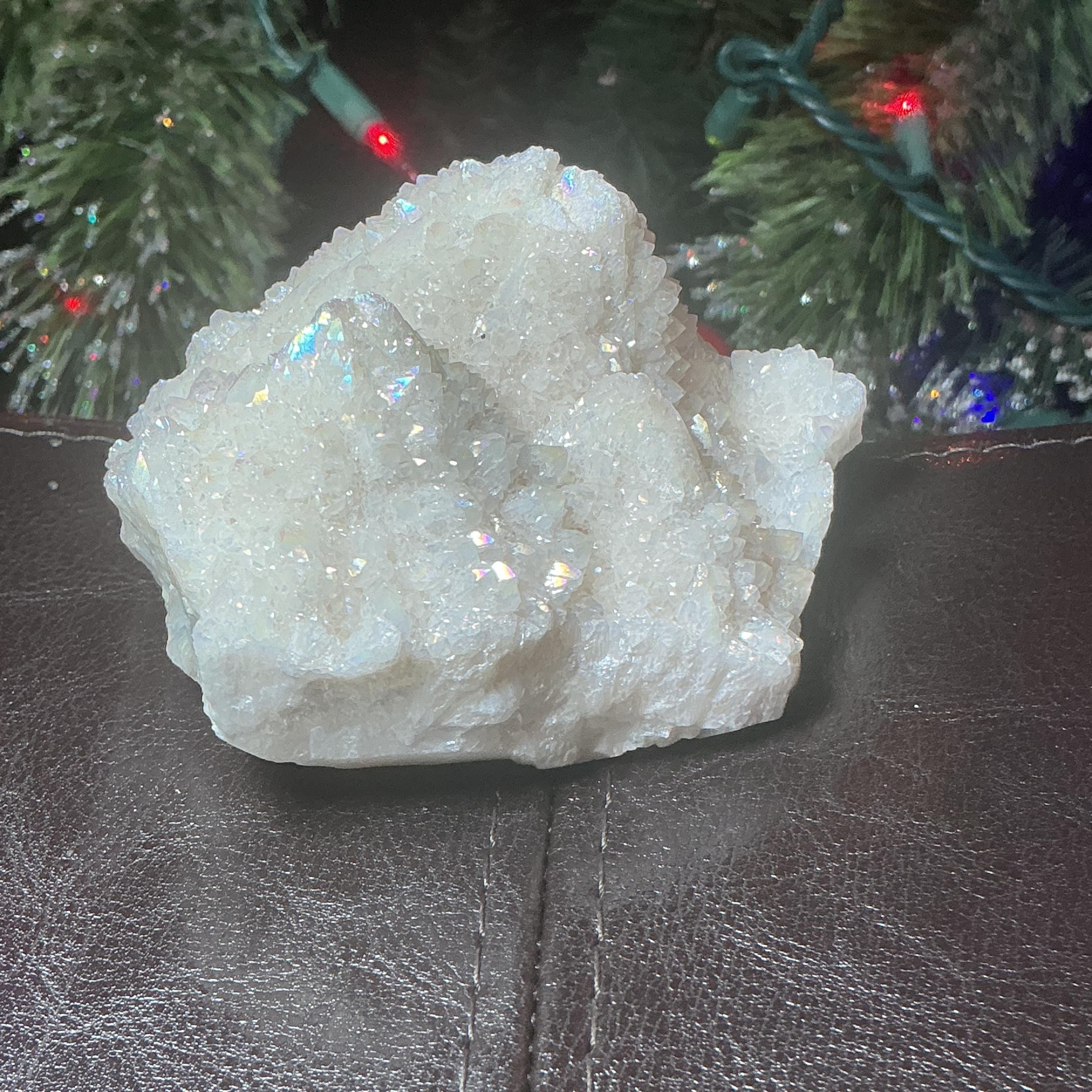 White Aura Quartz Crystal Cluster ~ Large 11 oz. ~ 3" Long ~ Electric Pearlescent Rainbow Iridescent Sparkling Points