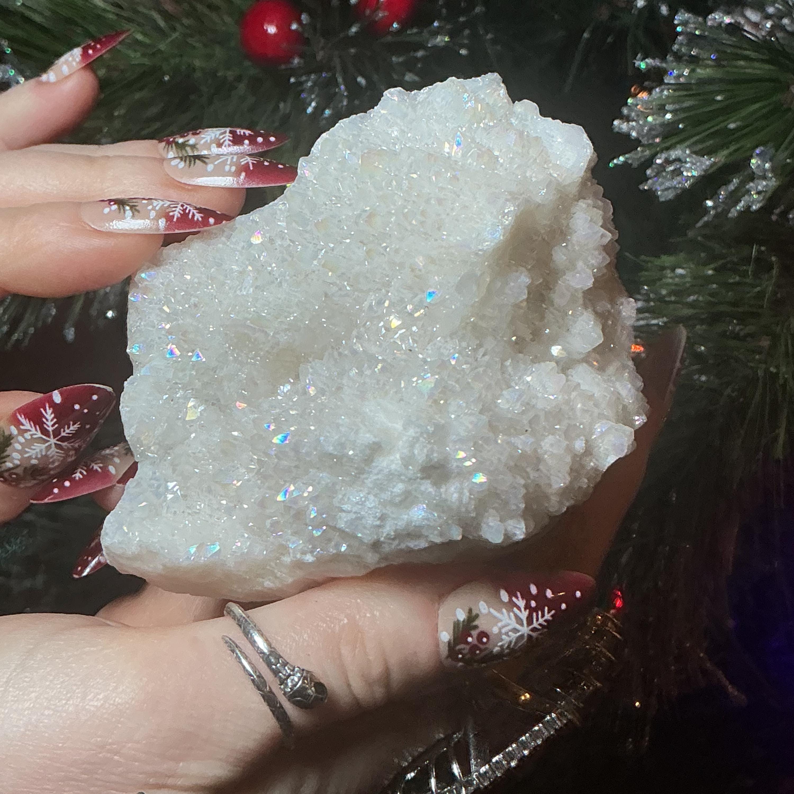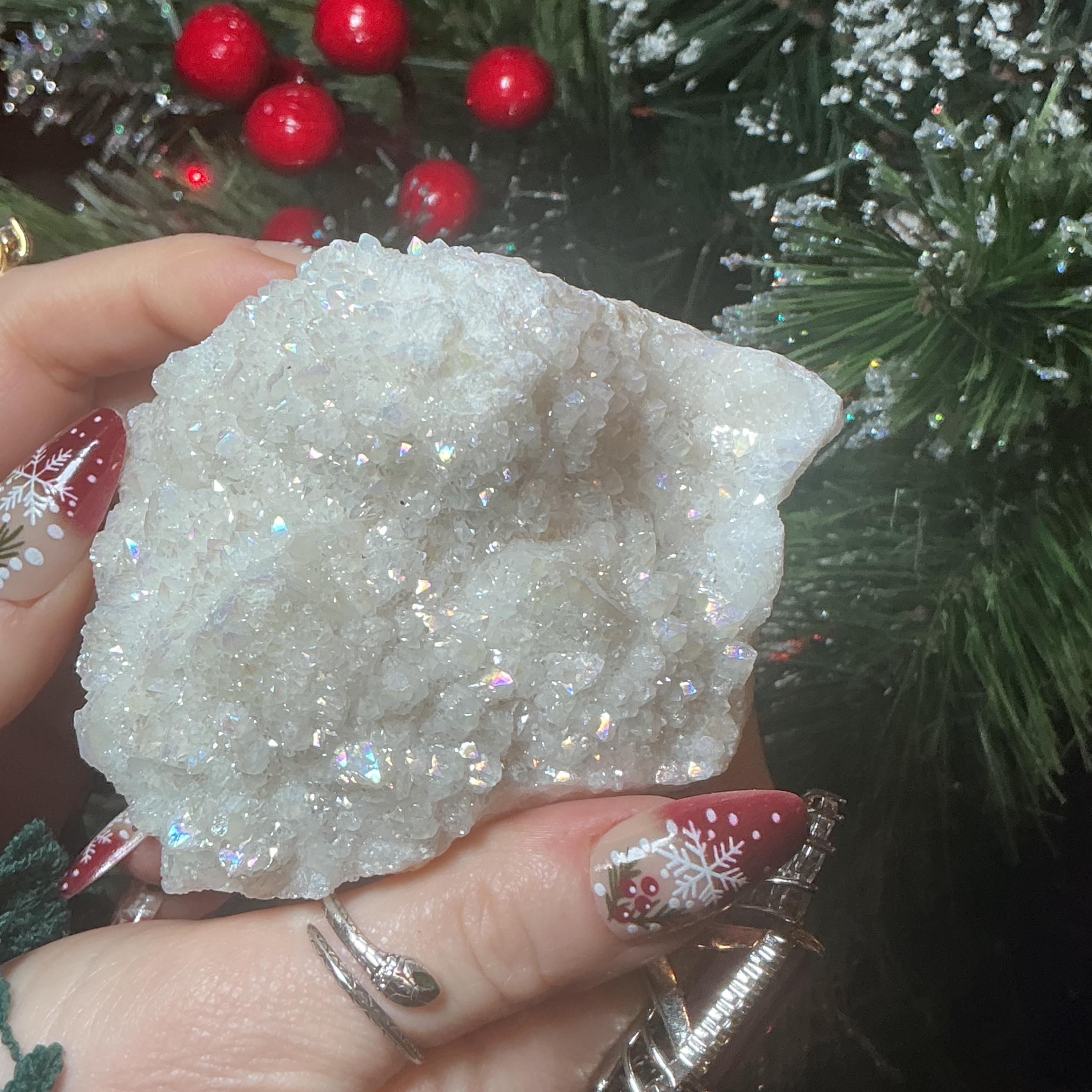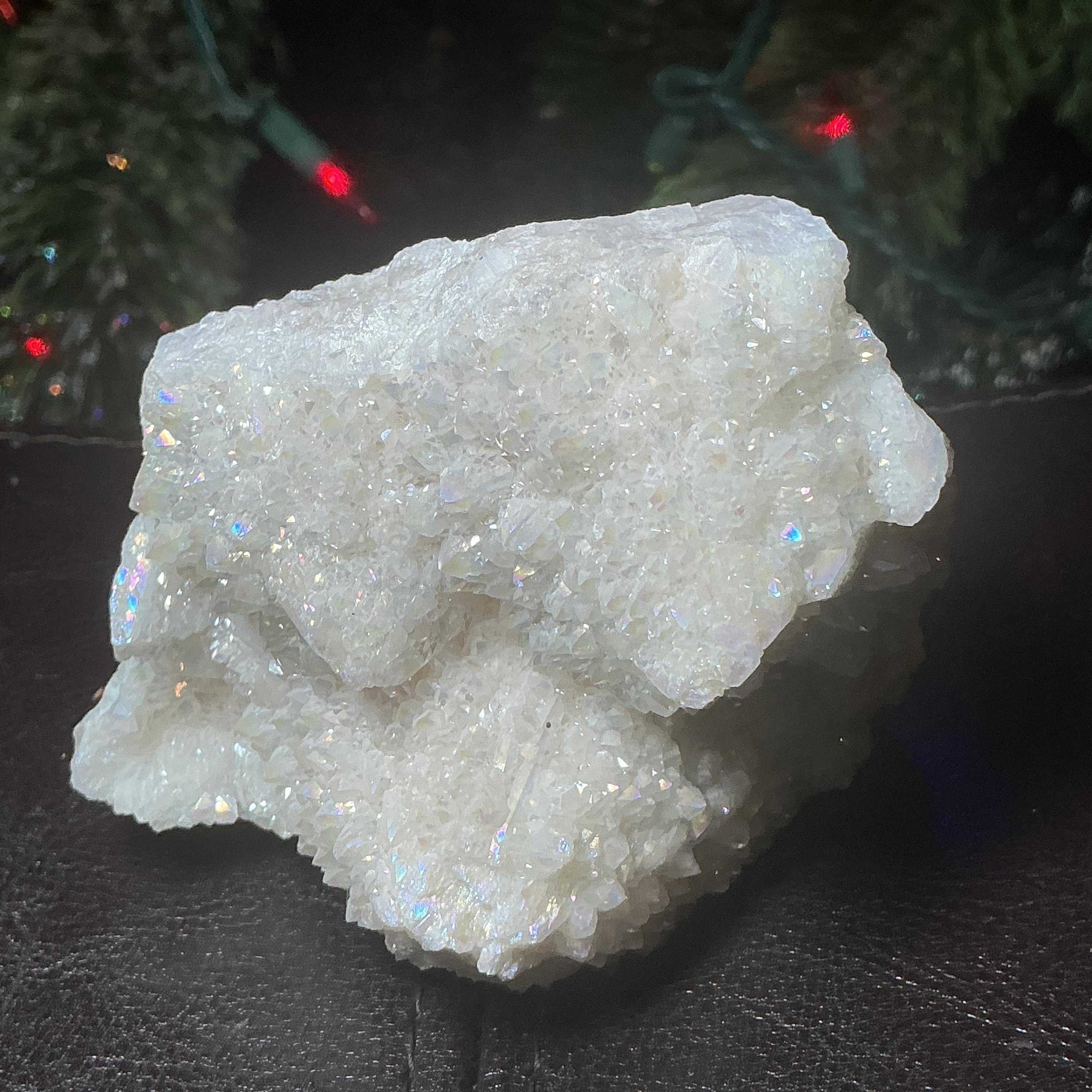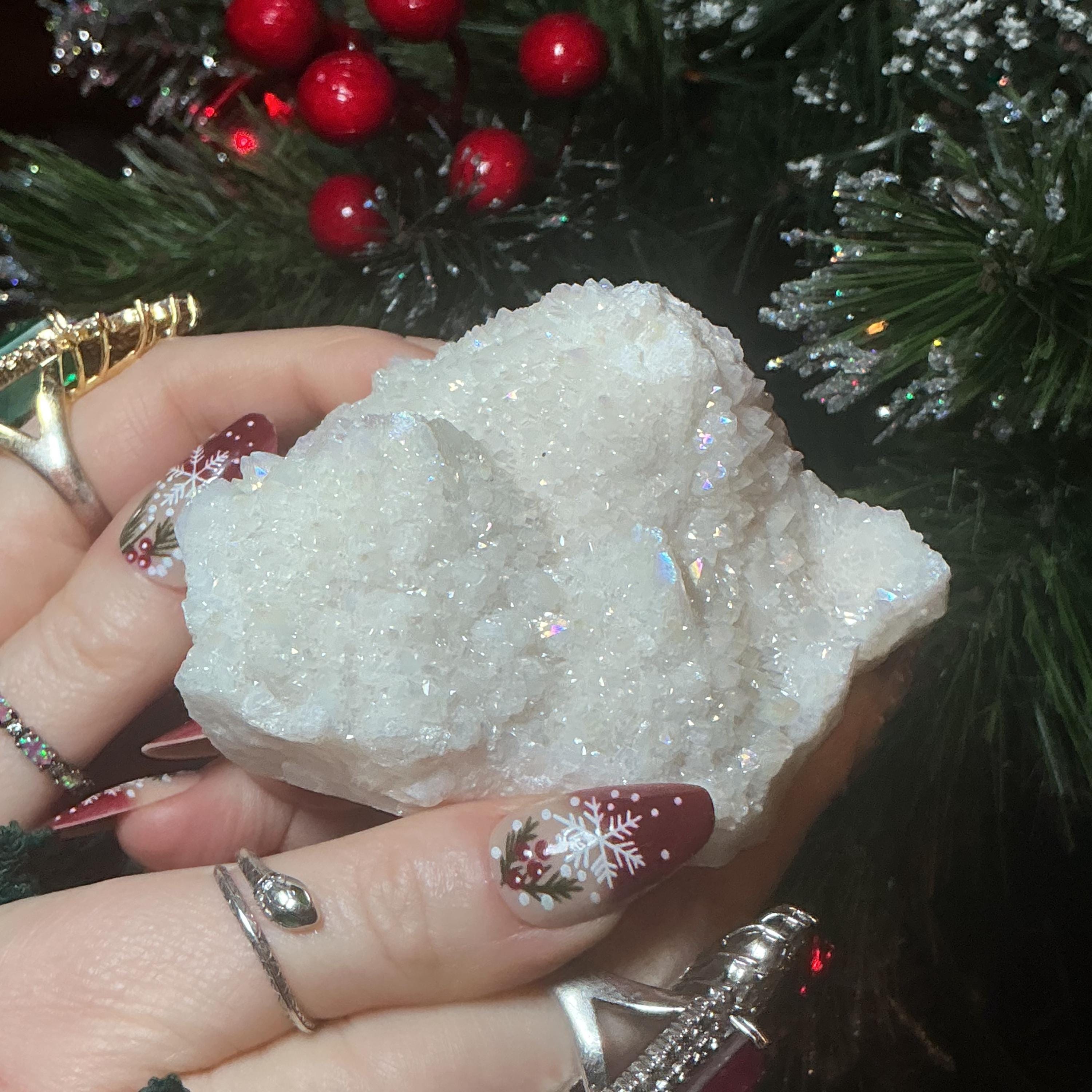 White Aura Quartz Crystal Cluster ~ Large 11 oz. ~ 3" Long ~ Electric Pearlescent Rainbow Iridescent Sparkling Points