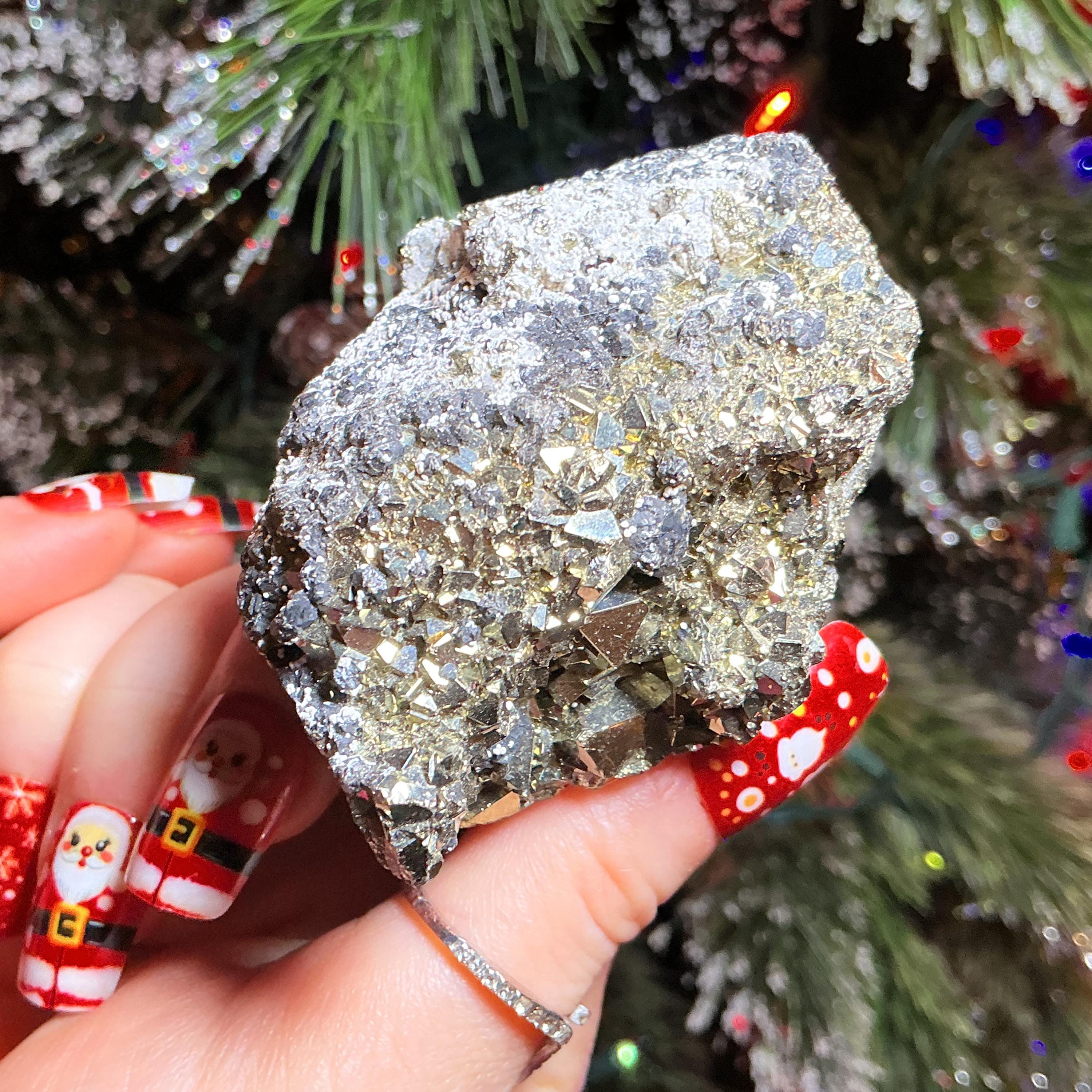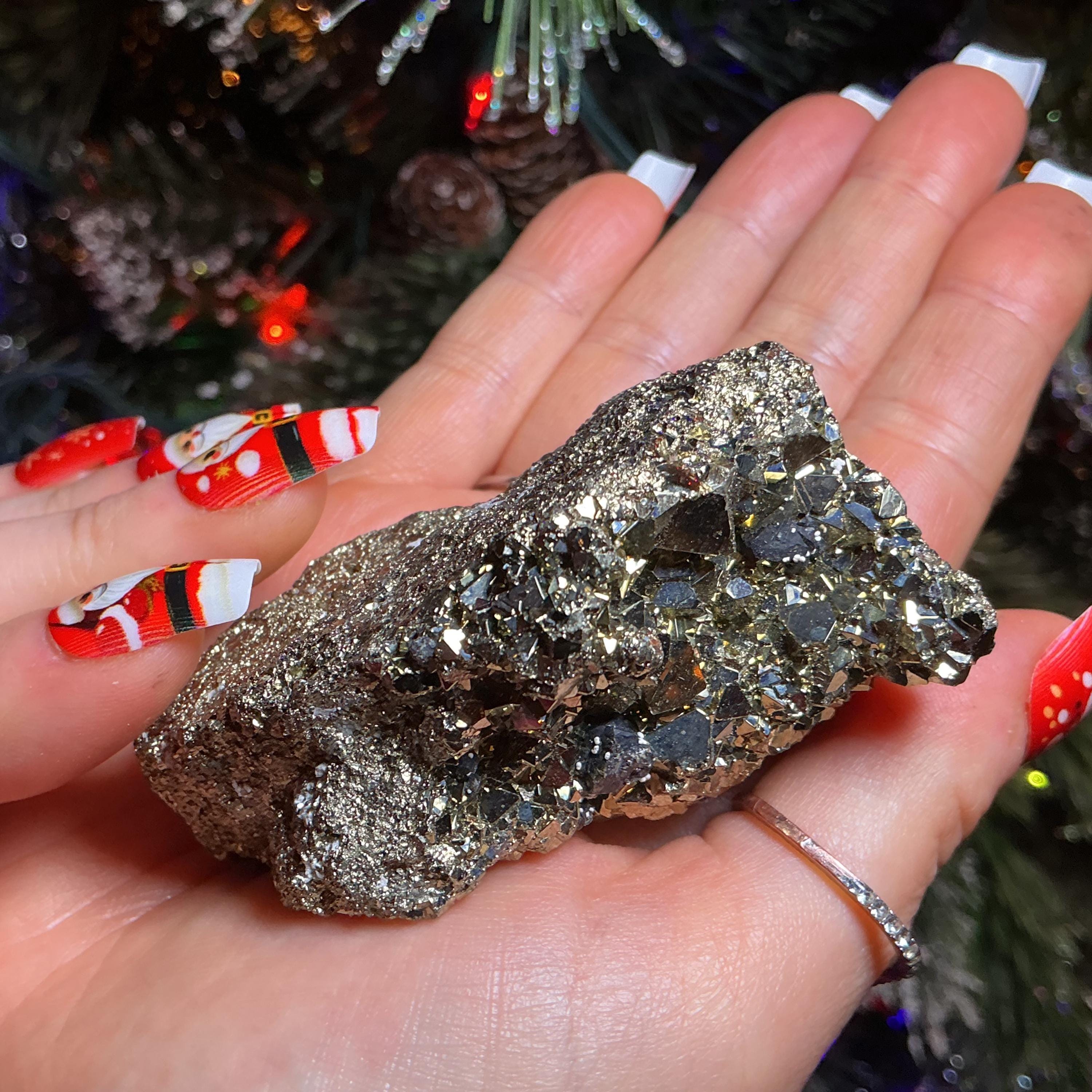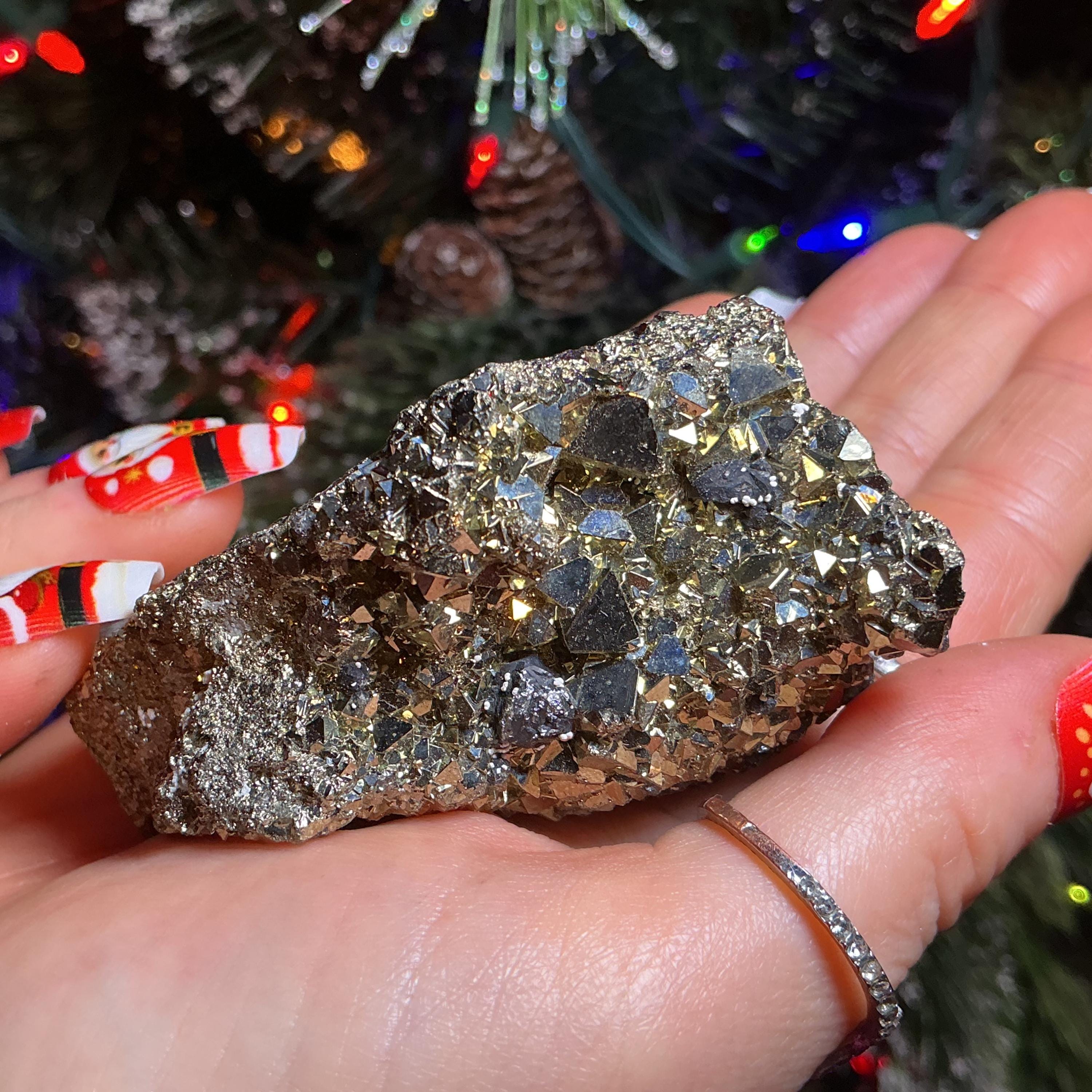 Pyrite Crystal Cluster ~ Large 8 oz. ~ 3" Long ~ Super Sparkling Golden Specimen ~ Meditation Stone, Altar Feng Shui