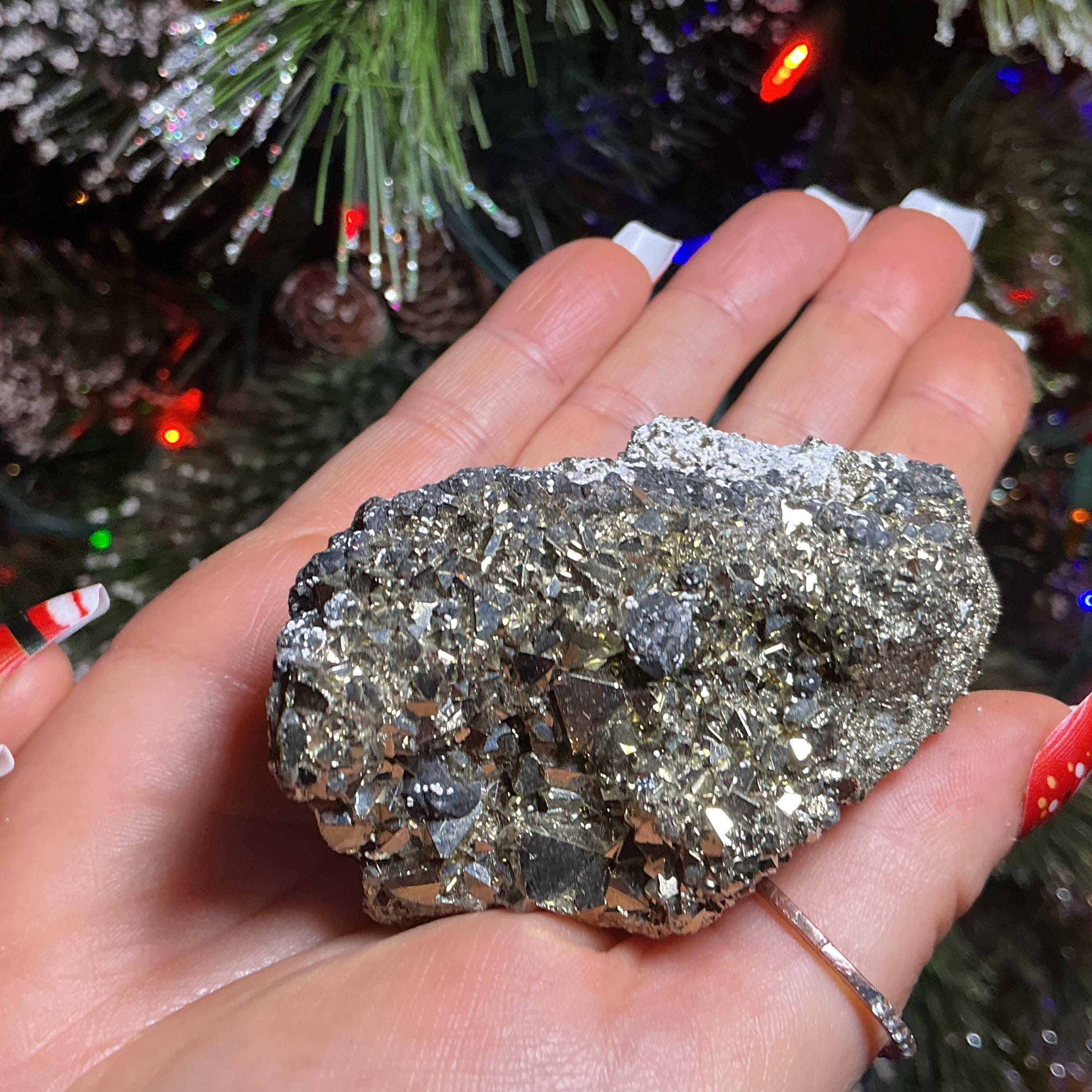 Sparkling Golden Pyrite Crystal 3" Long Cluster, 8 oz. Meditation Altar Decor
