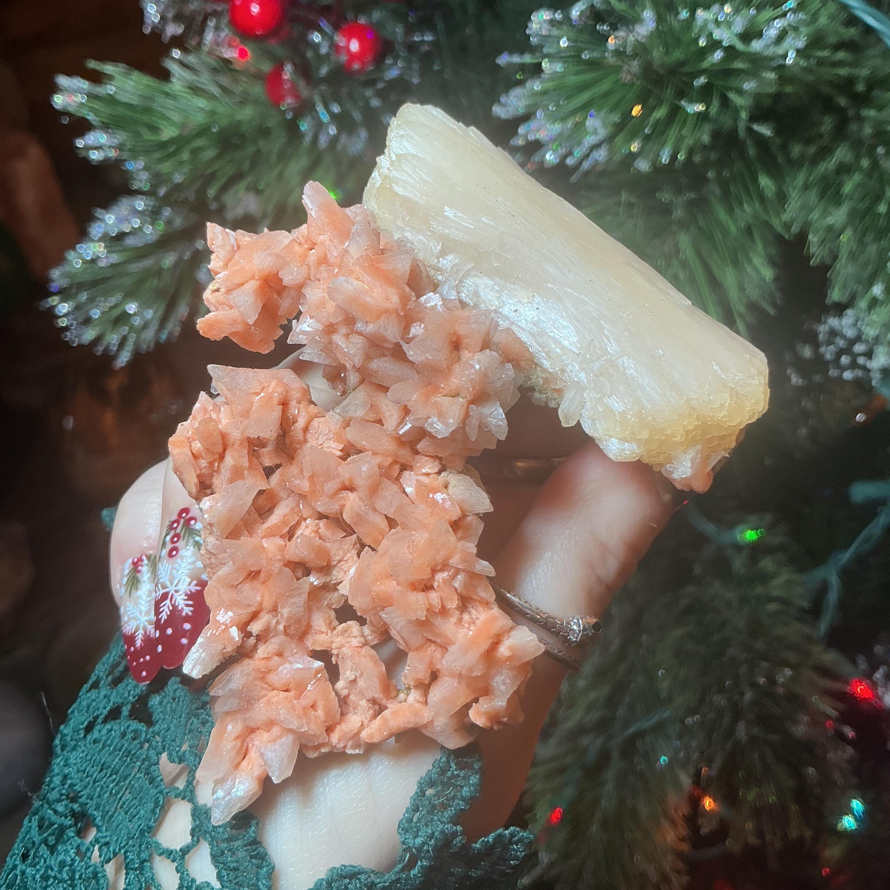 Heulandite and Stilbite Crystal Cluster ~ 2.6 oz. ~ 4" Long ~ Peachy Orange Color ~ Rare Stunning Mineral Combination