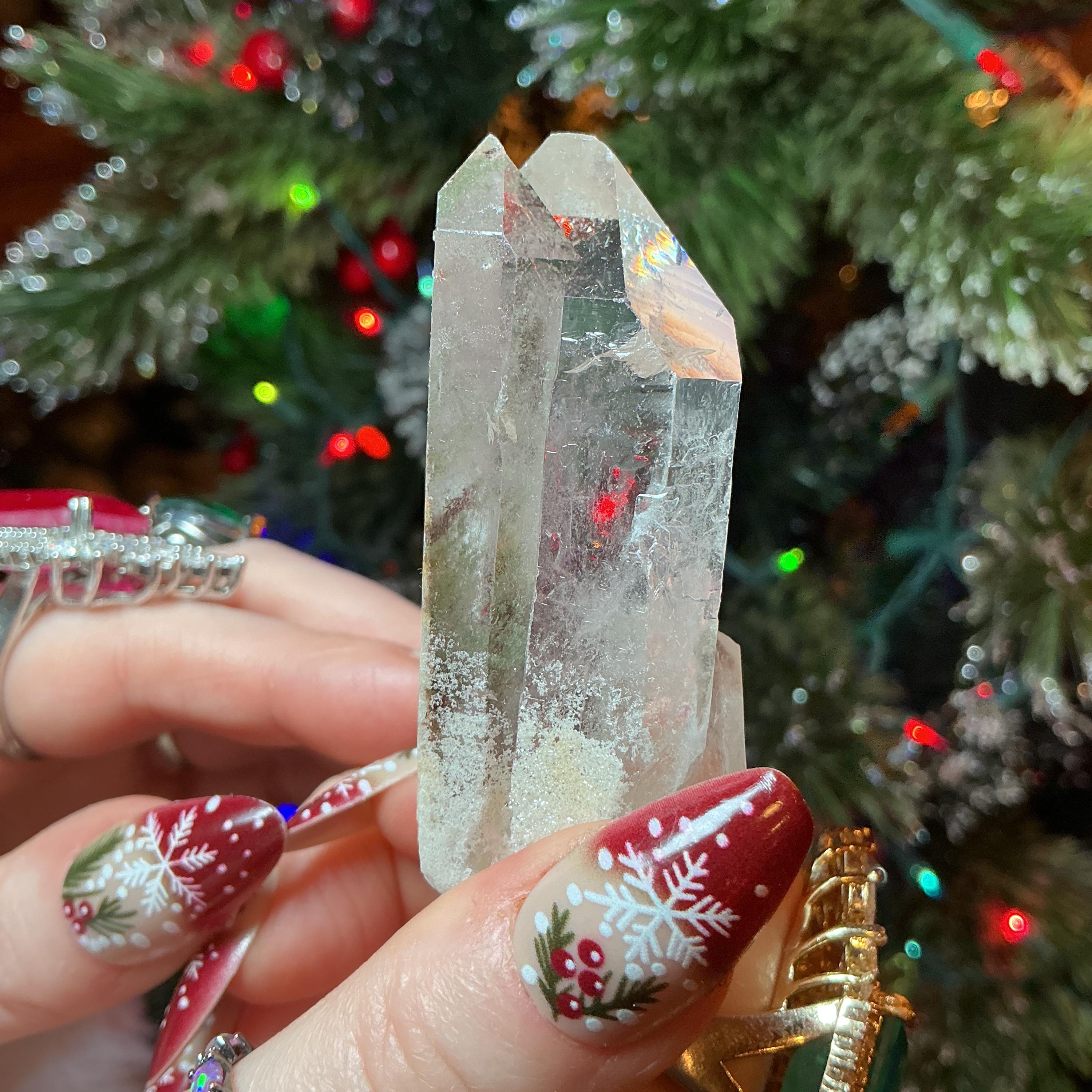 What makes this a truly one-of-a-kind Clear Quartz is the amazing incredible green chlorite inclusions locked inside this beautiful crystal.