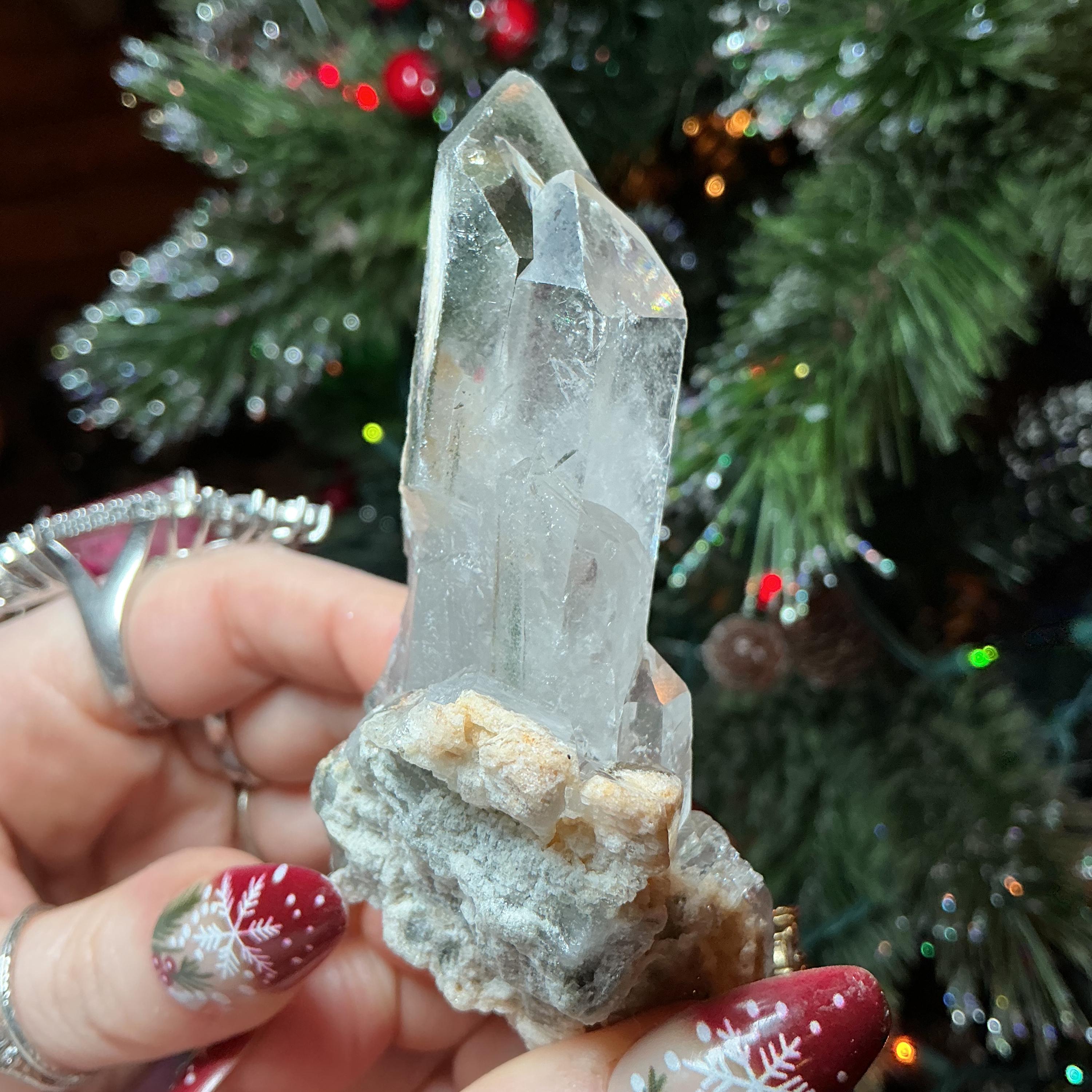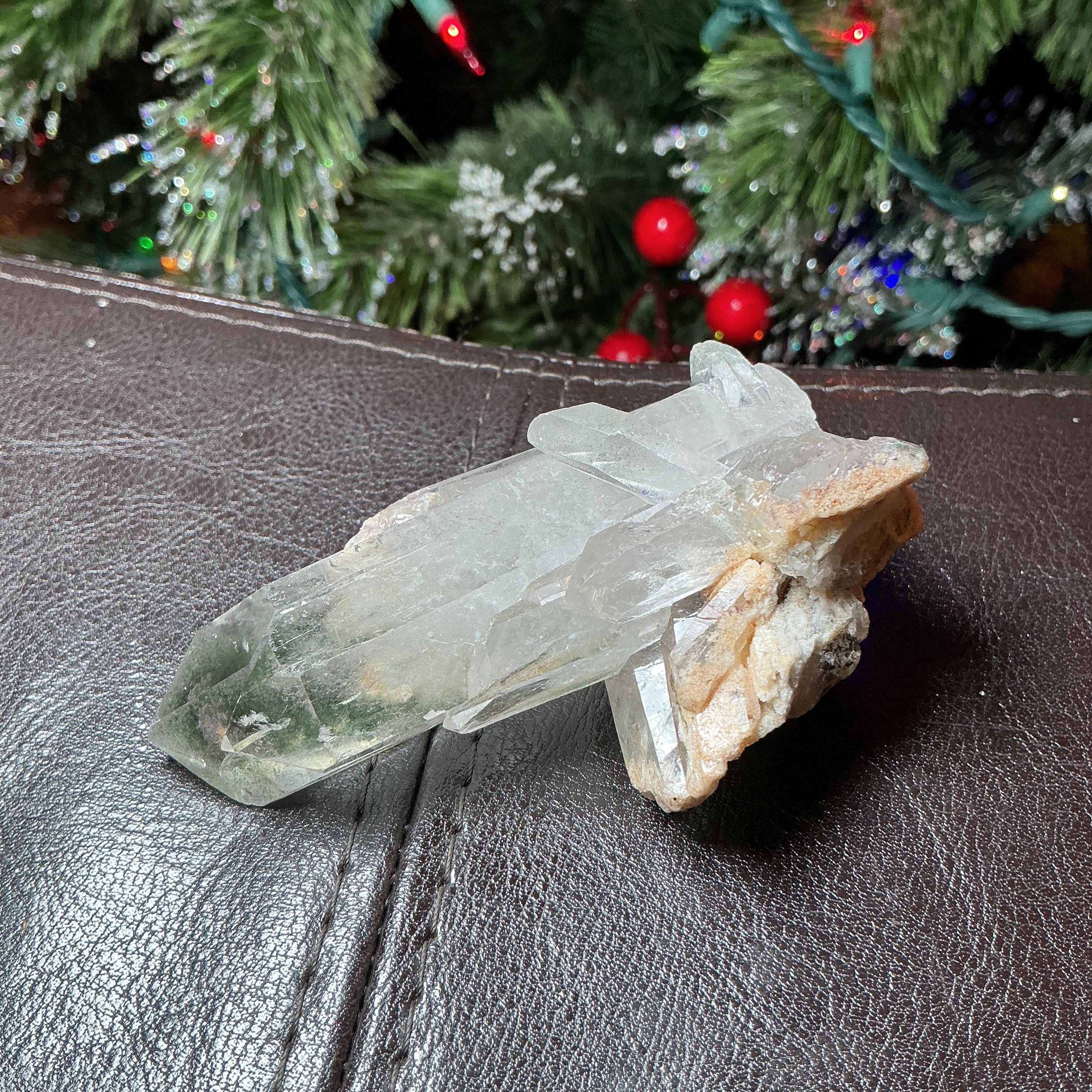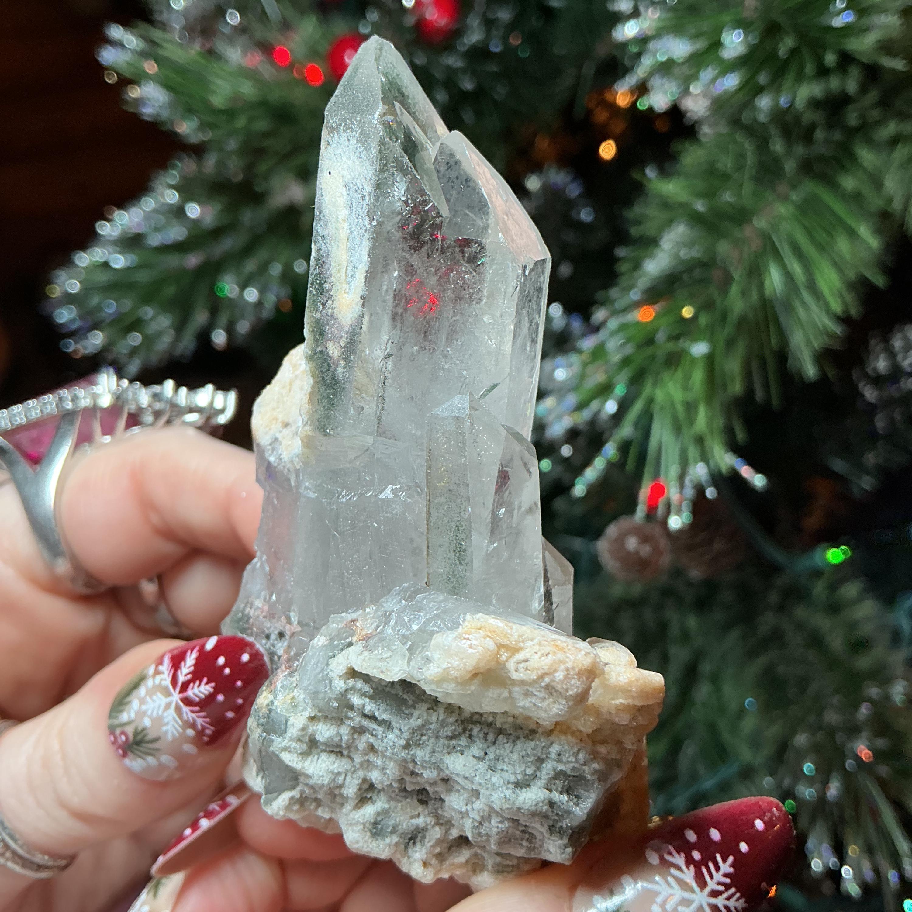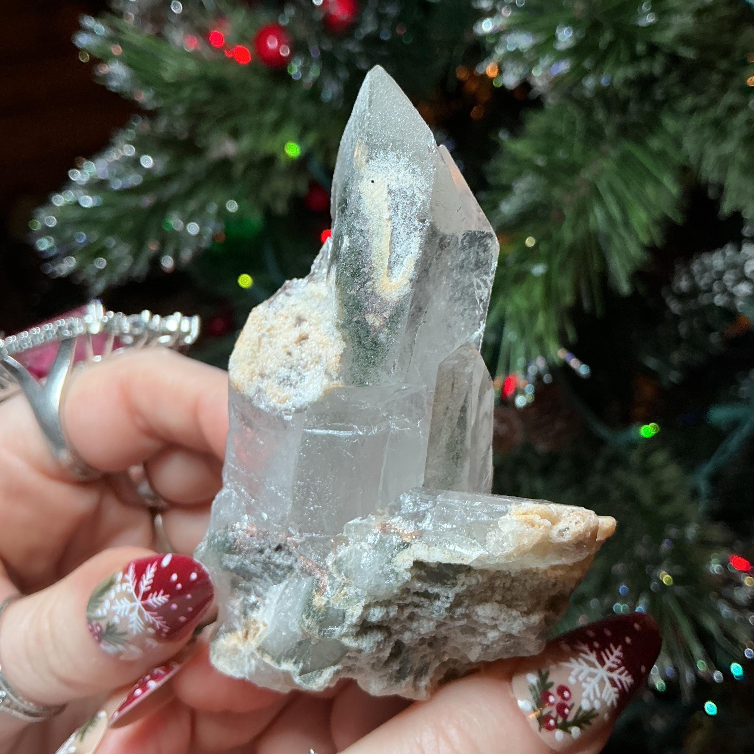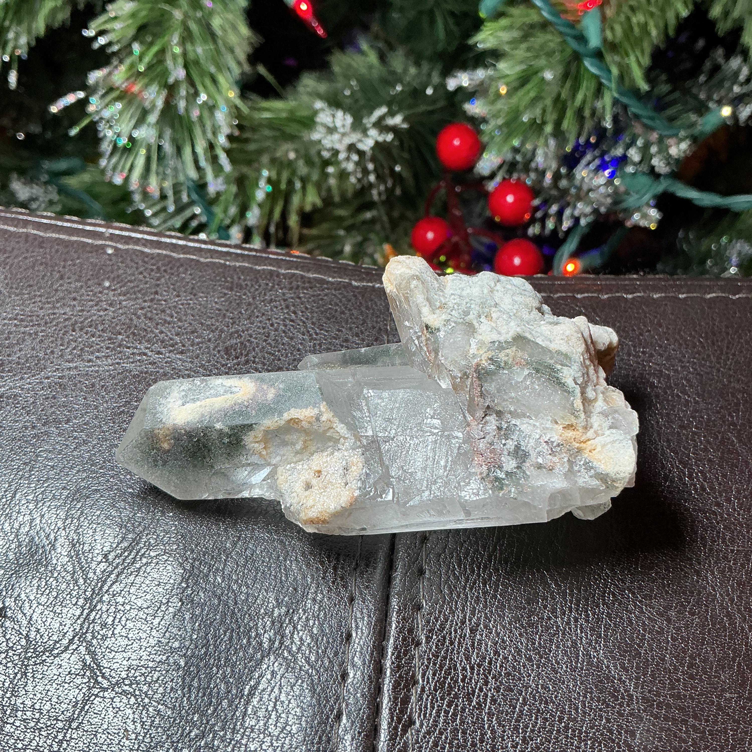 Clear Quartz Crystal Big 4 oz. Cluster ~ 3" Long ~ Green Chlorite Points