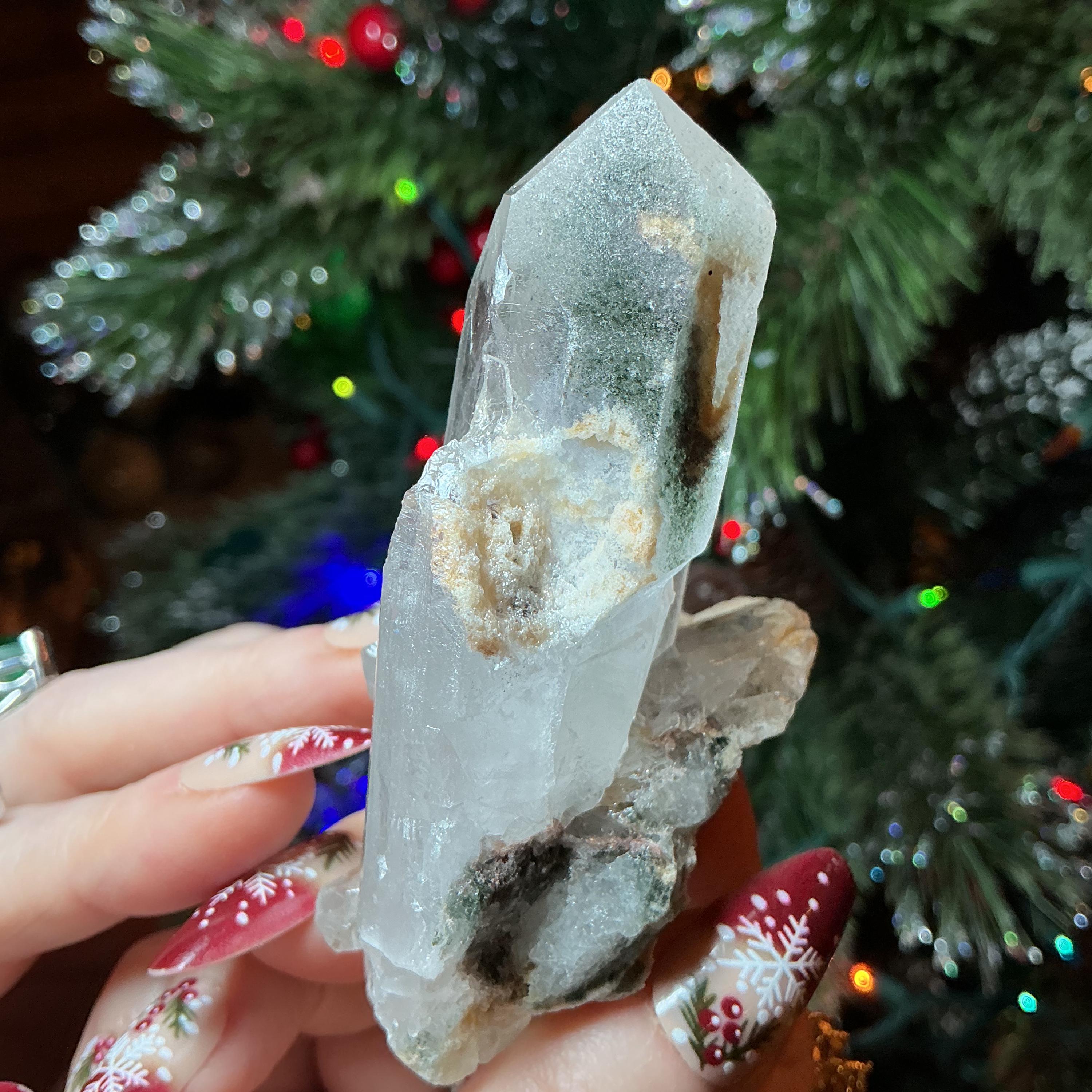 What makes this a truly one-of-a-kind Clear Quartz is the amazing incredible green chlorite inclusions locked inside this beautiful crystal.