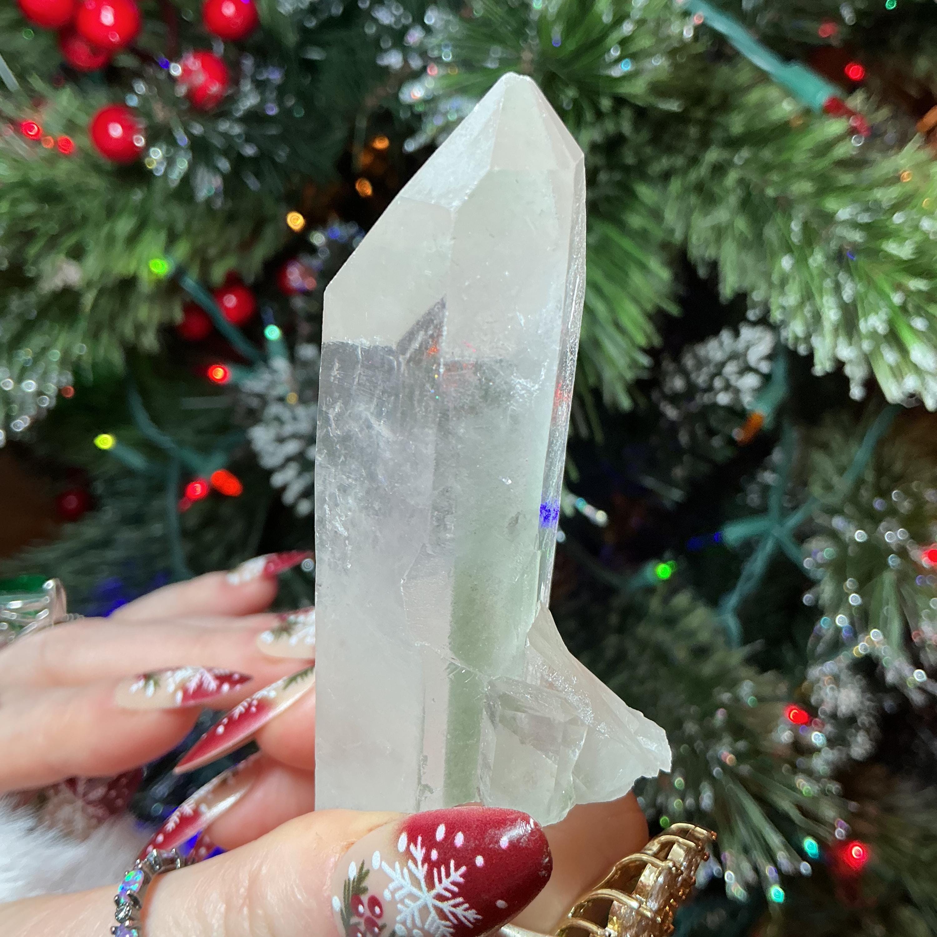 What makes this a truly one-of-a-kind Clear Quartz is the amazing incredible green chlorite inclusions locked inside this beautiful crystal.