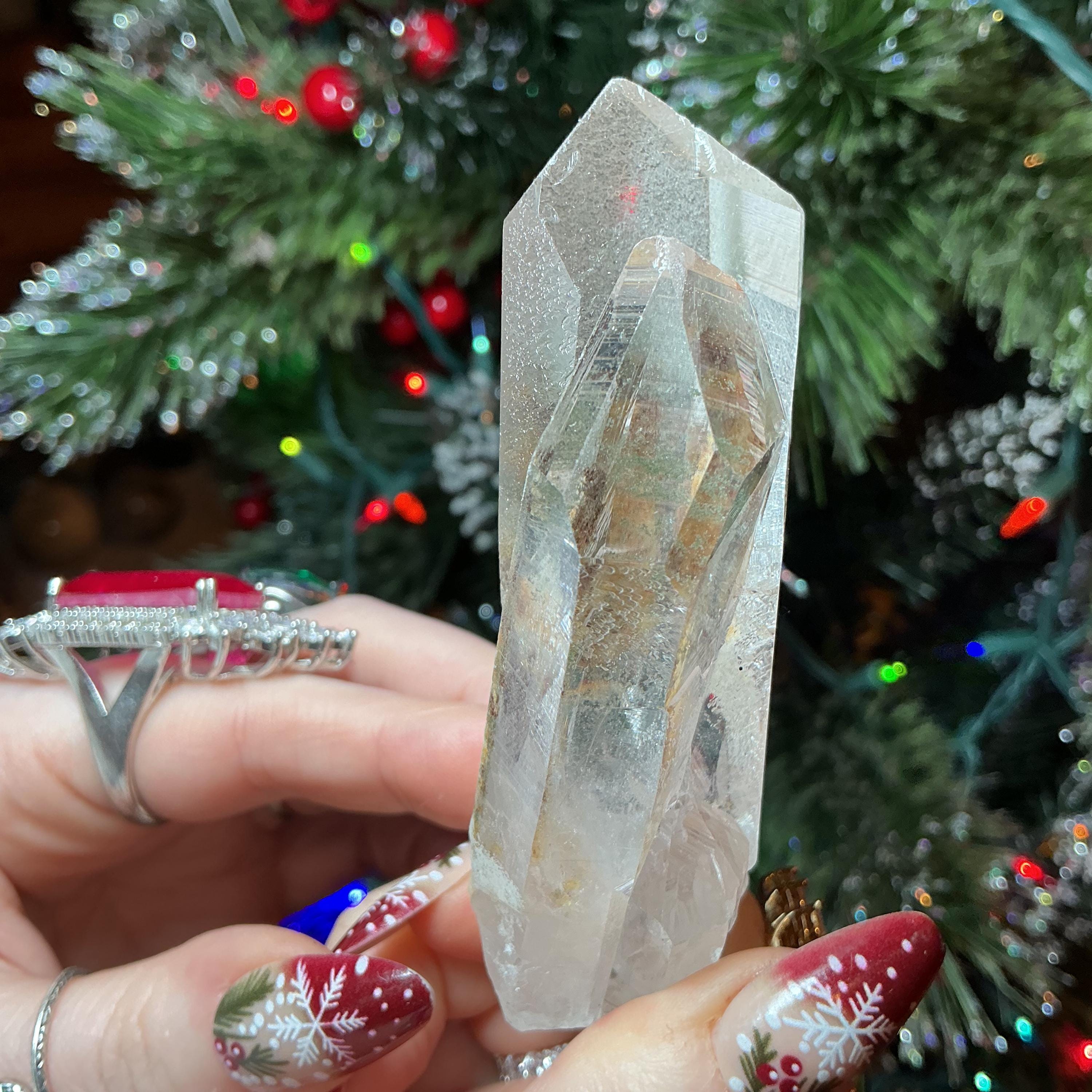 This is an incredible Clear Quartz Crystal Cluster gem cut twin points ~ measuring, 4 inches Long, 1 1 /2 inches wide and weighing in at 4.4 ounces.