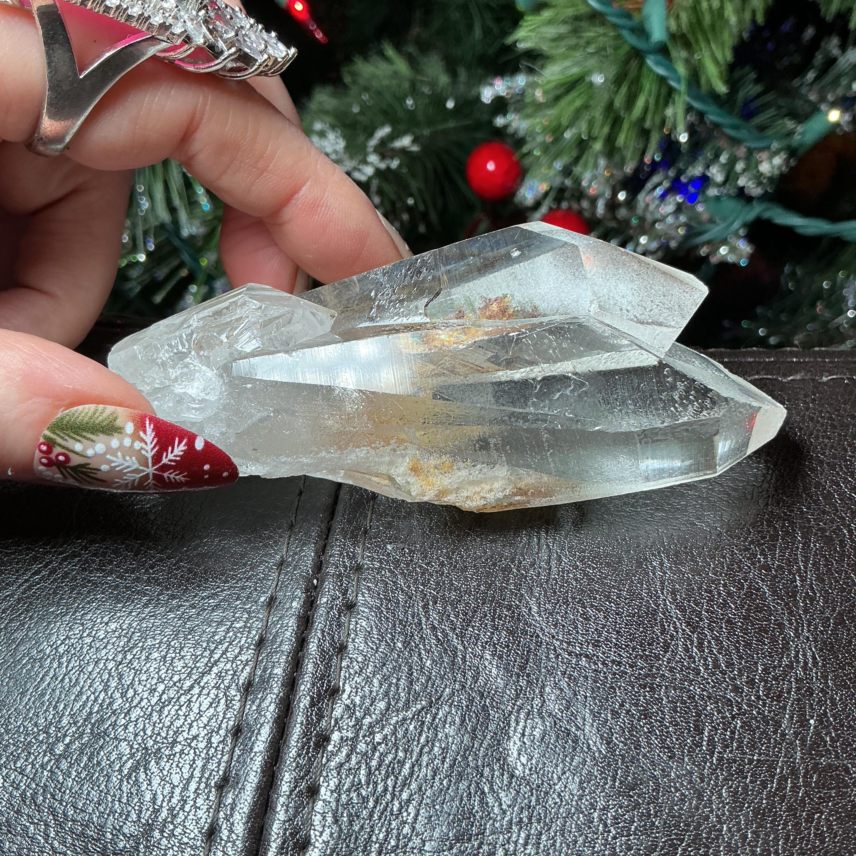 Clear Quartz Crystal Big 4.4 oz. Cluster ~ 4" Long ~ Green Chlorite Points