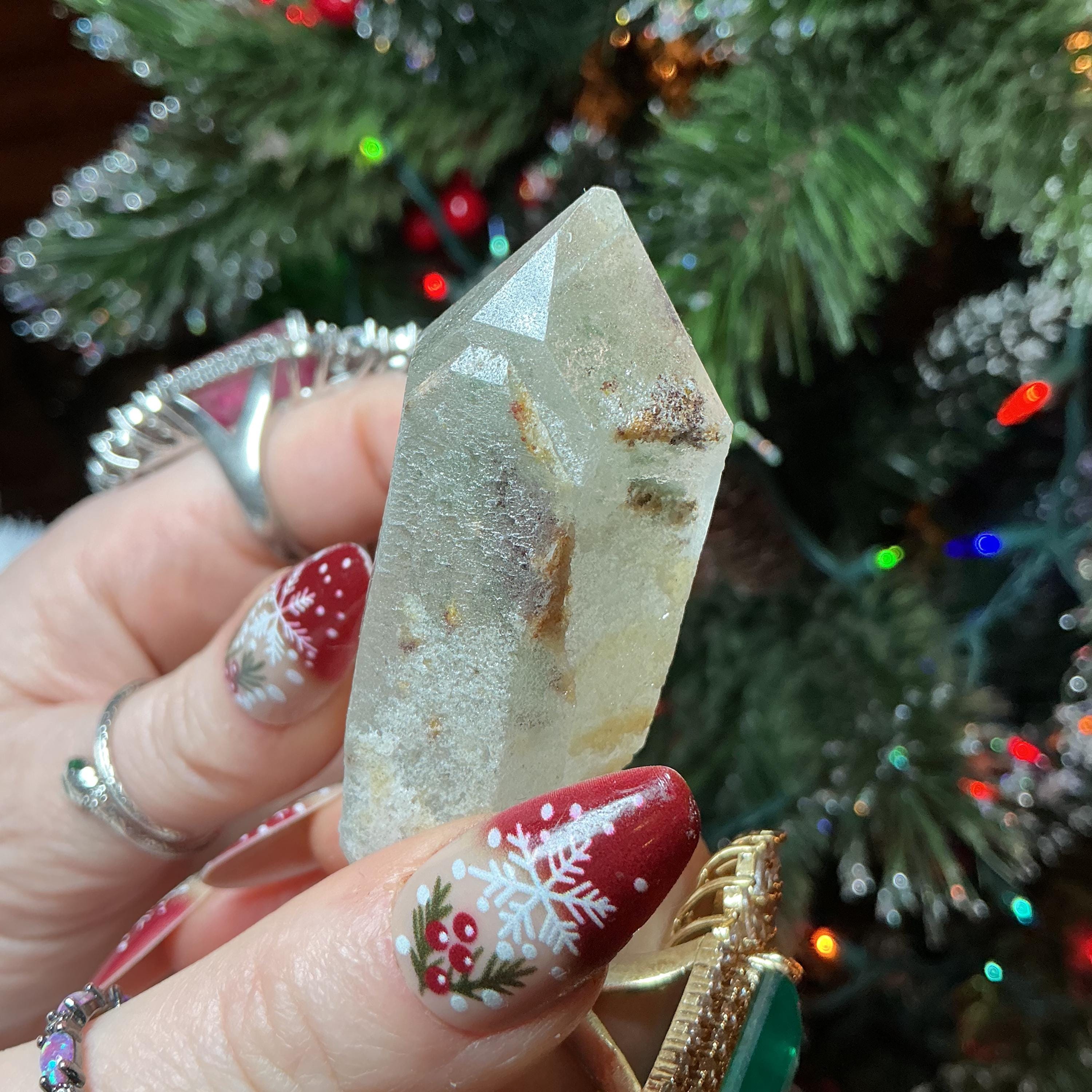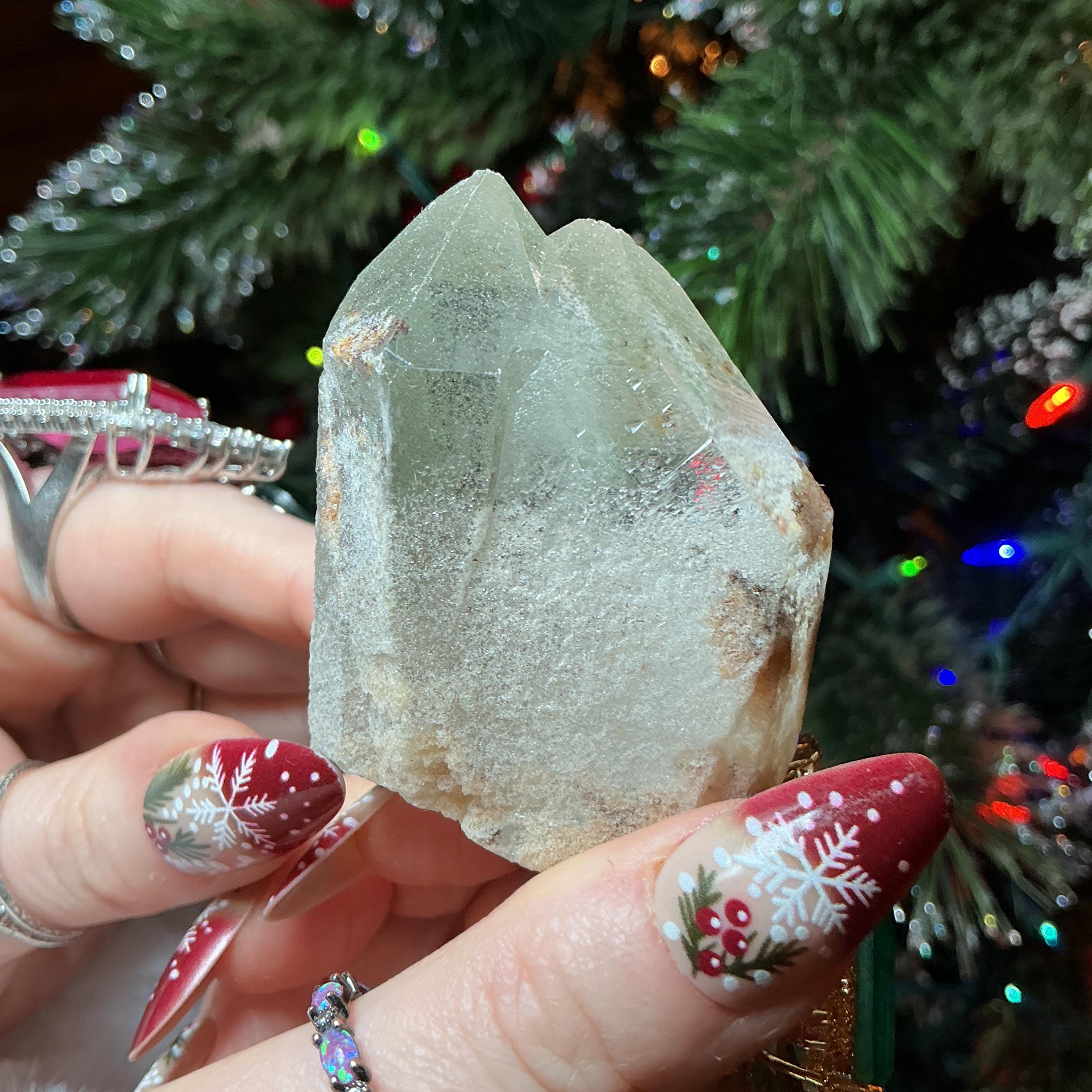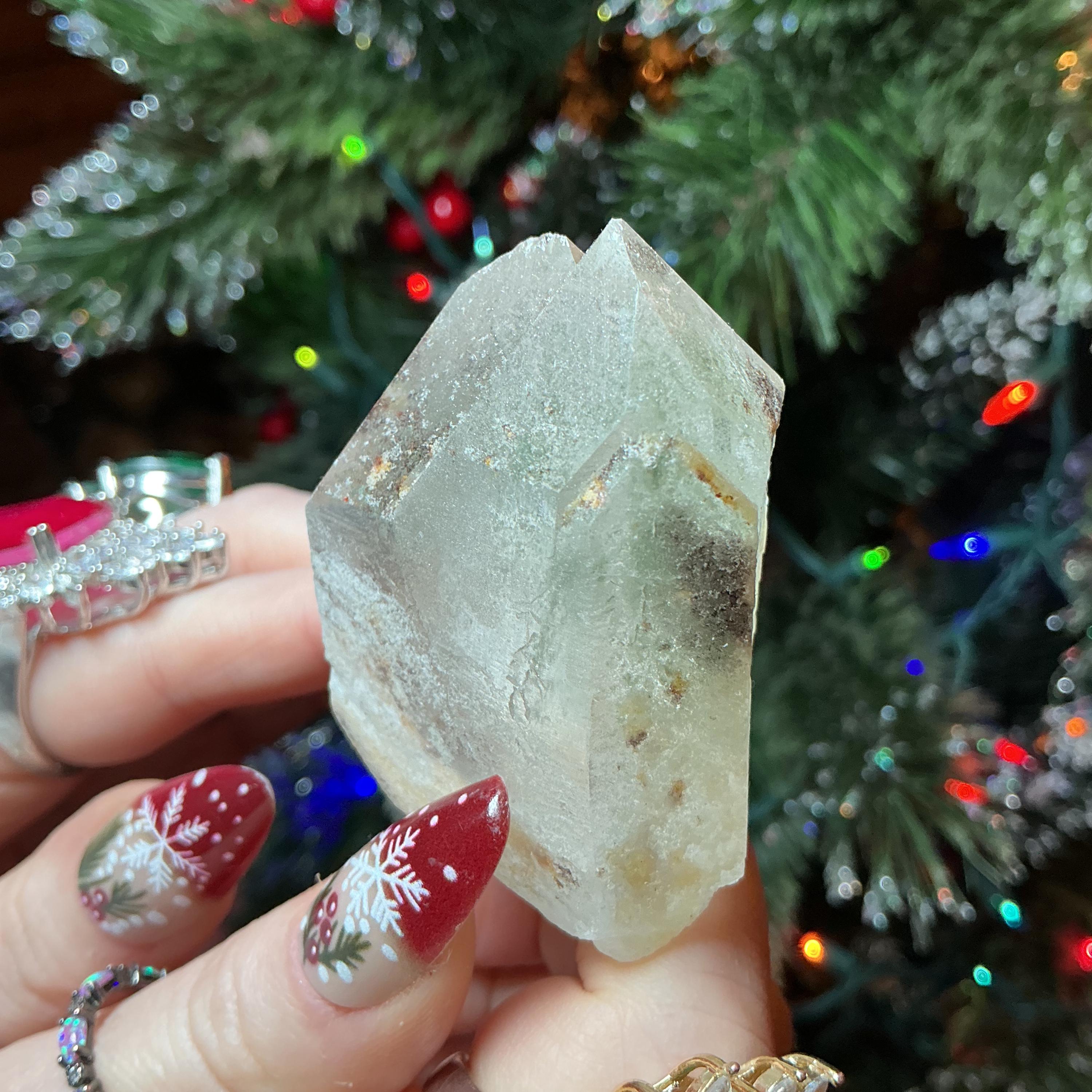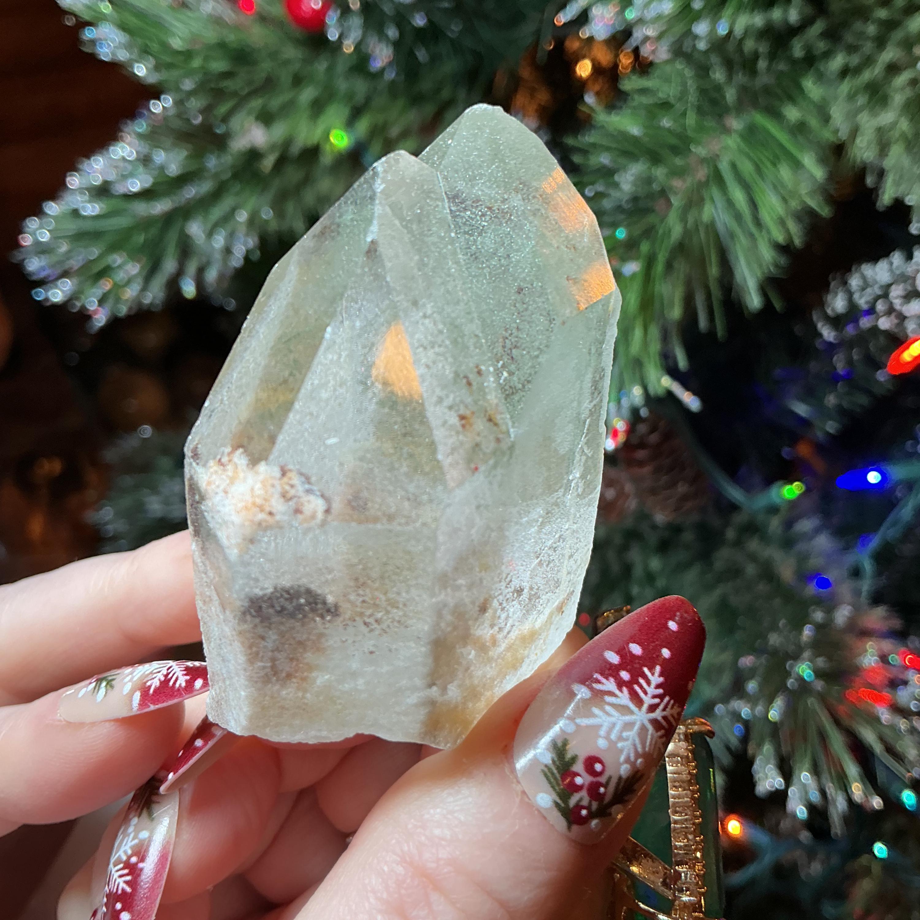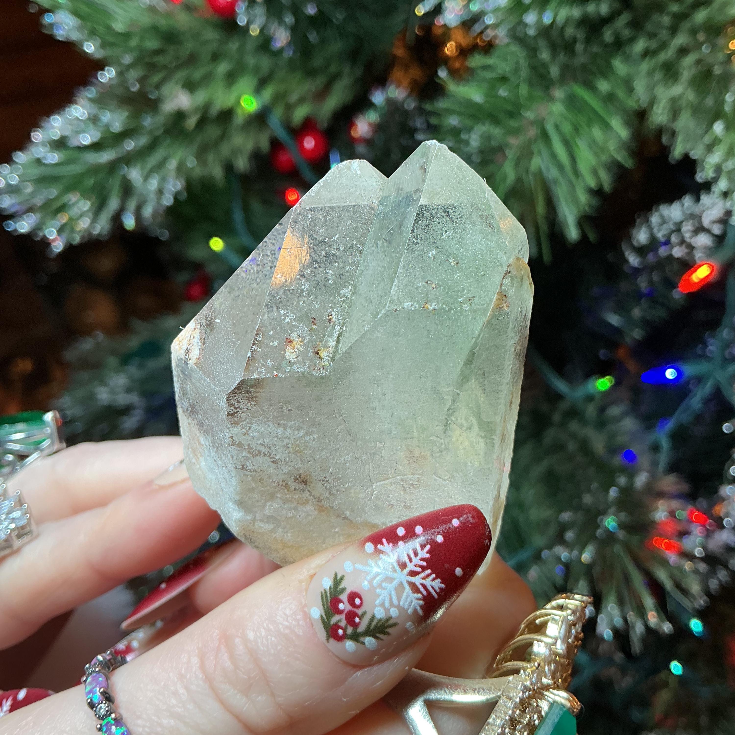 Clear Quartz Crystal Cluster ~ Natural Gem Cut Points ~ 2" Long ~ Big 3.5 oz. ~ Green Chlorite Inclusions, Silver phantoms
