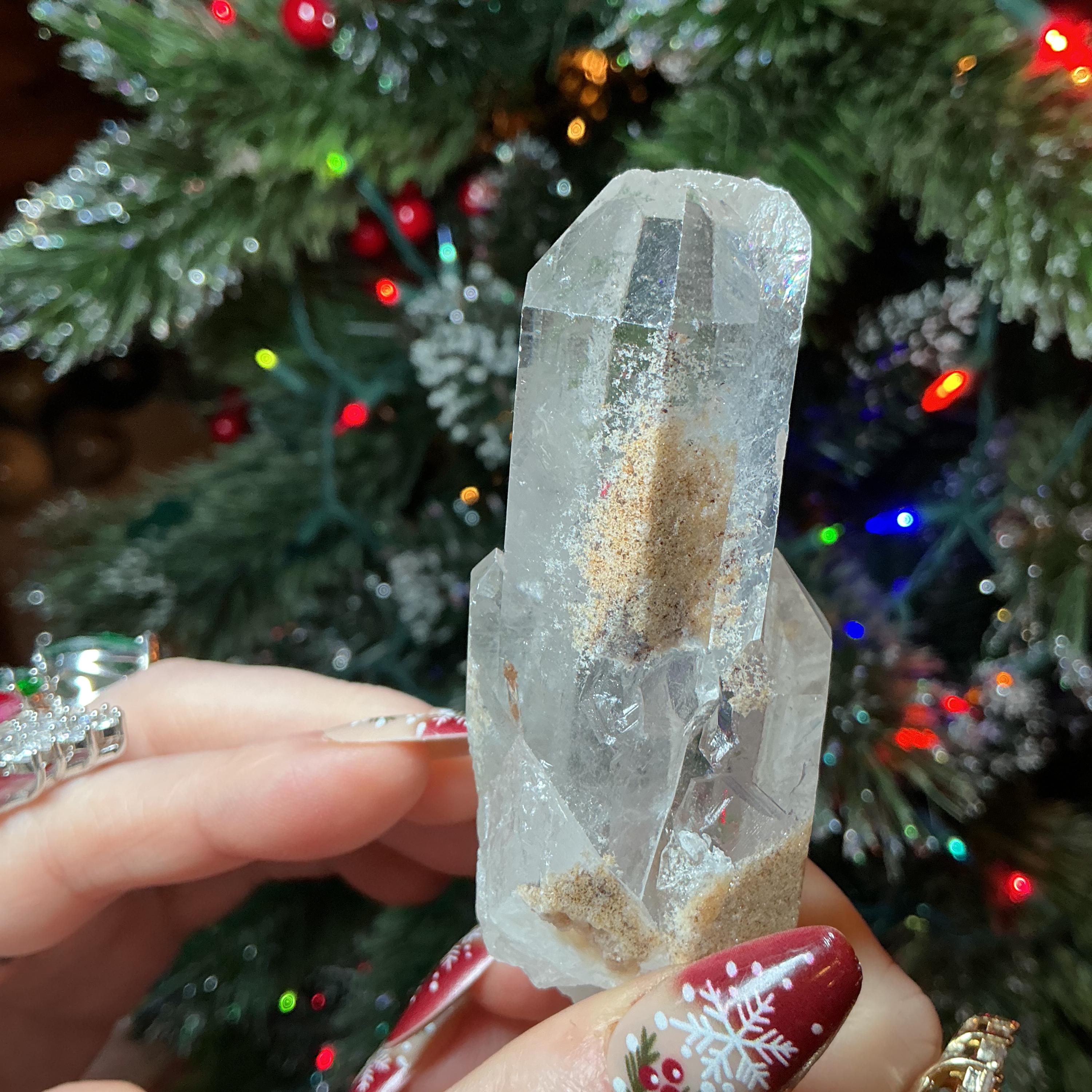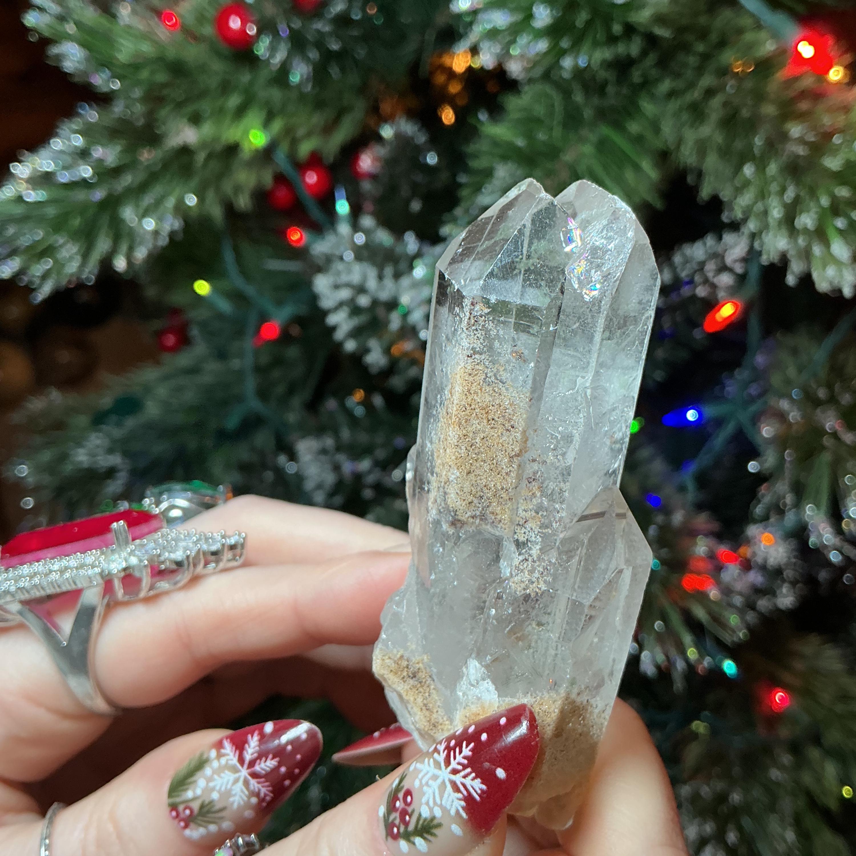 Clear Quartz Crystal Cluster ~ 3.5 oz. ~ 3" Long ~ Sand Phantoms, Twin Points