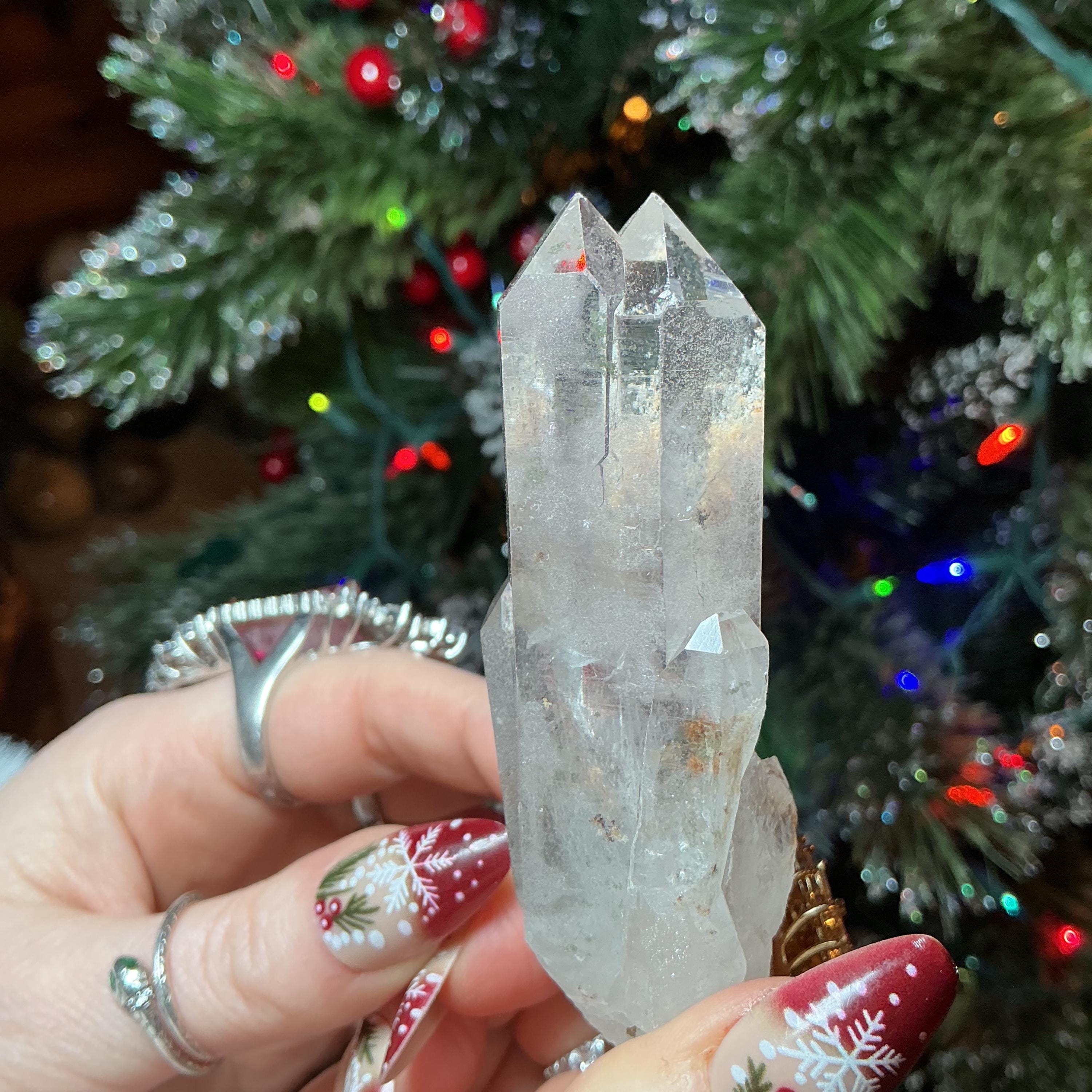 This is an incredible Clear Quartz Crystal Cluster gem cut twin points ~ measuring, 3 inches Long, 1 1 /2 inches wide and weighing in at 3.5 ounces.