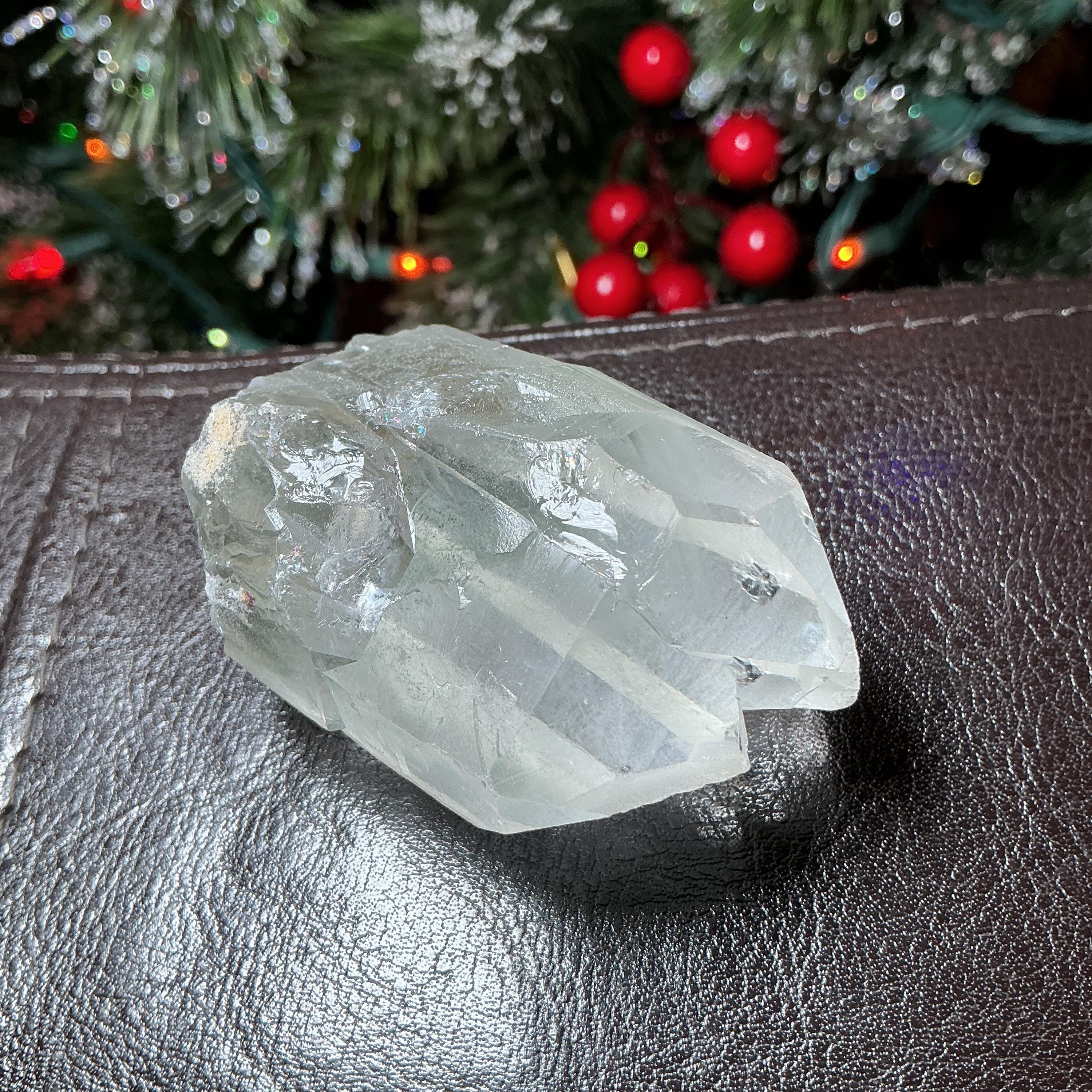 What makes this a truly one-of-a-kind Clear Quartz is the amazing incredible green chlorite inclusions locked inside this beautiful crystal.