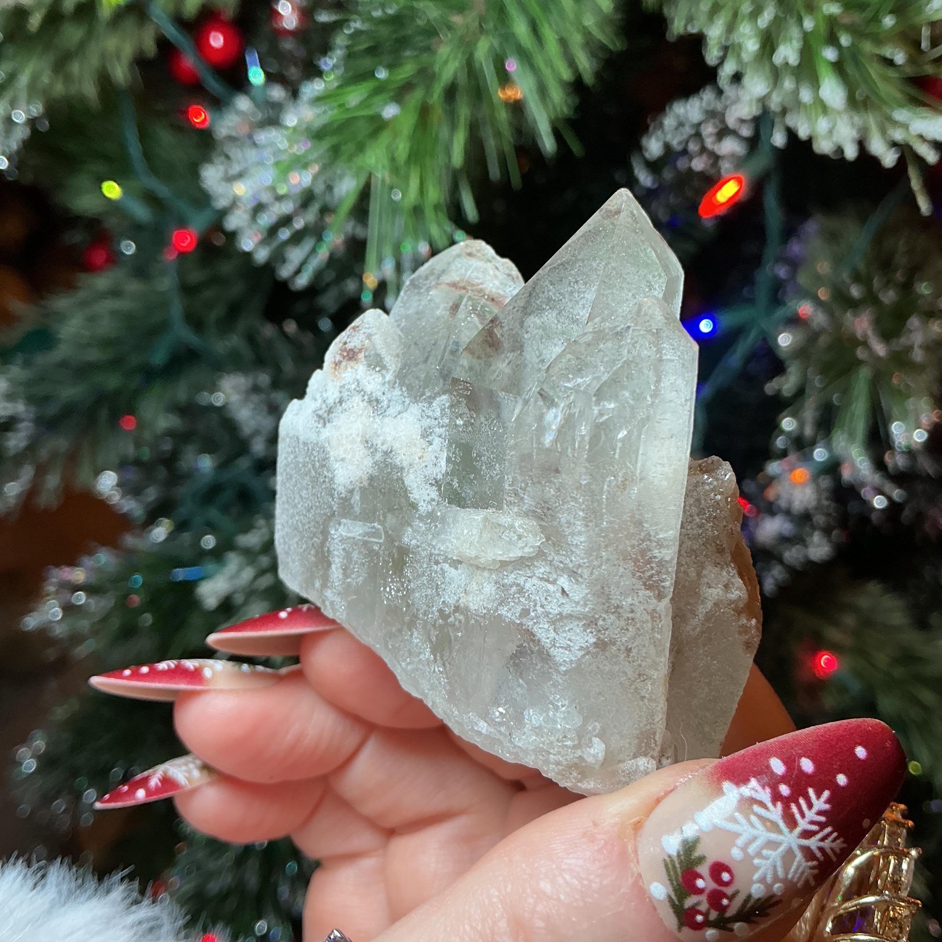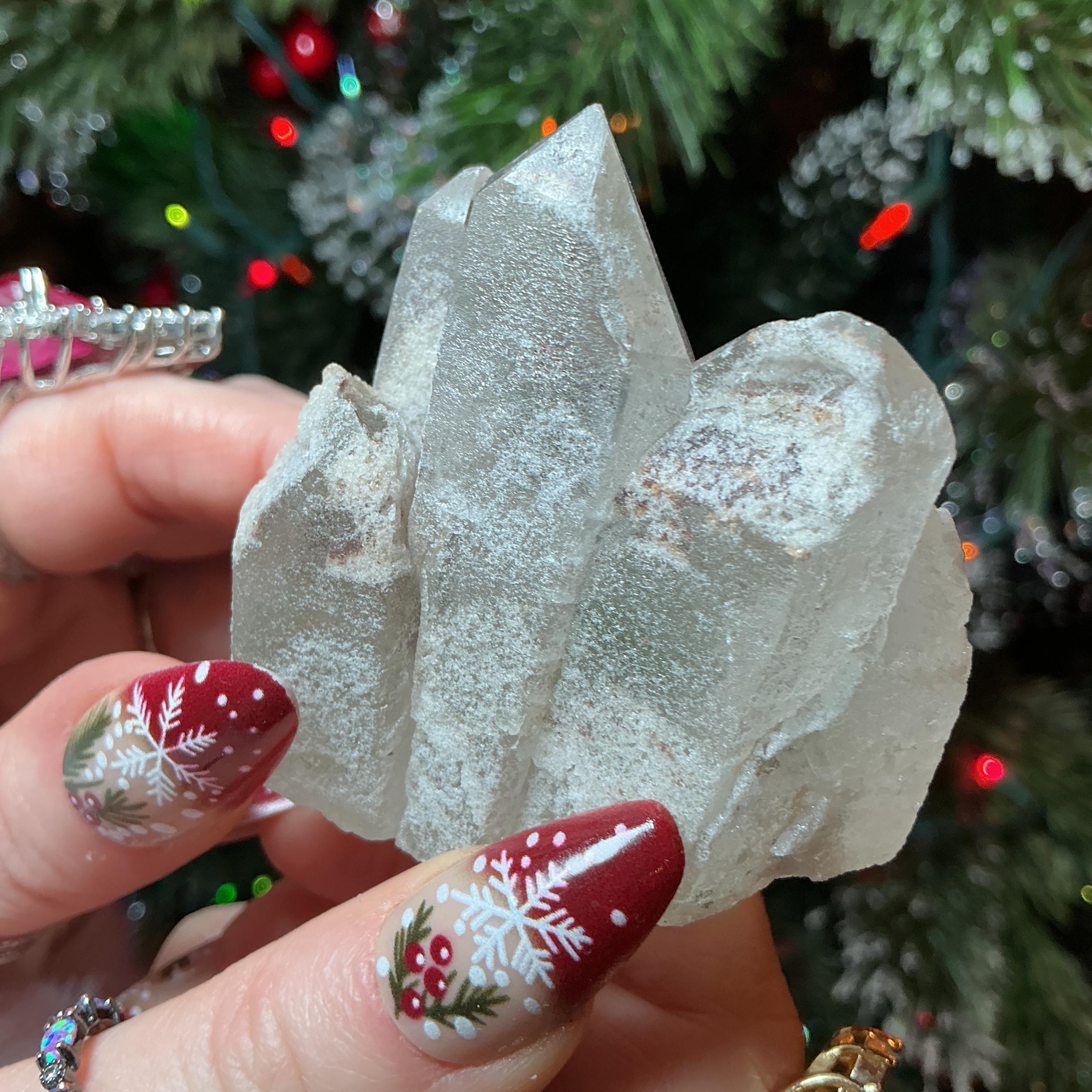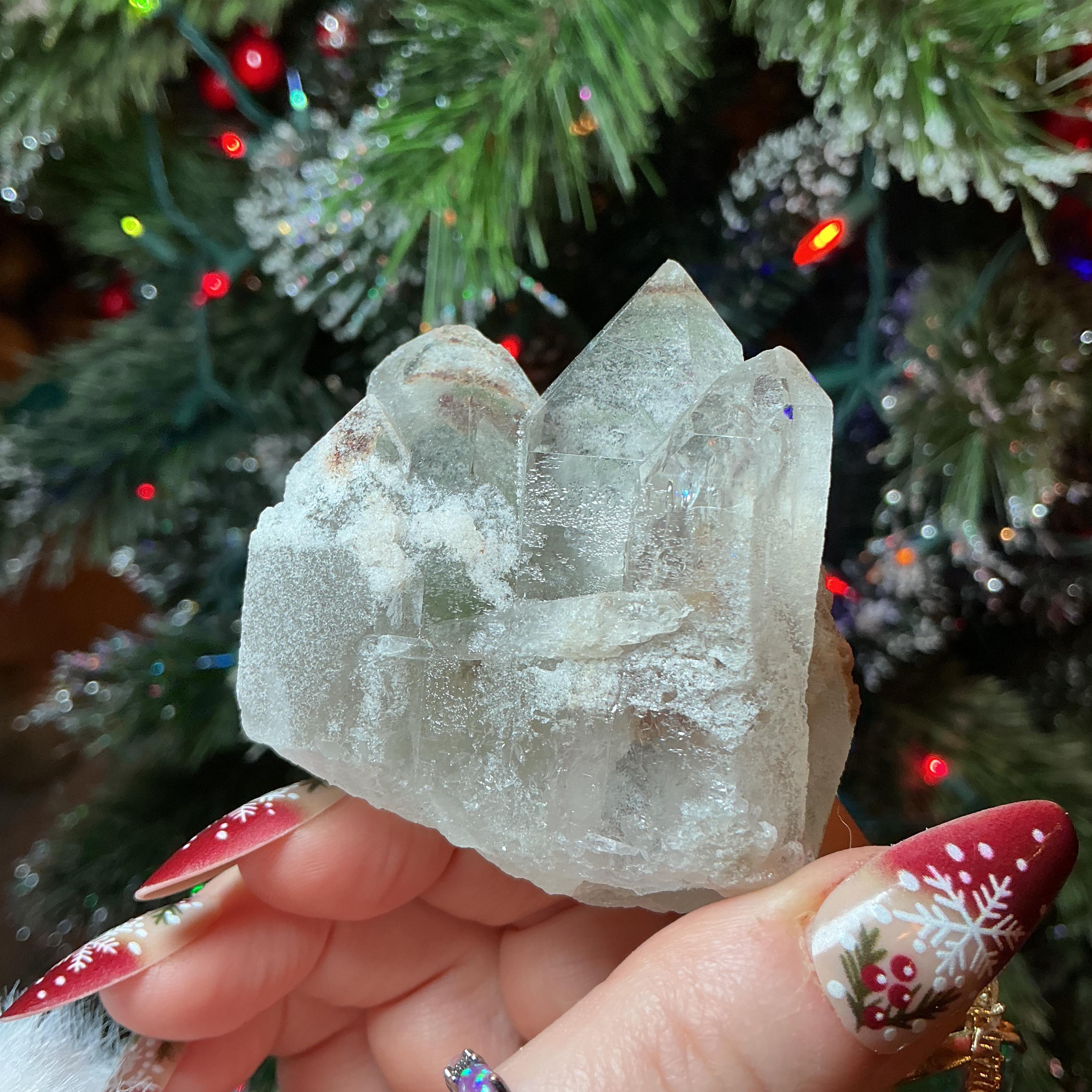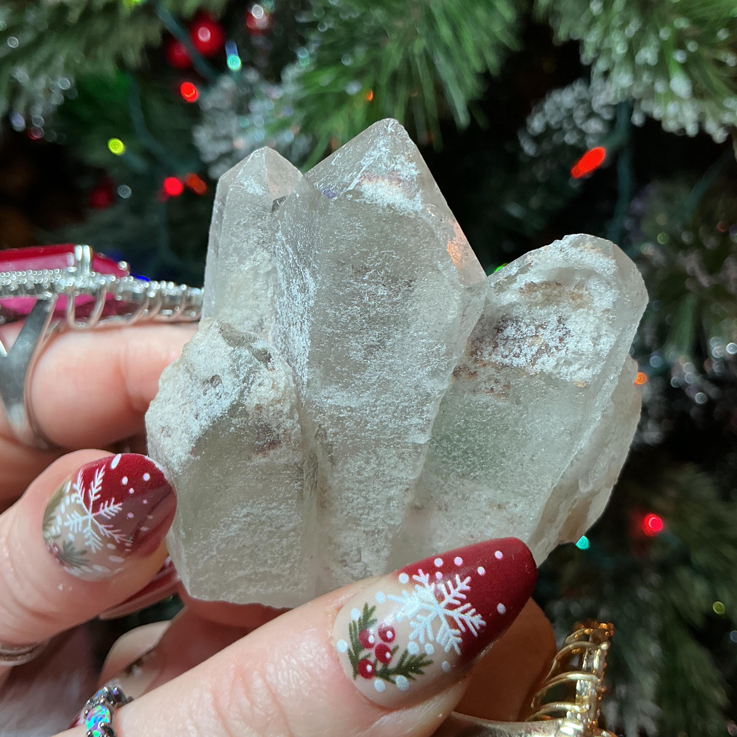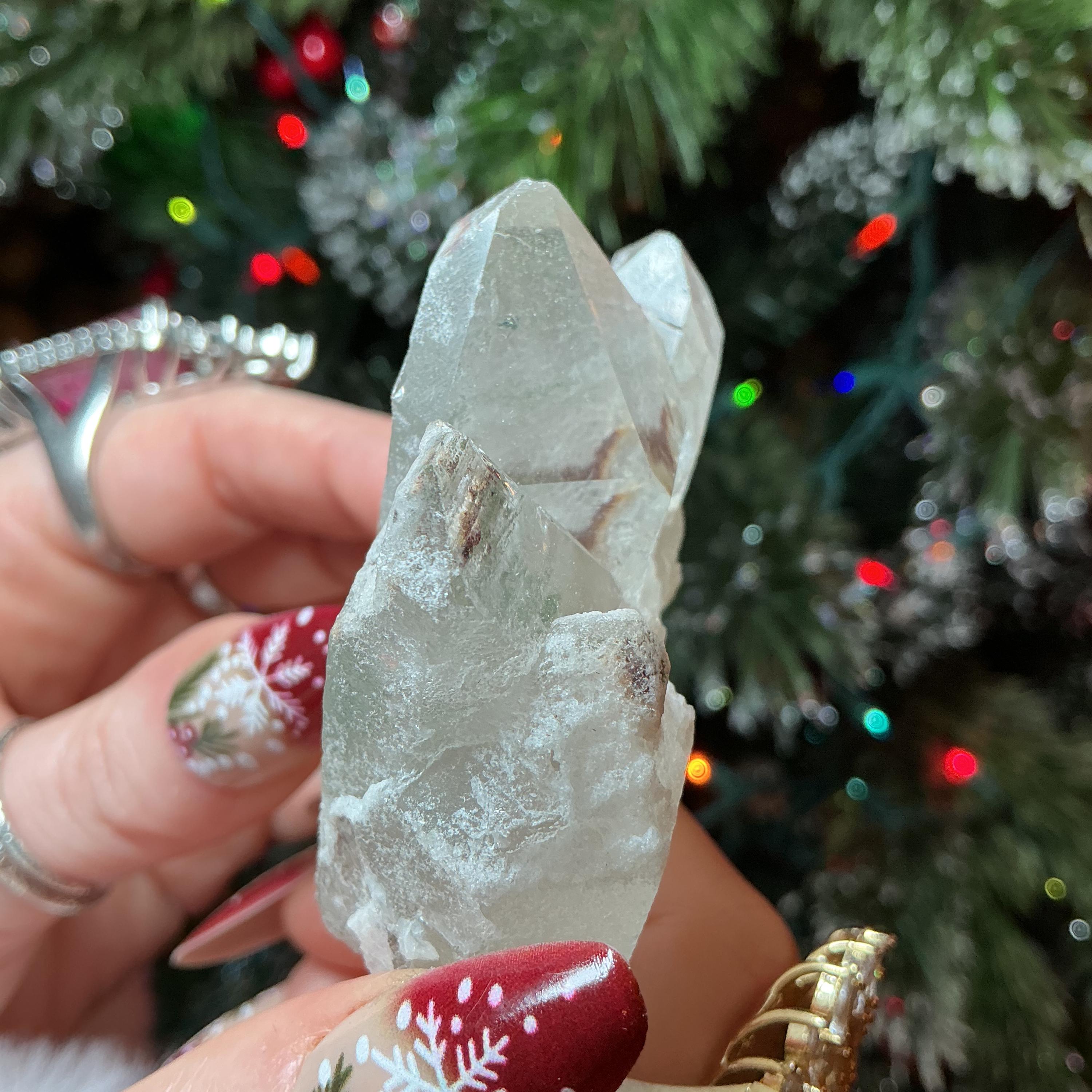Clear Quartz Crystal Cluster ~ 4 oz. ~ 2 1/2" Long ~ Green Chlorite Triple Points
