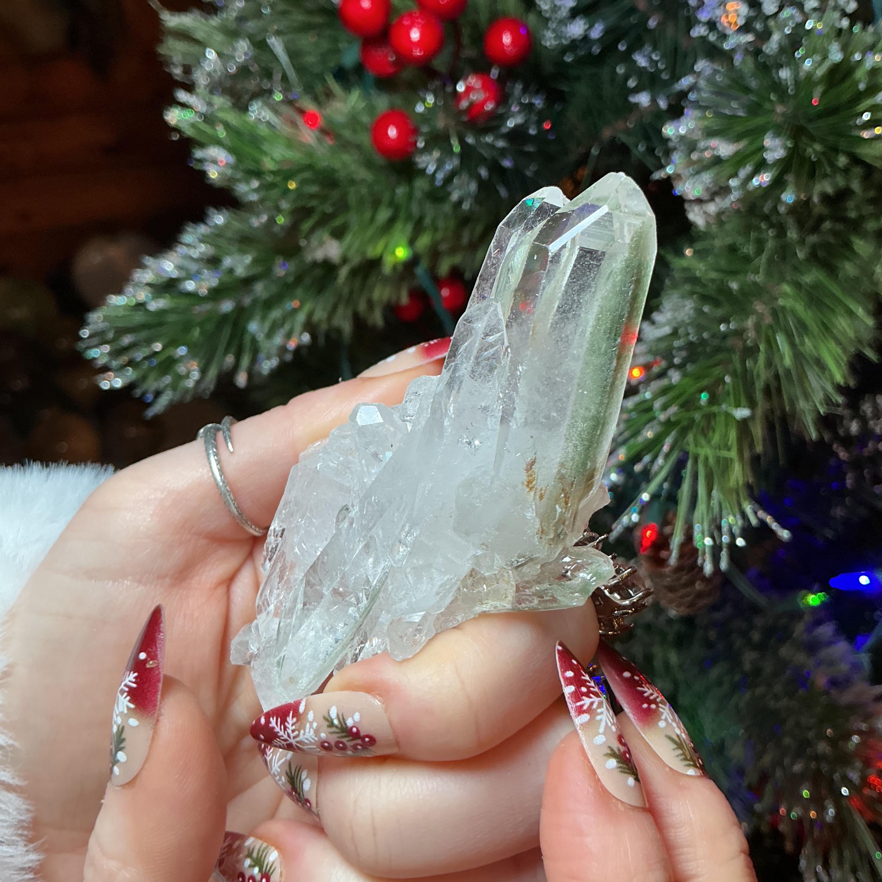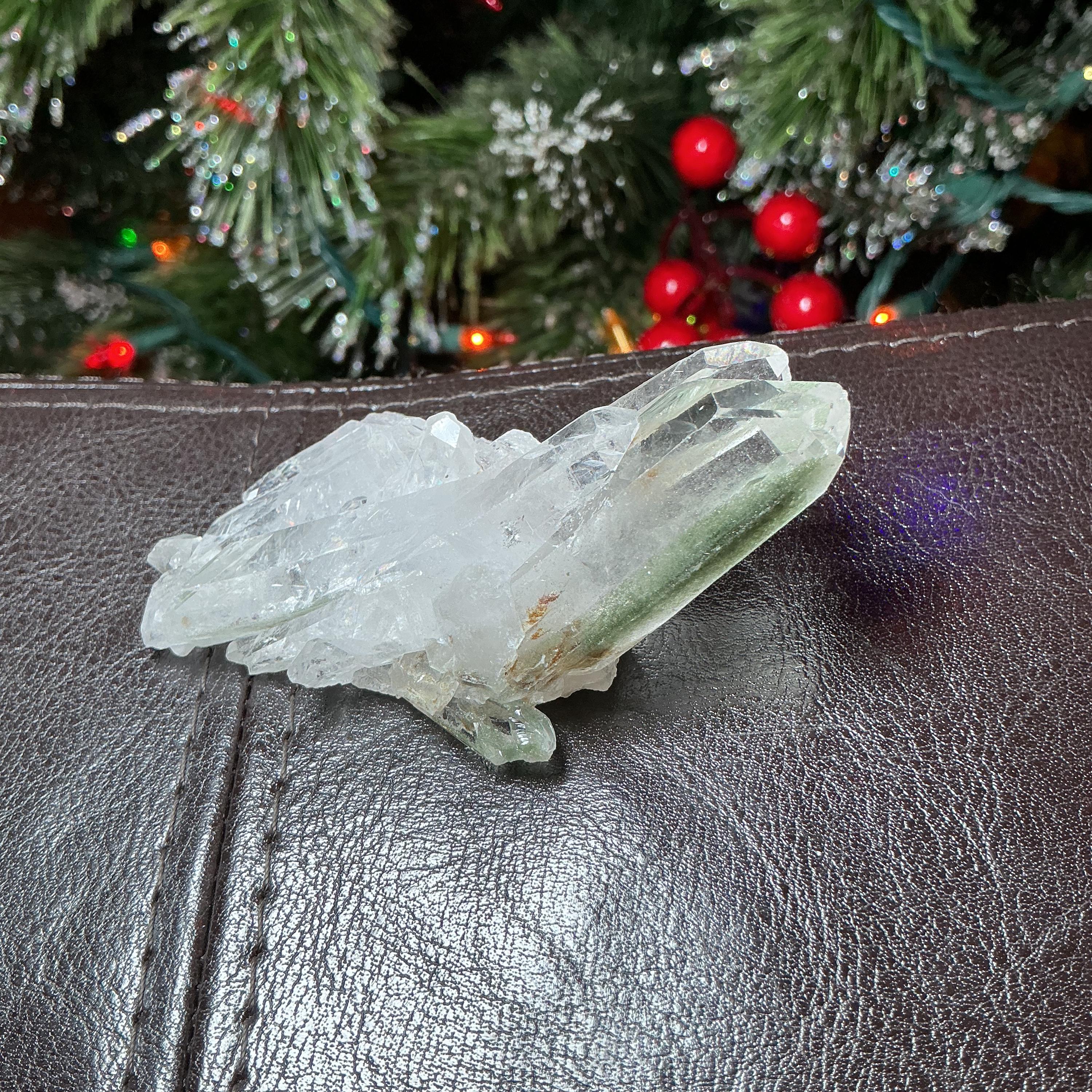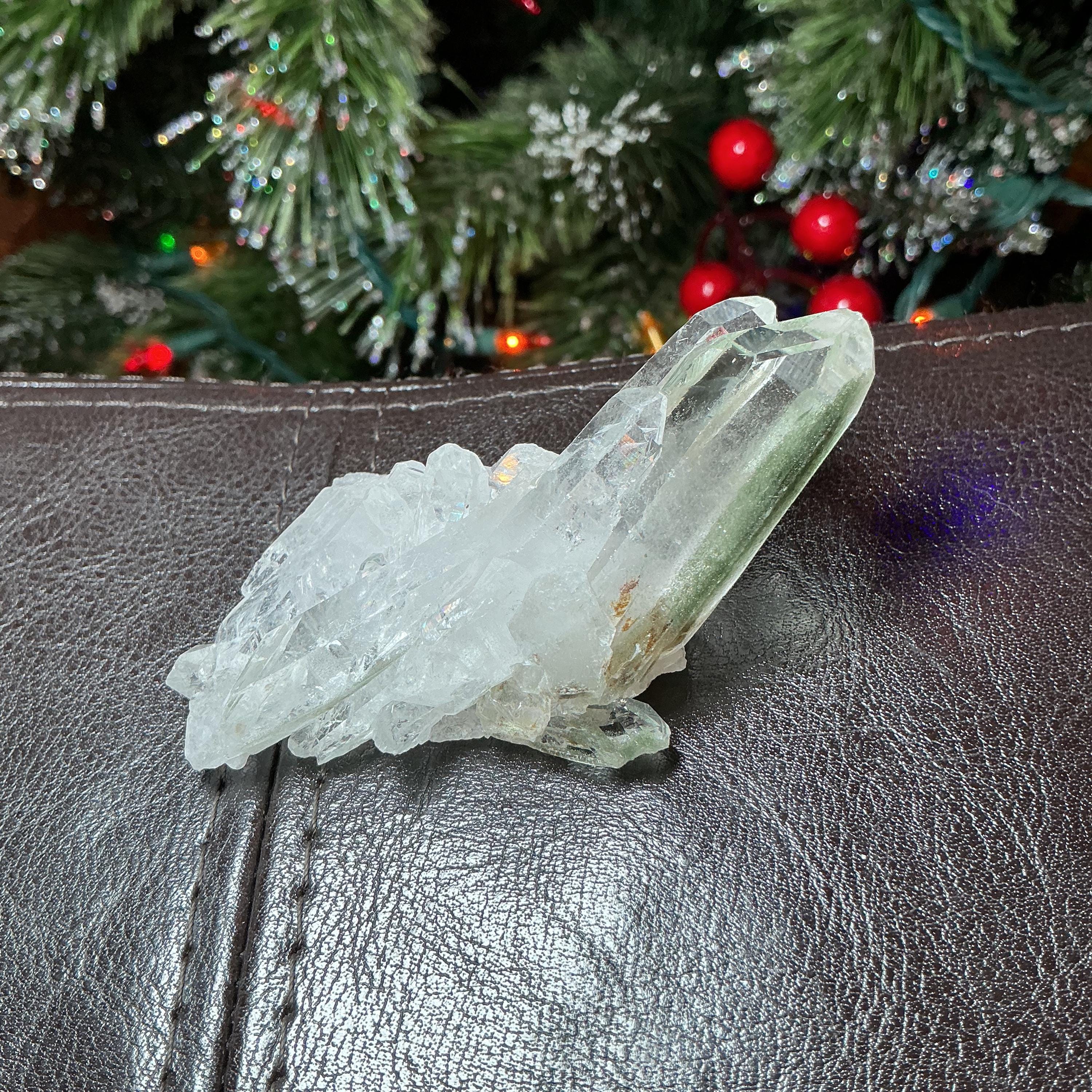 Clear Quartz Crystal Big 2.5 oz. Cluster ~ 3" Long ~ Green Chlorite Inclusions