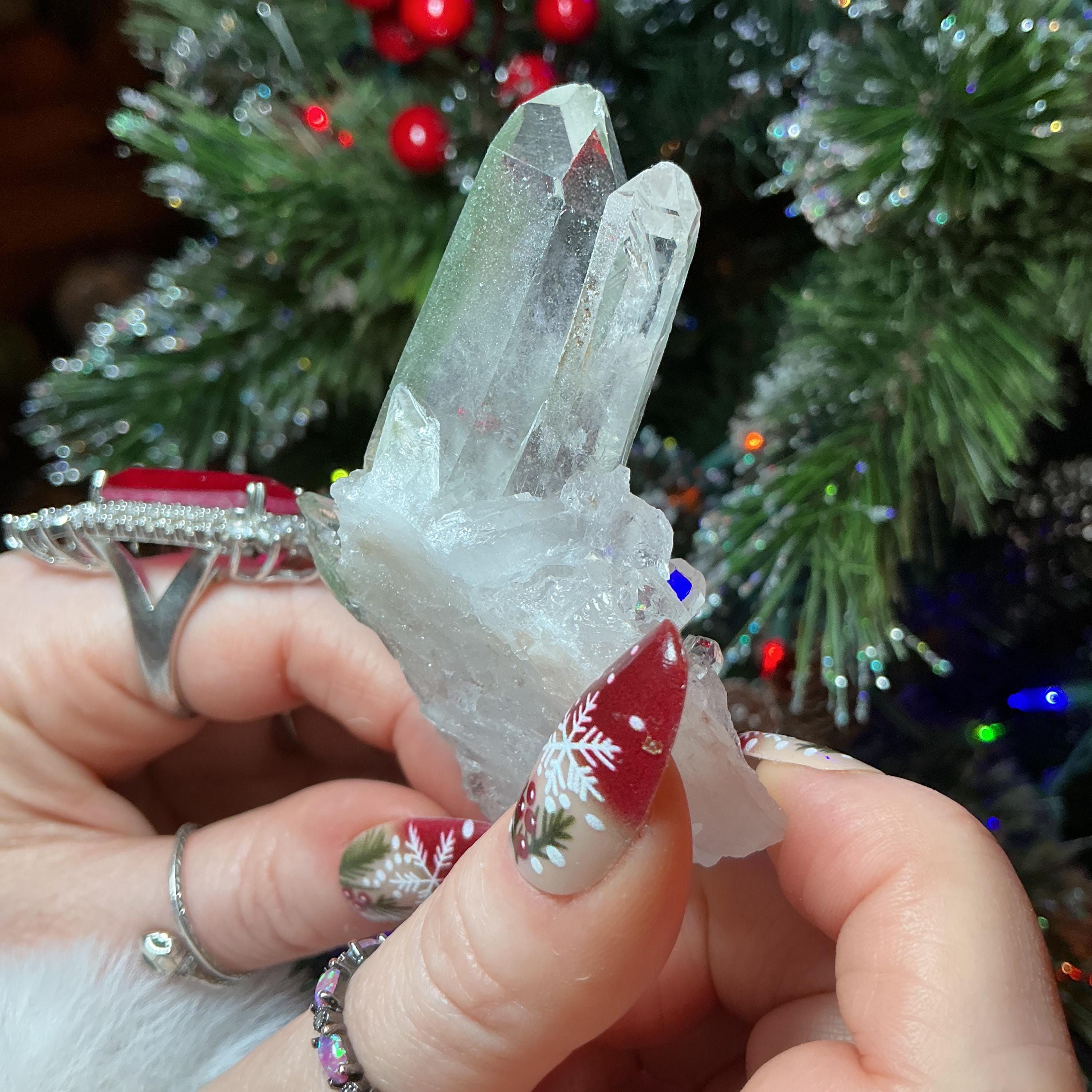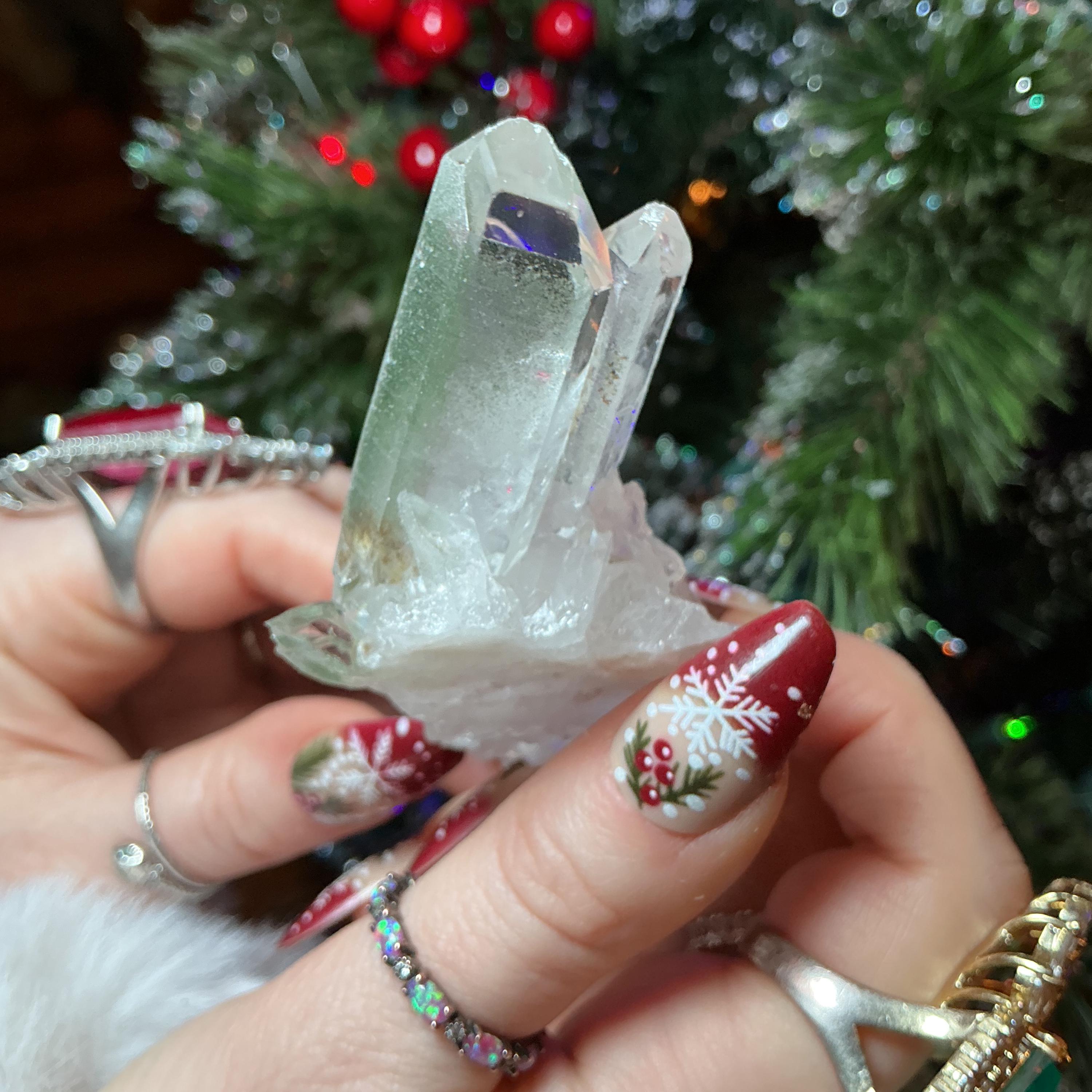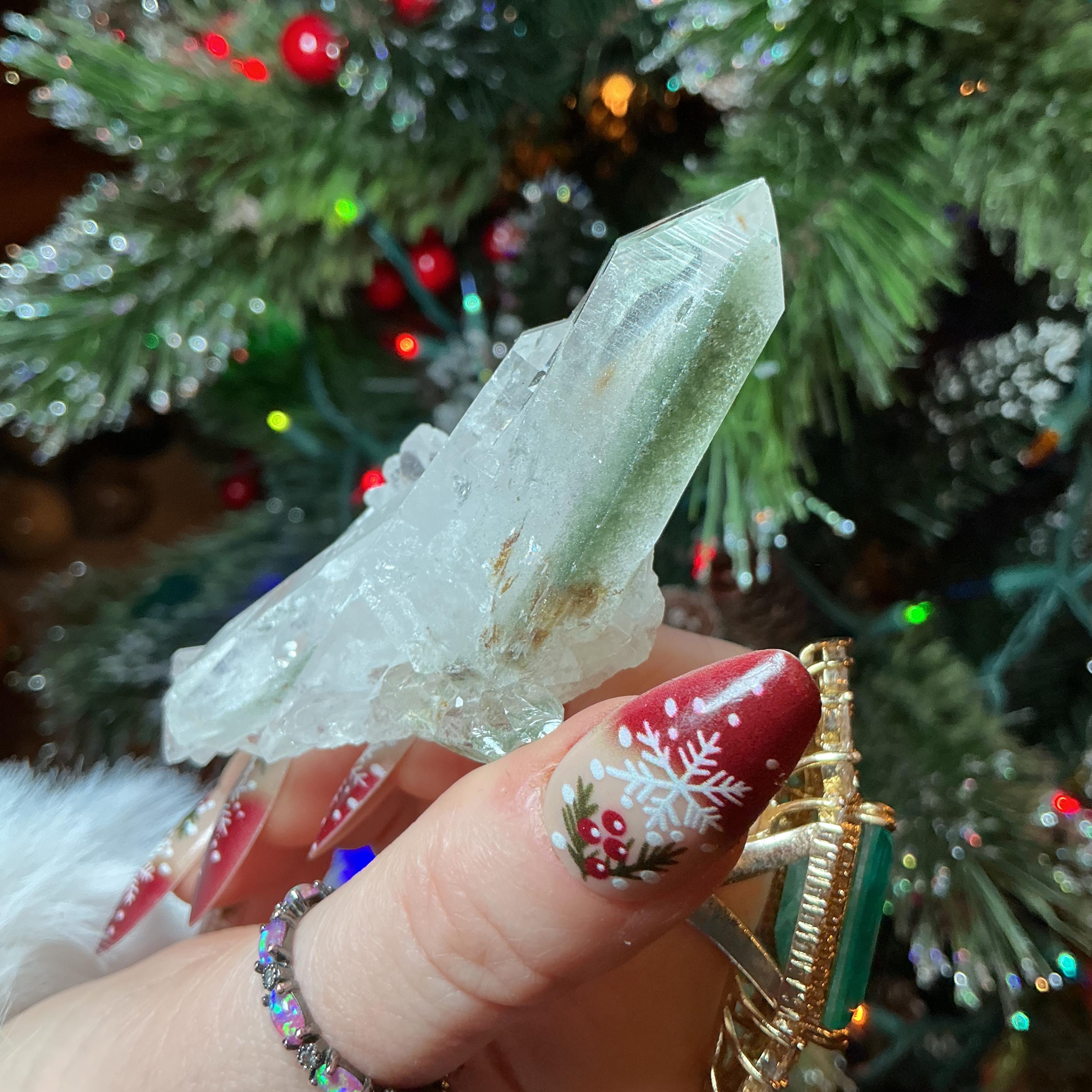 Clear Quartz Crystal Big 2.5 oz. Cluster ~ 3" Long ~ Green Chlorite Inclusions