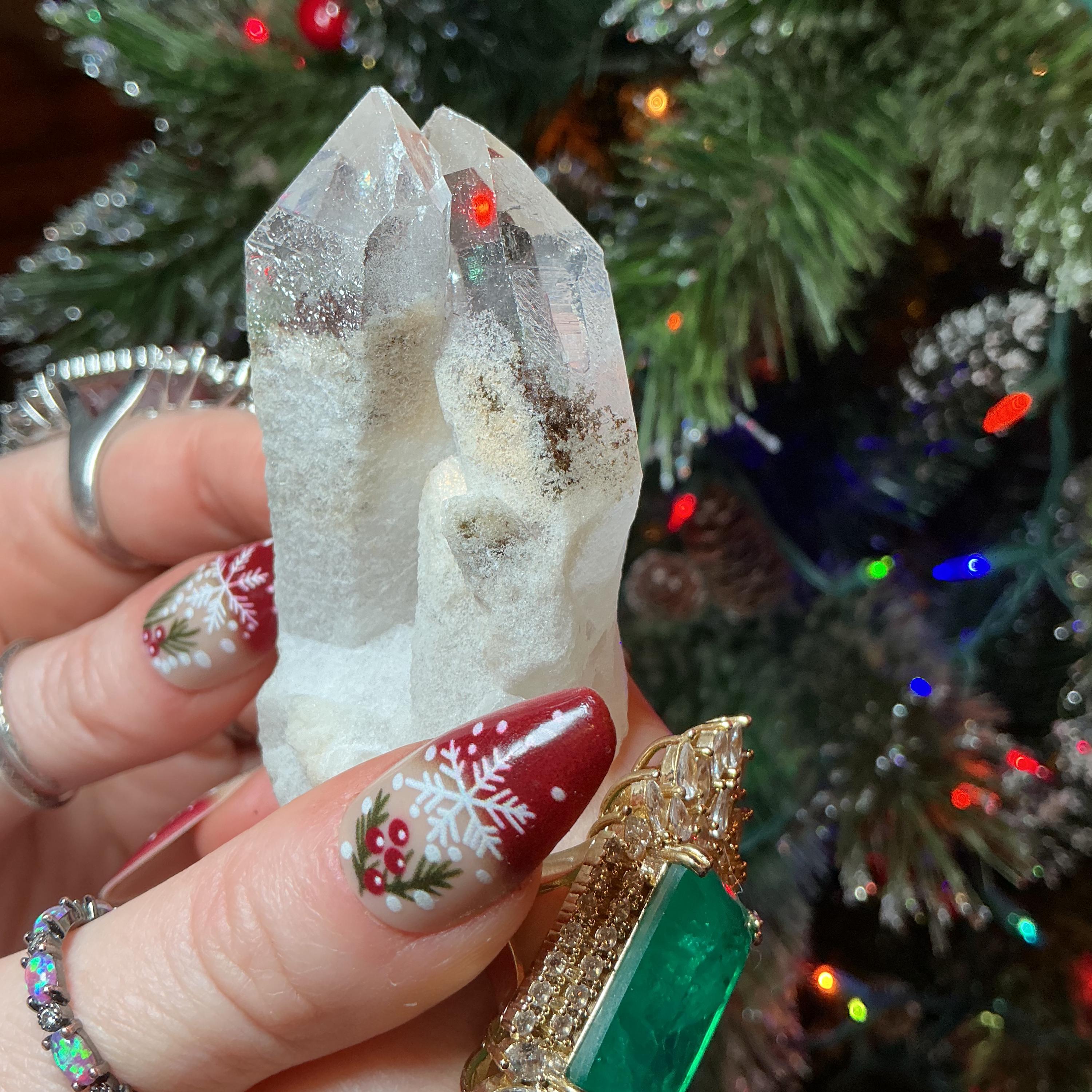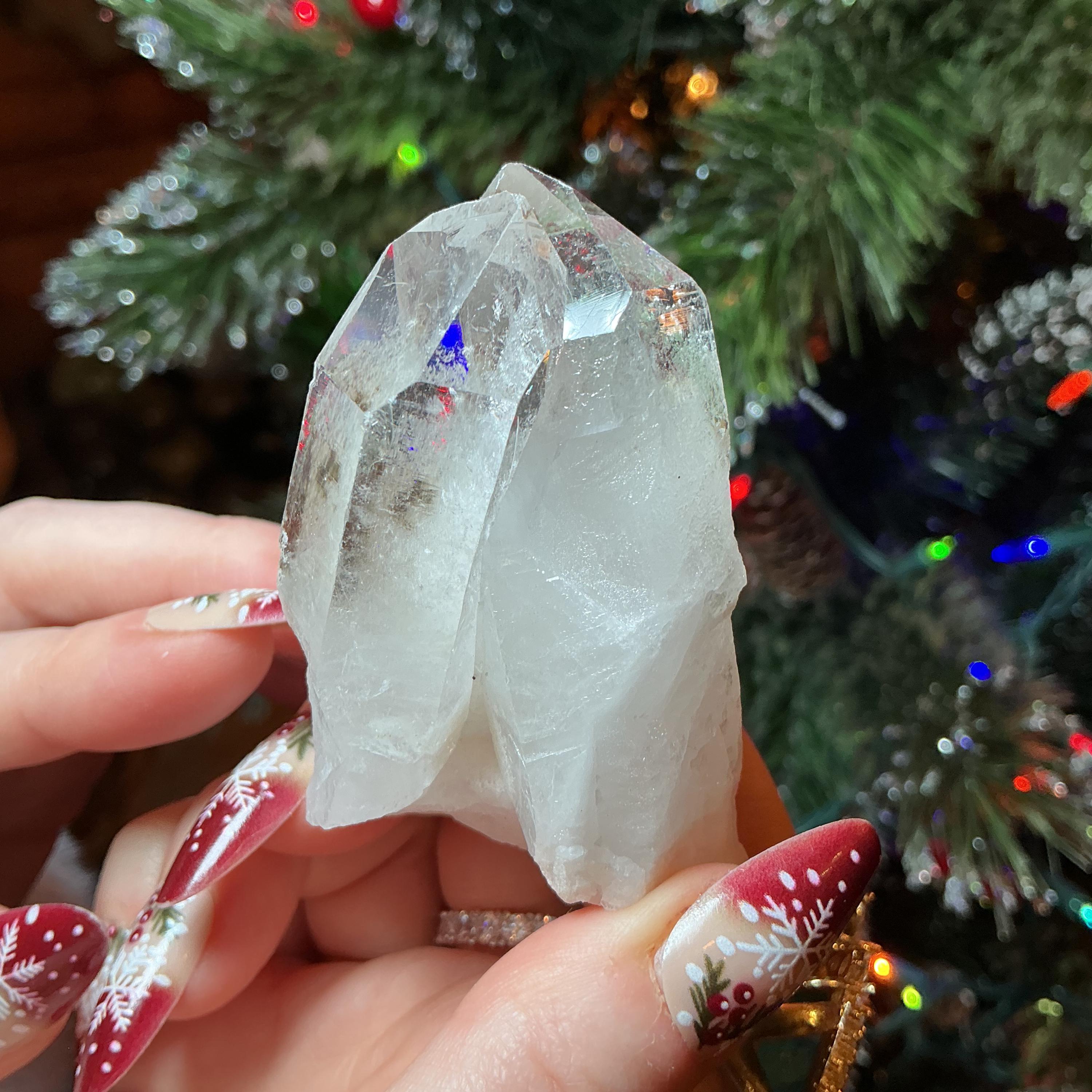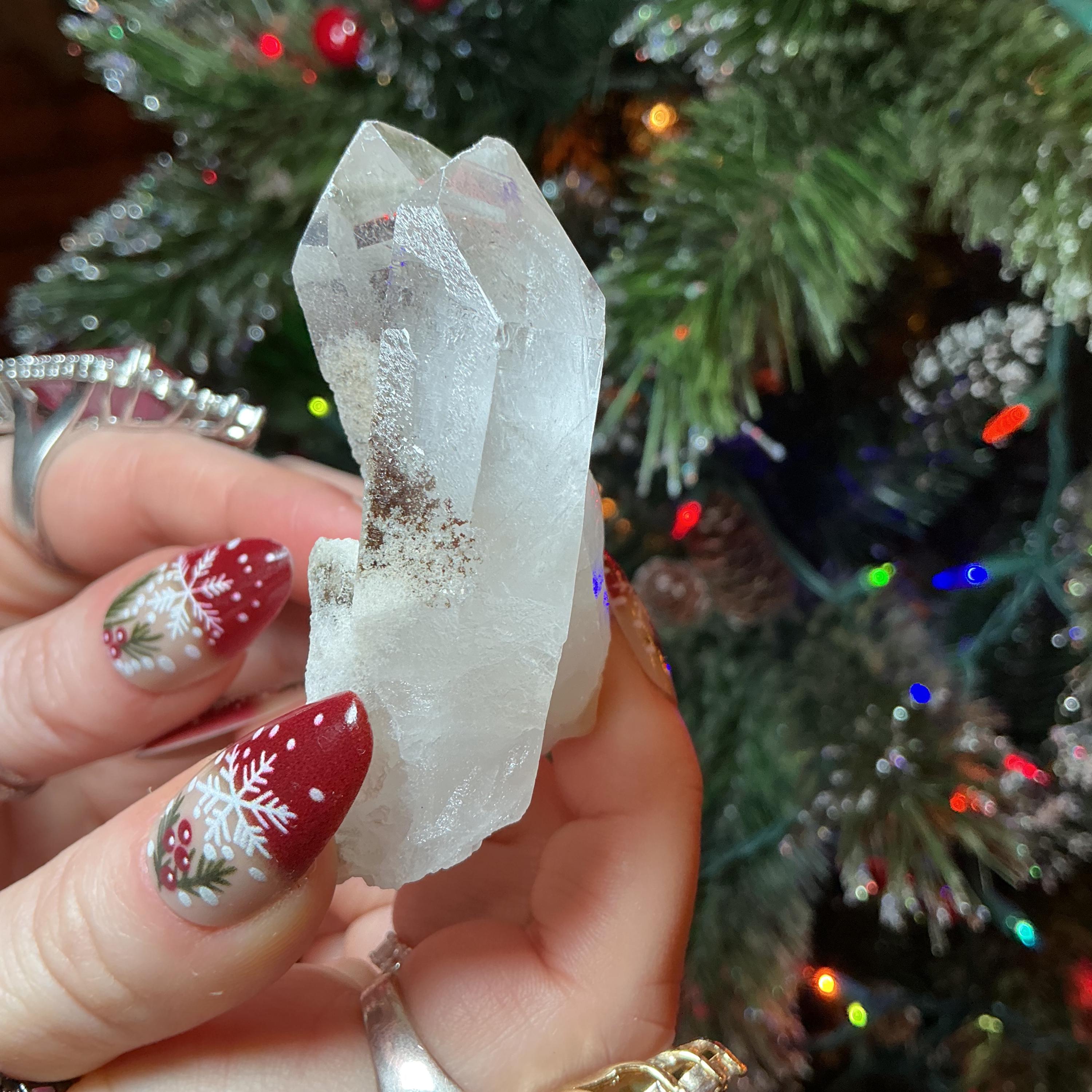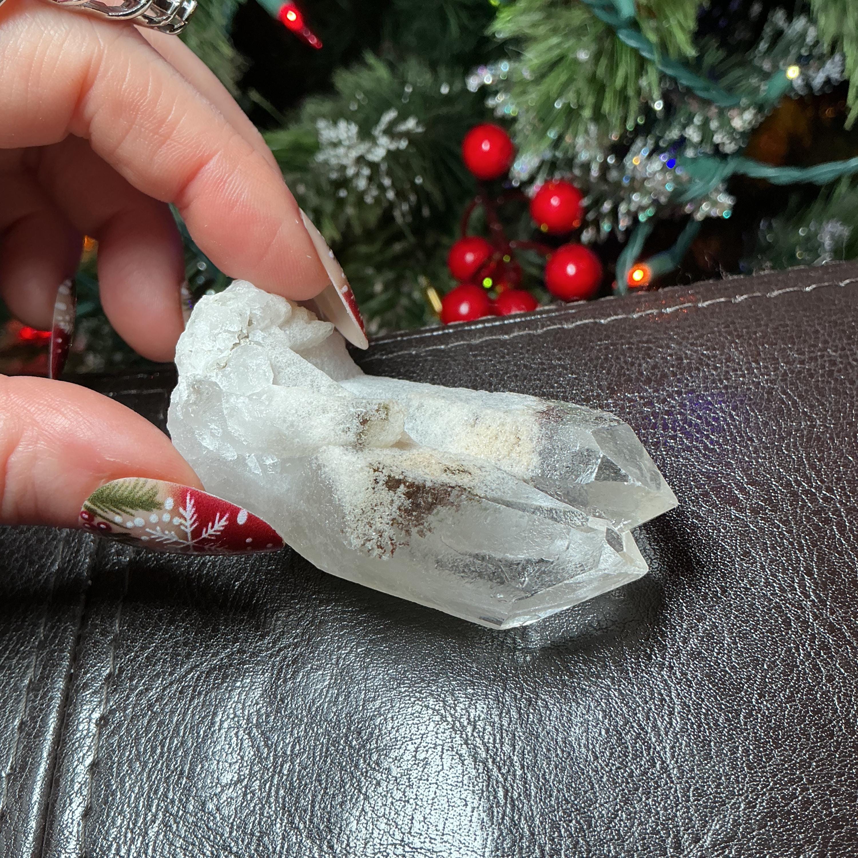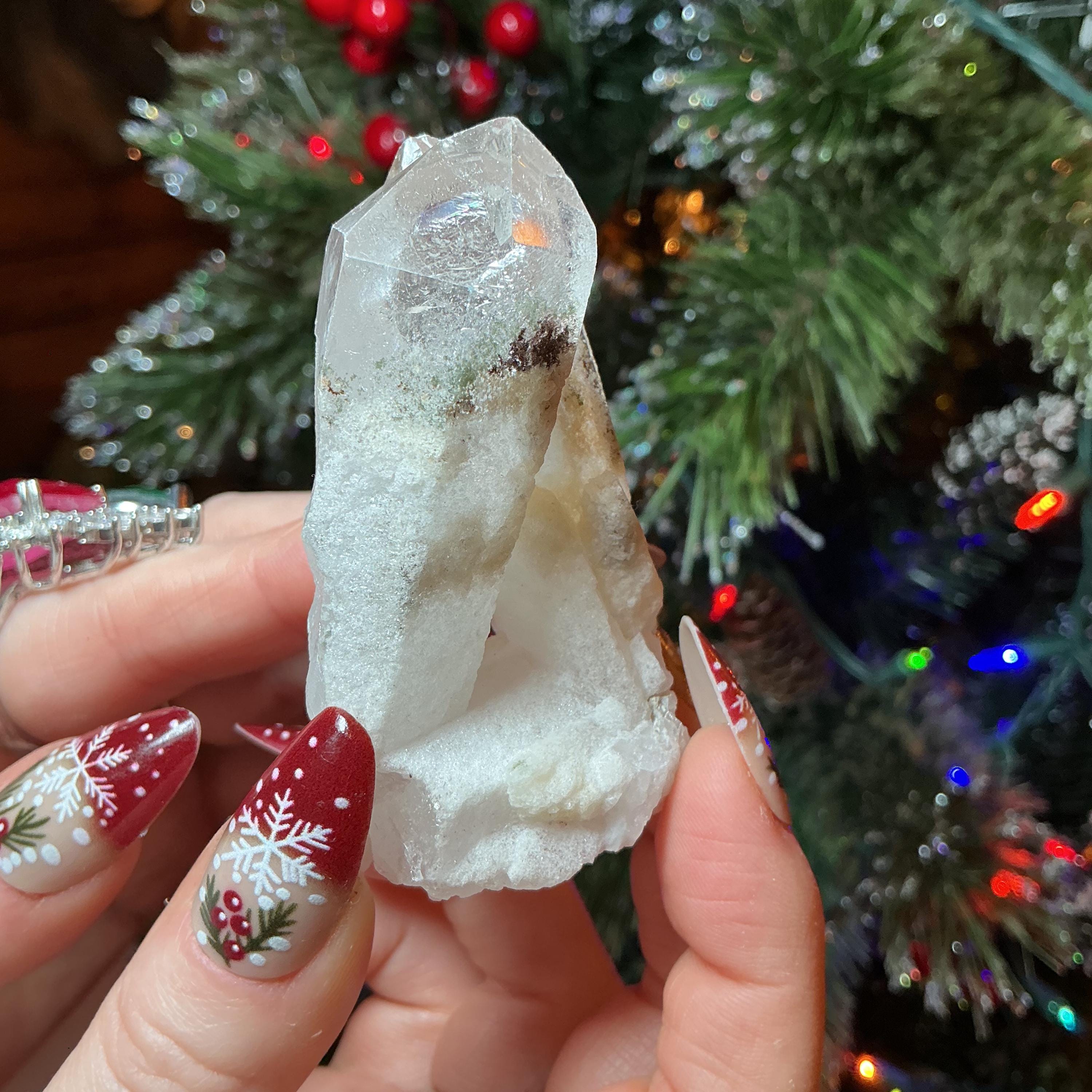 Clear Quartz Crystal Big 3 oz. Cluster ~ 3" Long ~ Green Chlorite Inclusions