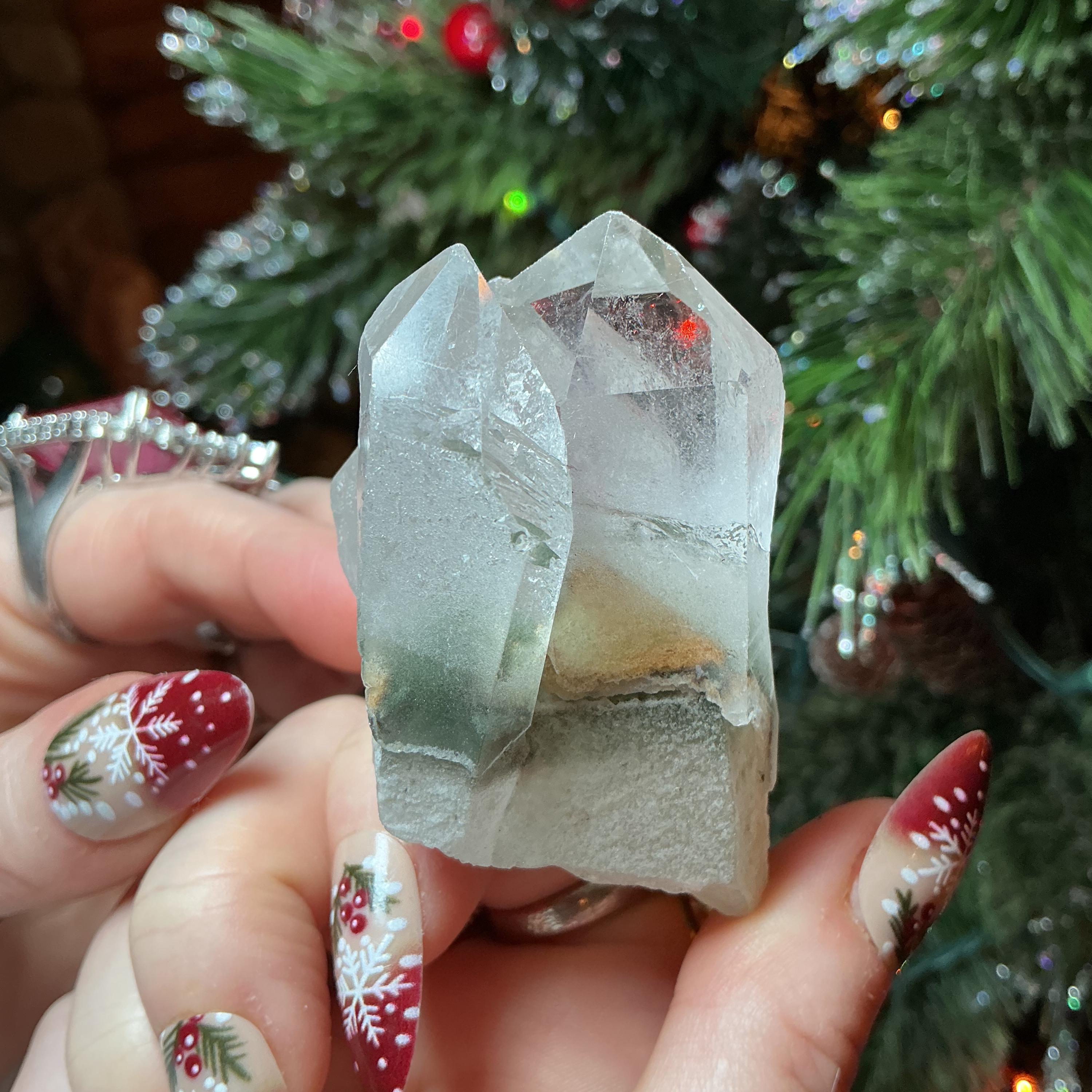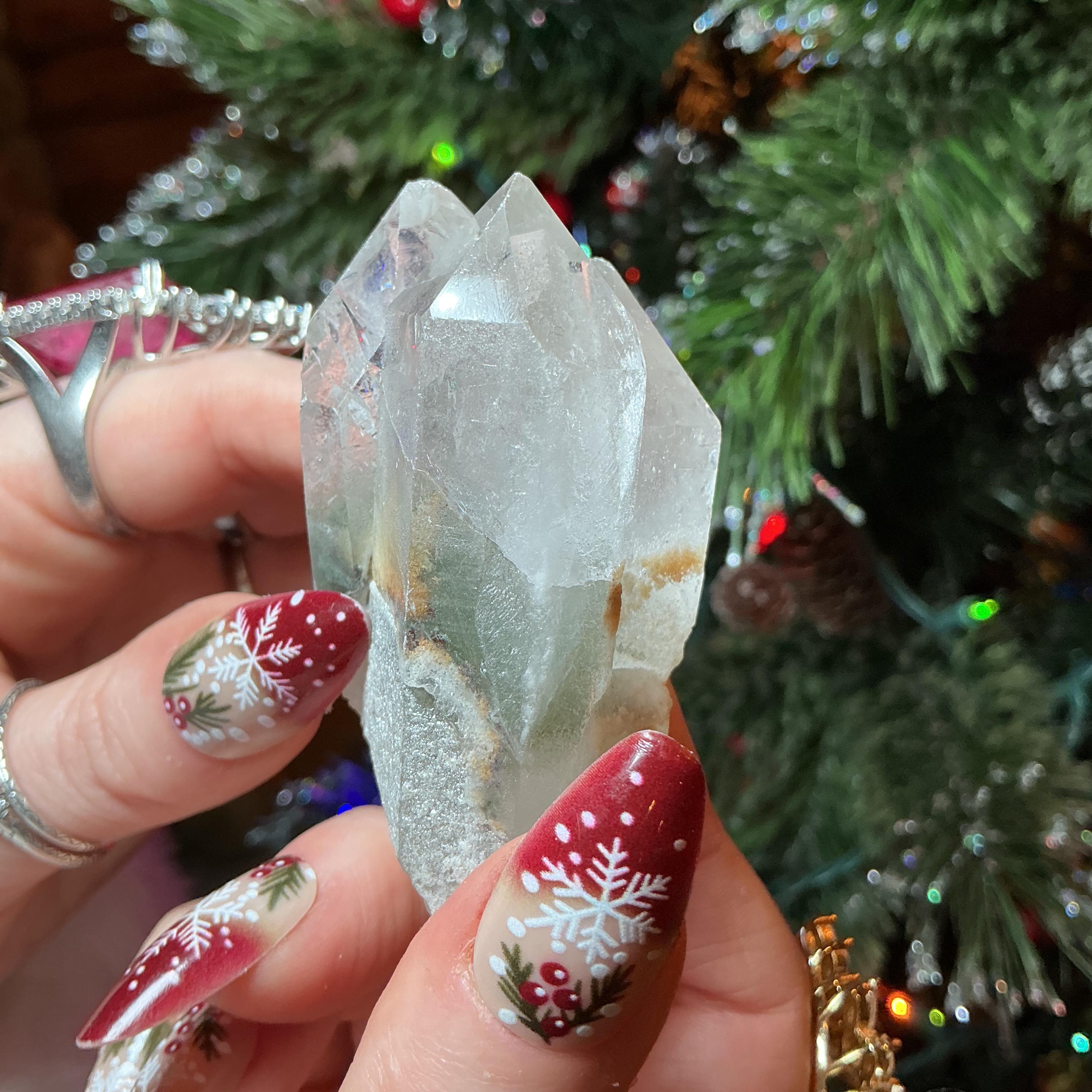 Clear Quartz Crystal Big 3.5 oz. Cluster ~ 2 1/2" Long ~ Green Chlorite Inclusions