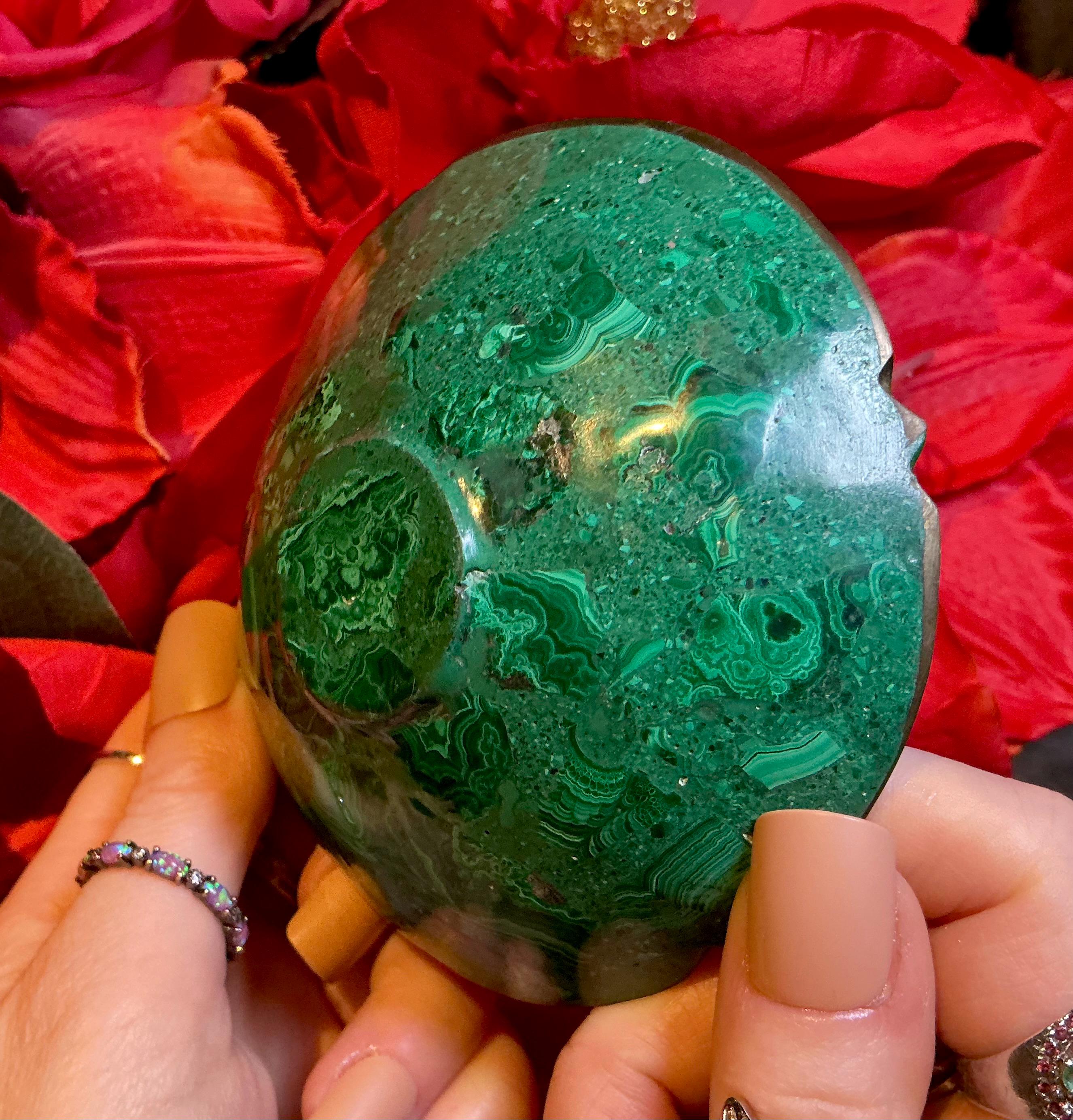 This piece of vintage Malachite is so beautiful, so thick and its natural patina is not like the modern Malachite ~ its colors are so rich, and the detail of the stone is hand carved, making it a one-of-a-kind creation.