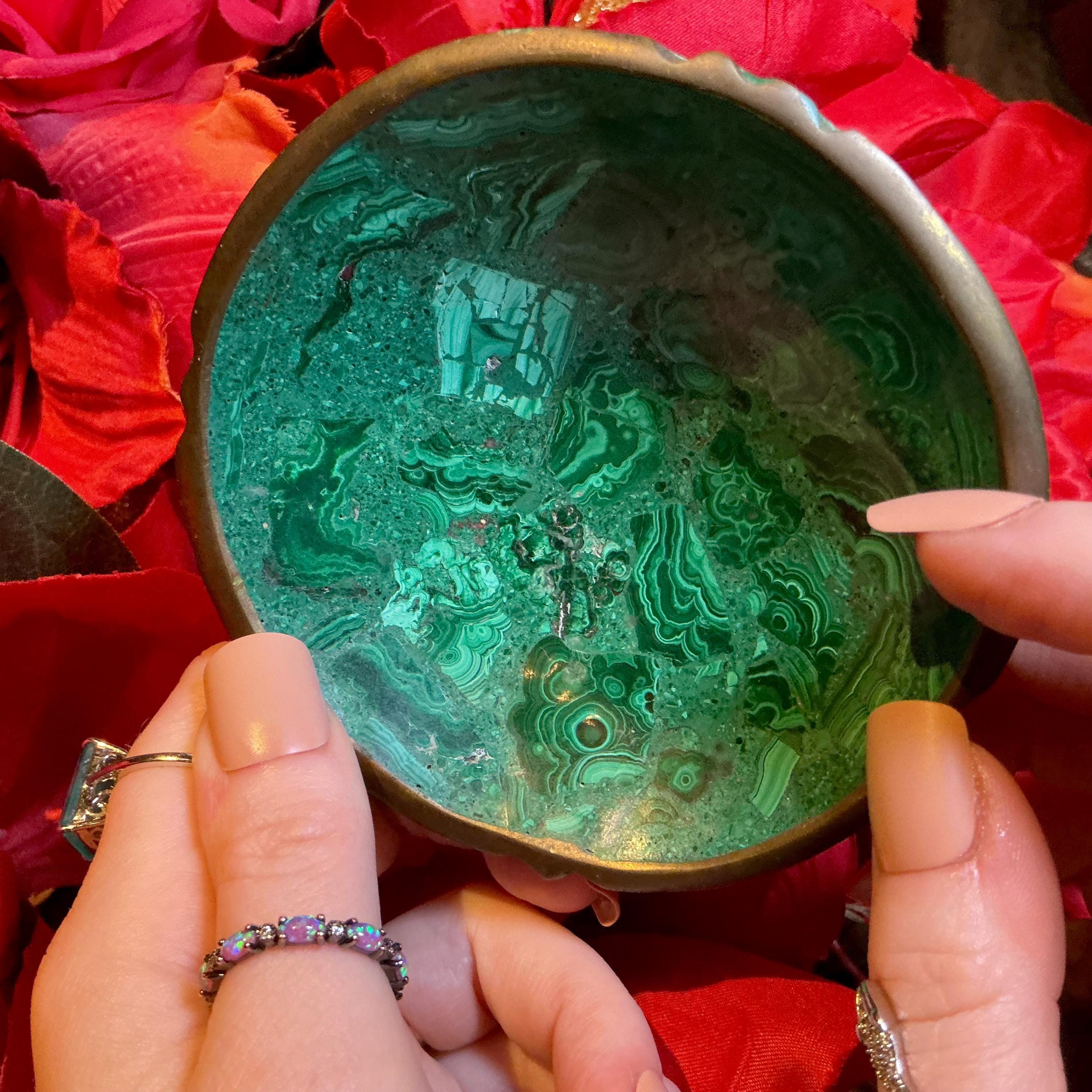 You will love this one-of-a-kind Malachite bowl; it is a beauty to behold.