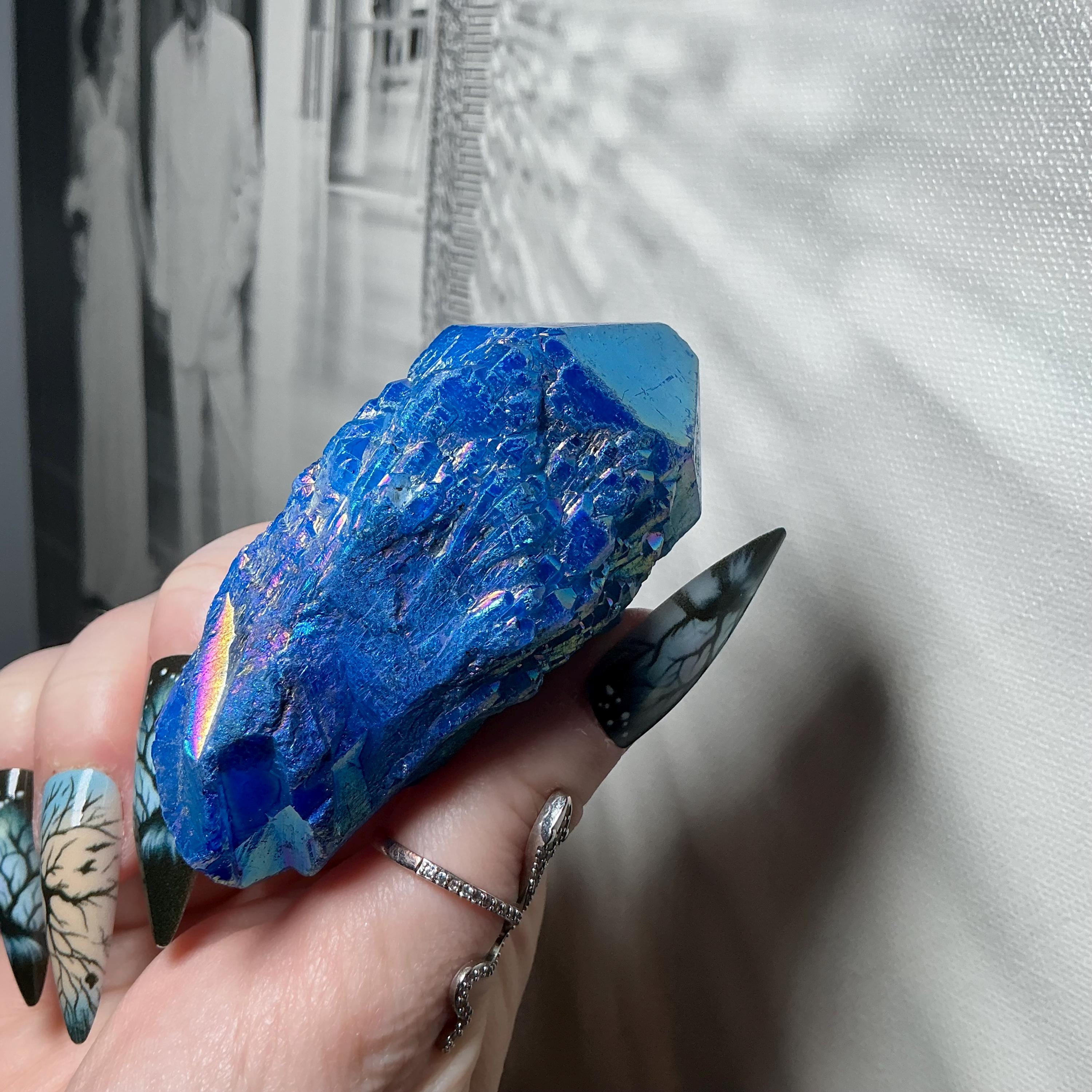 Iridescent Blue Aura Quartz Elestial Crystal ~ Large 3 1/2 oz. ~ 3" Long ~ Rainbow Iridescent Electric Points