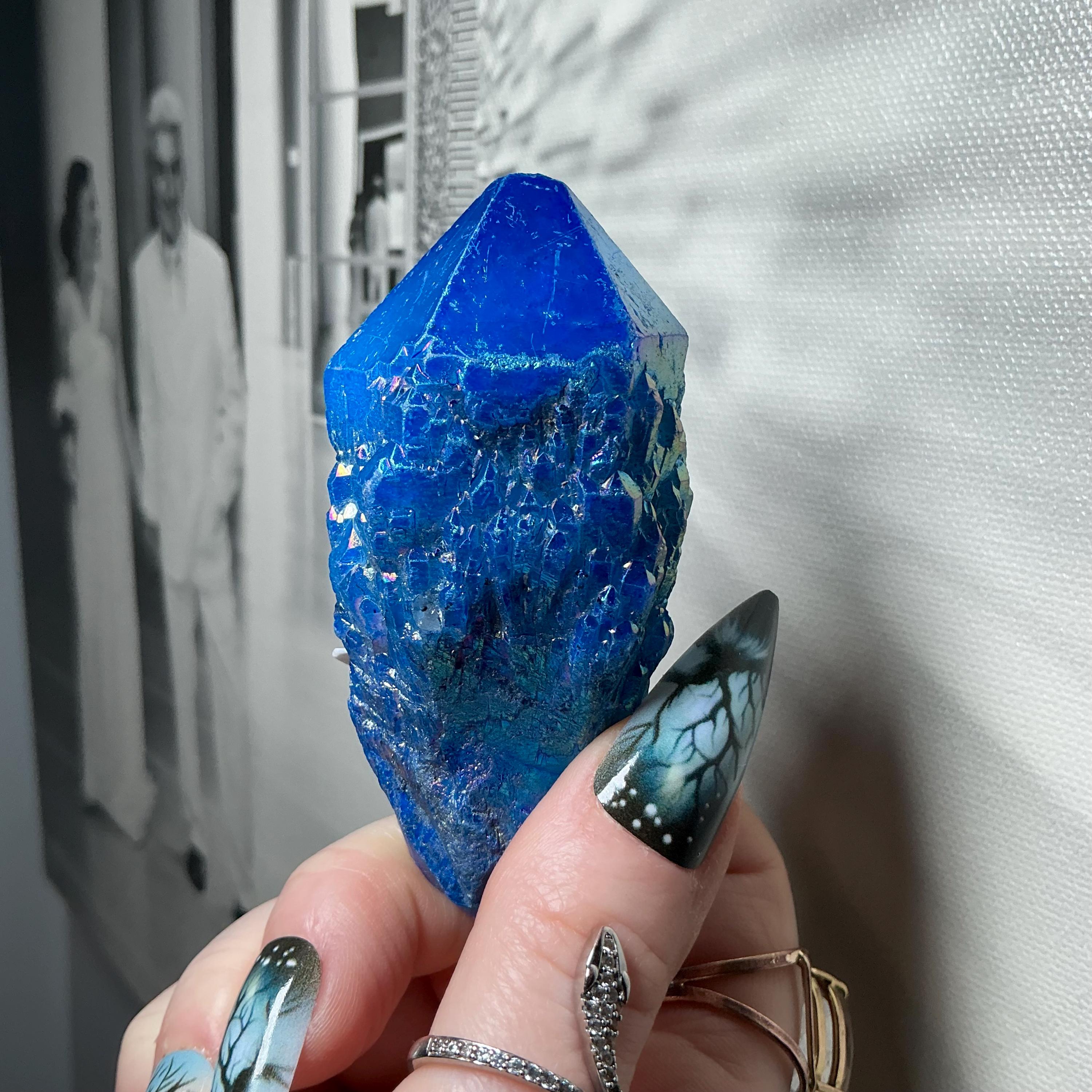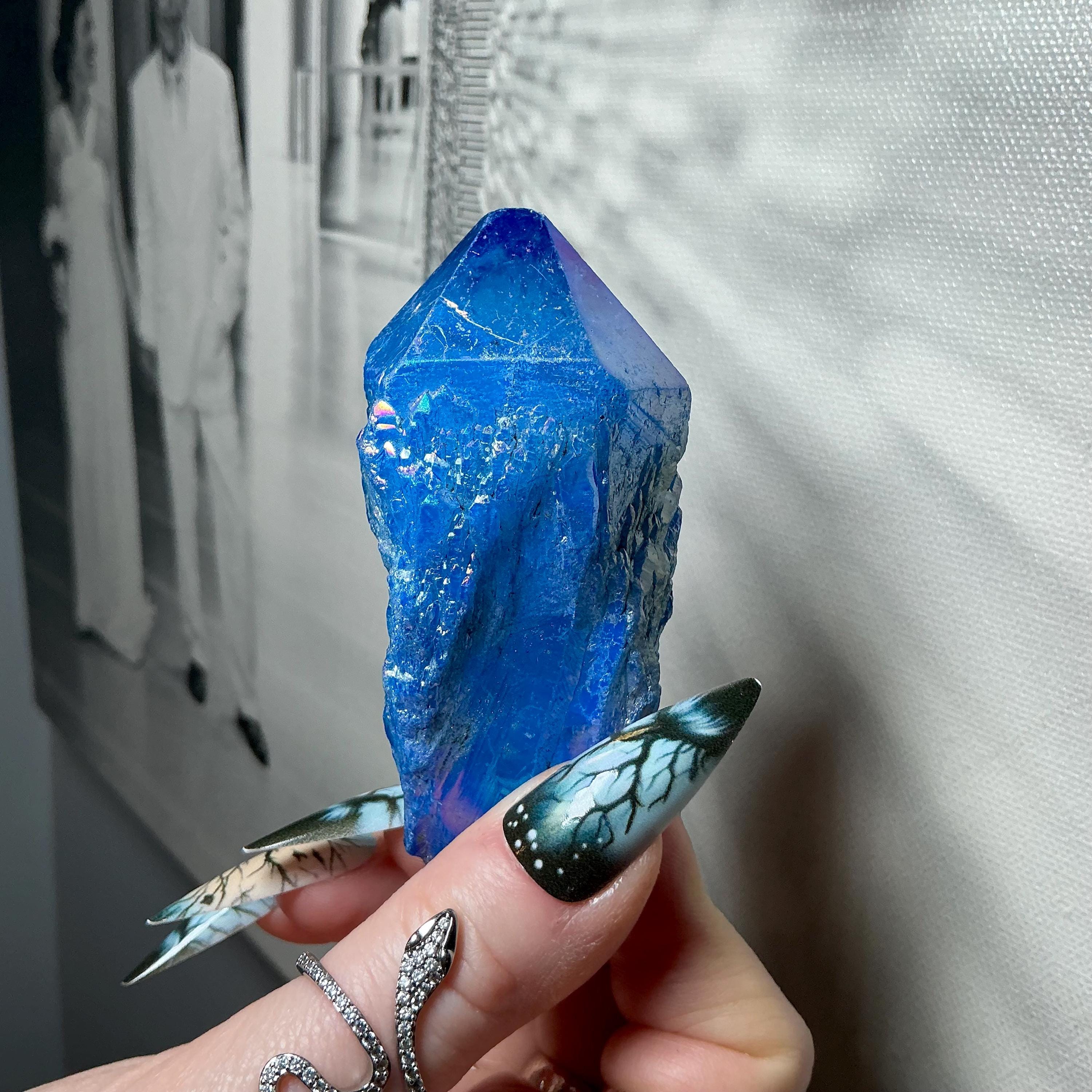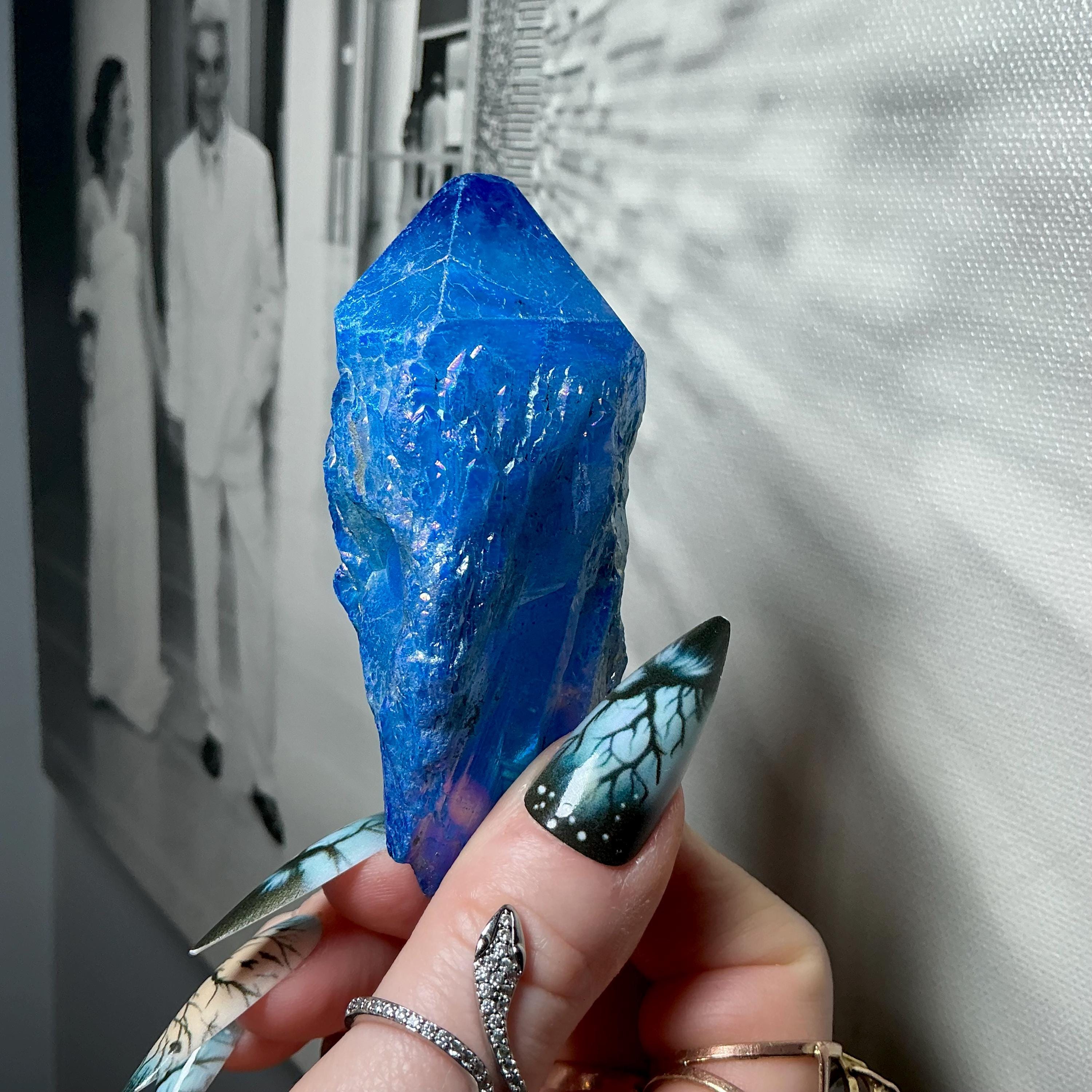 Aura Quartz Elestial Crystal Point ~ Sparkling Iridescent Blue ~ 3 1/2 oz. 3" Long