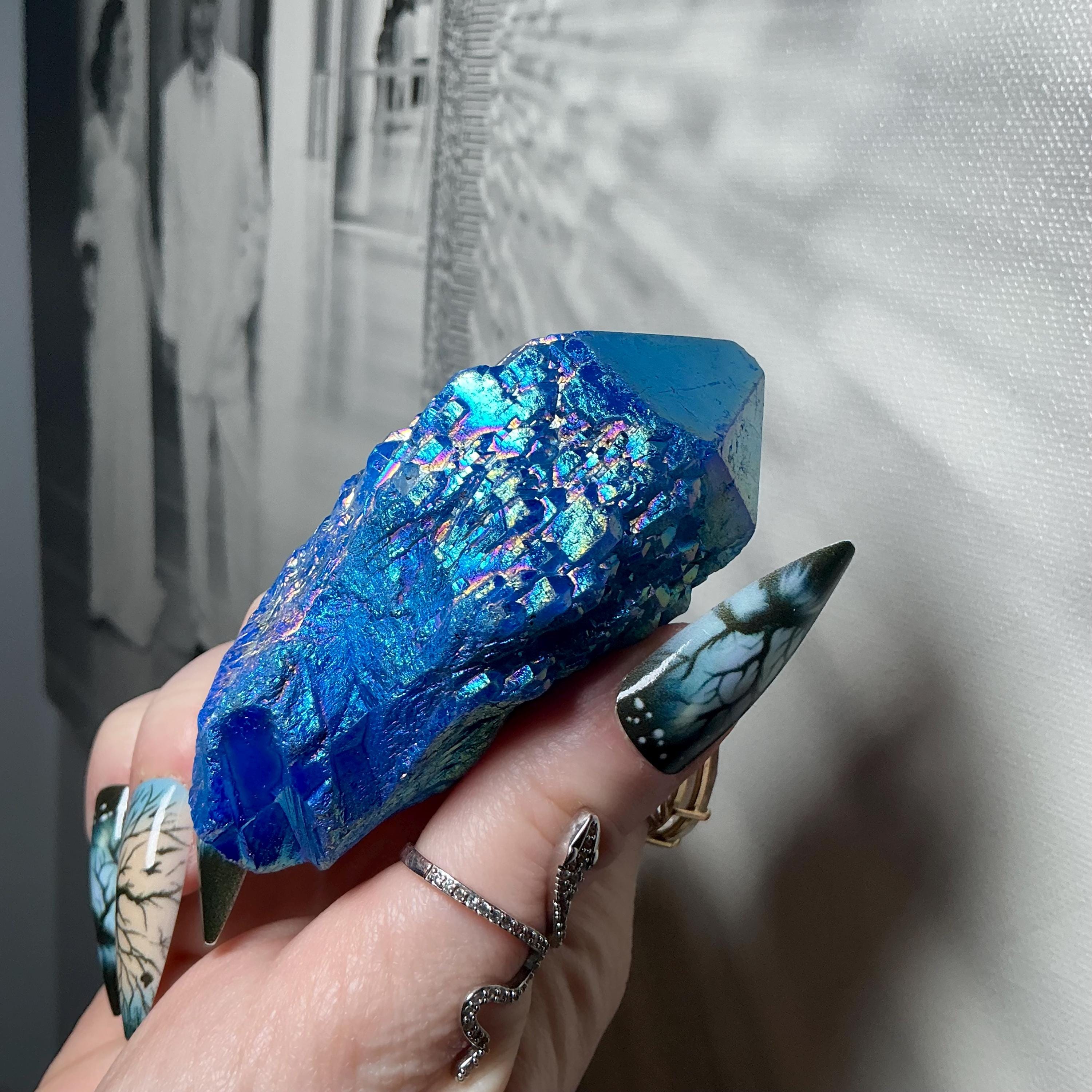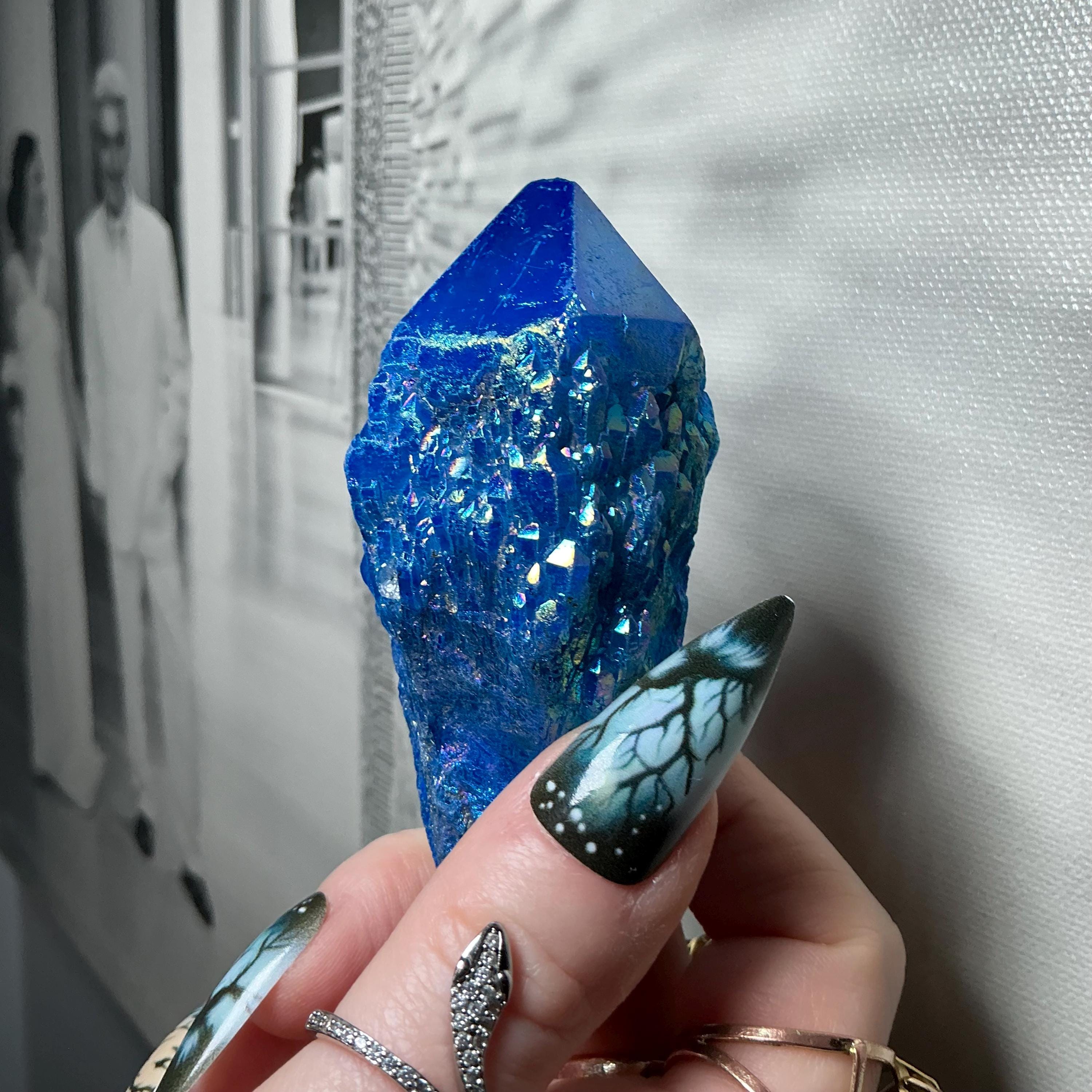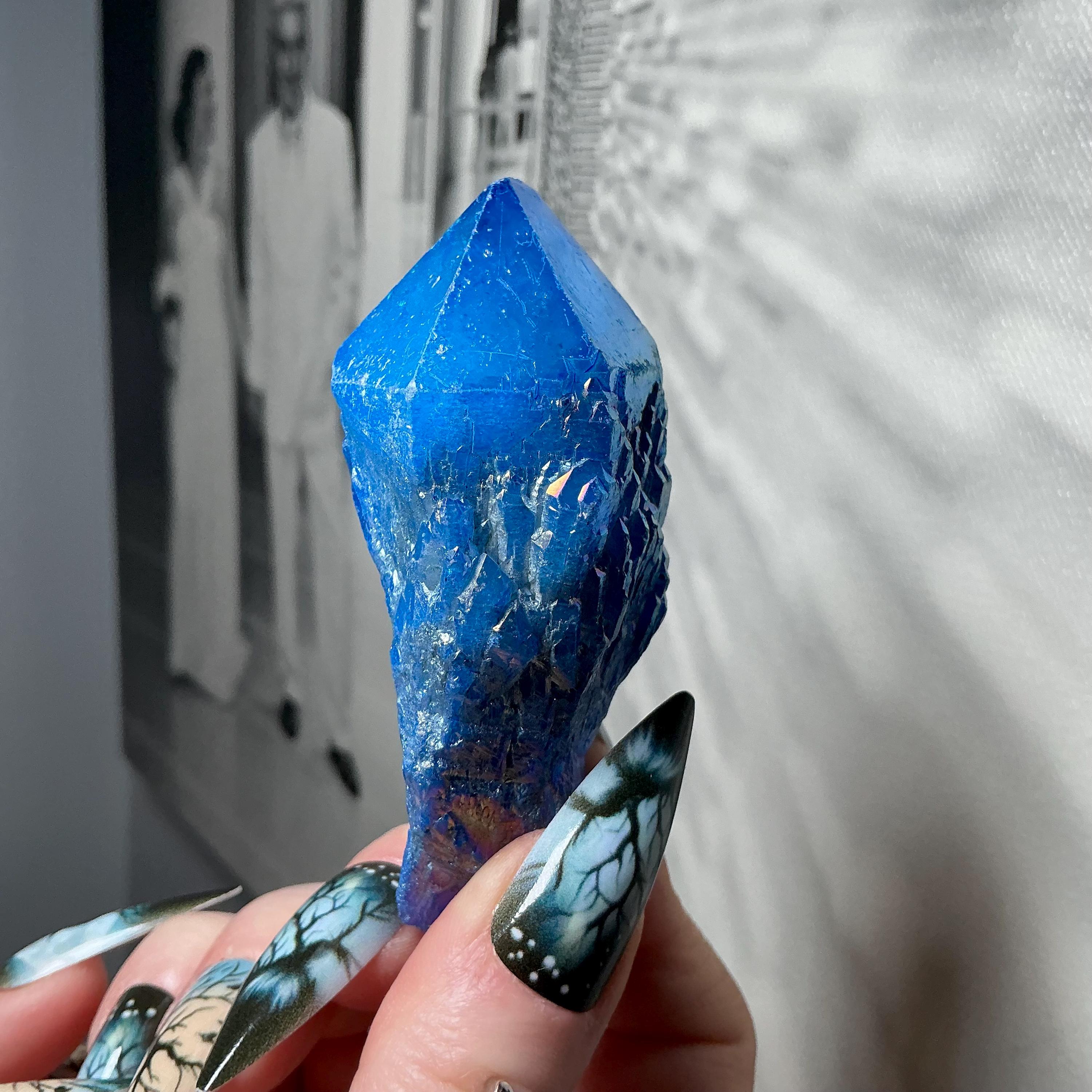 Aura Quartz Elestial Crystal Point ~ Sparkling Iridescent Blue ~ 3 1/2 oz. 3" Long