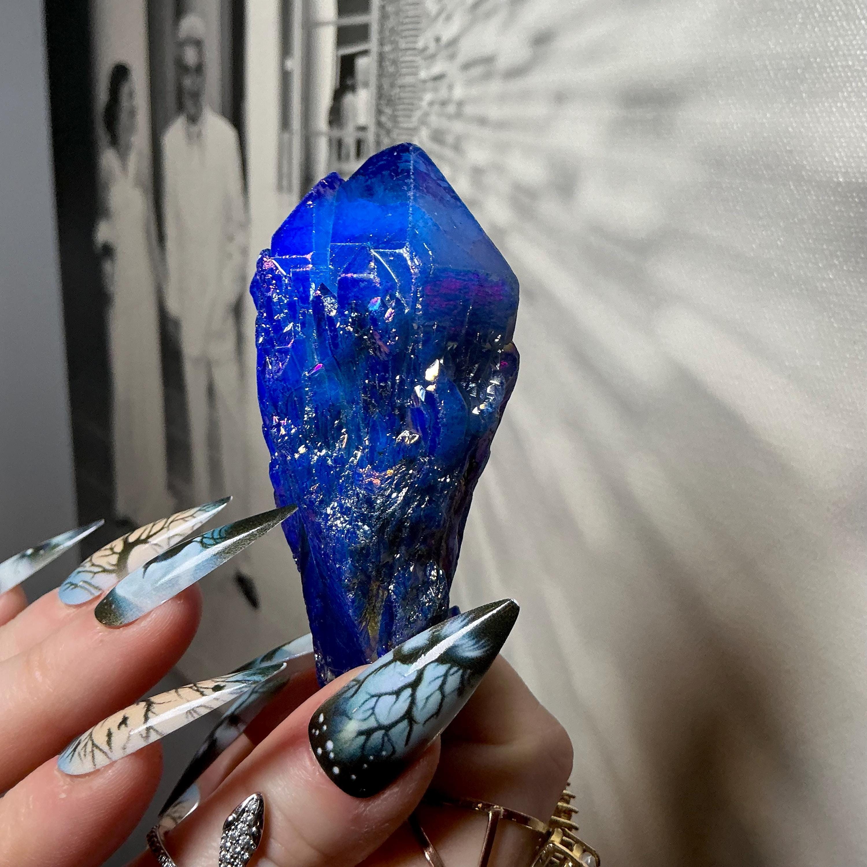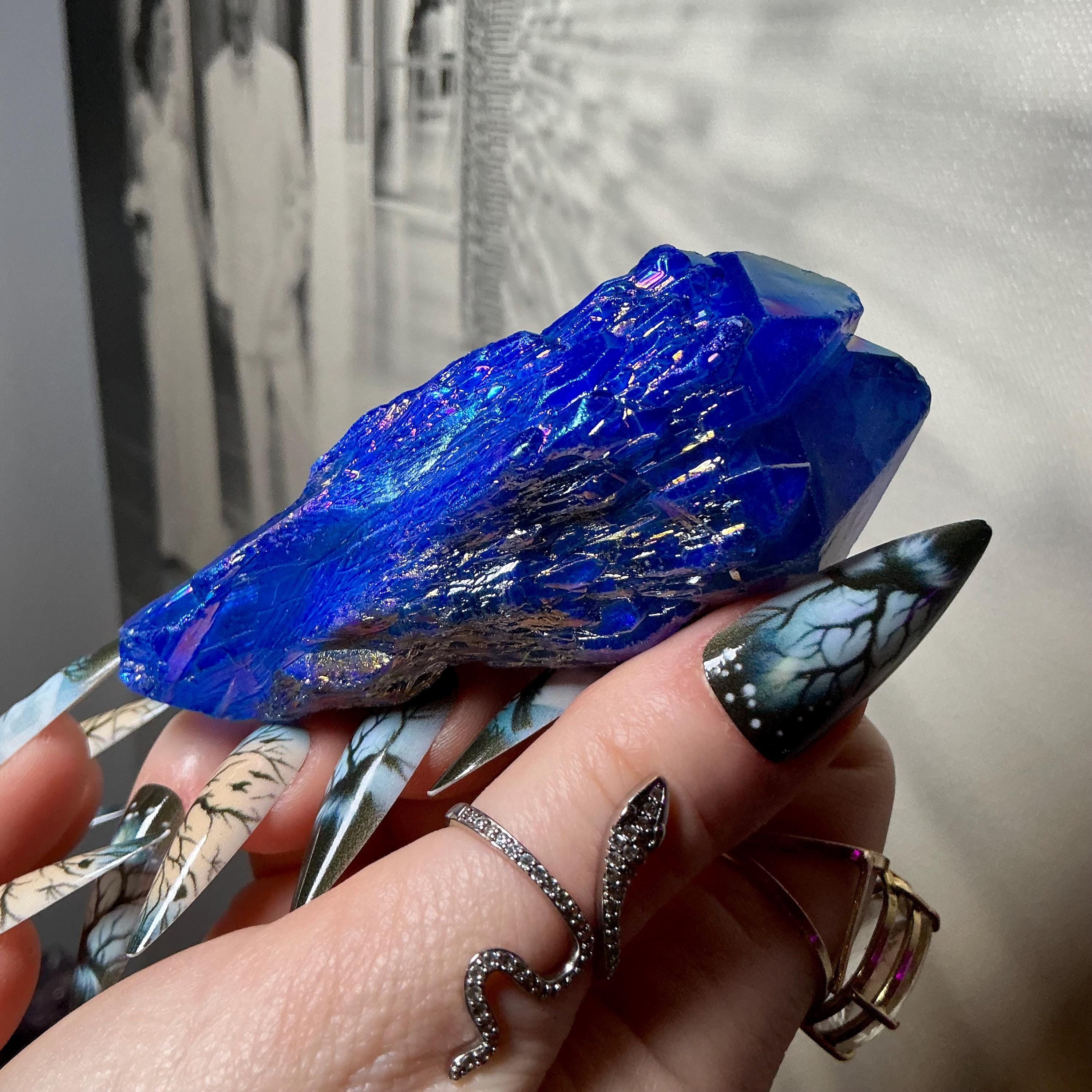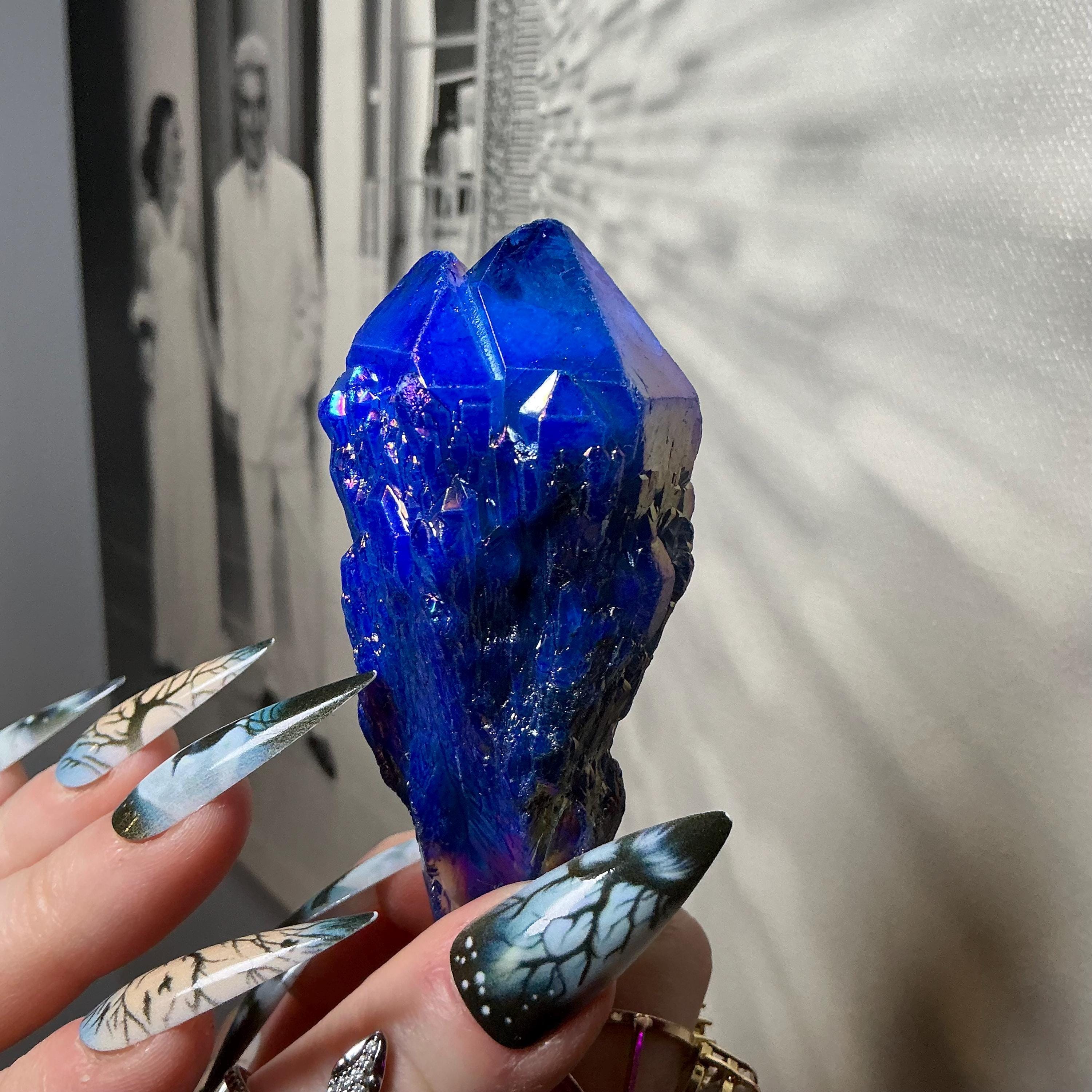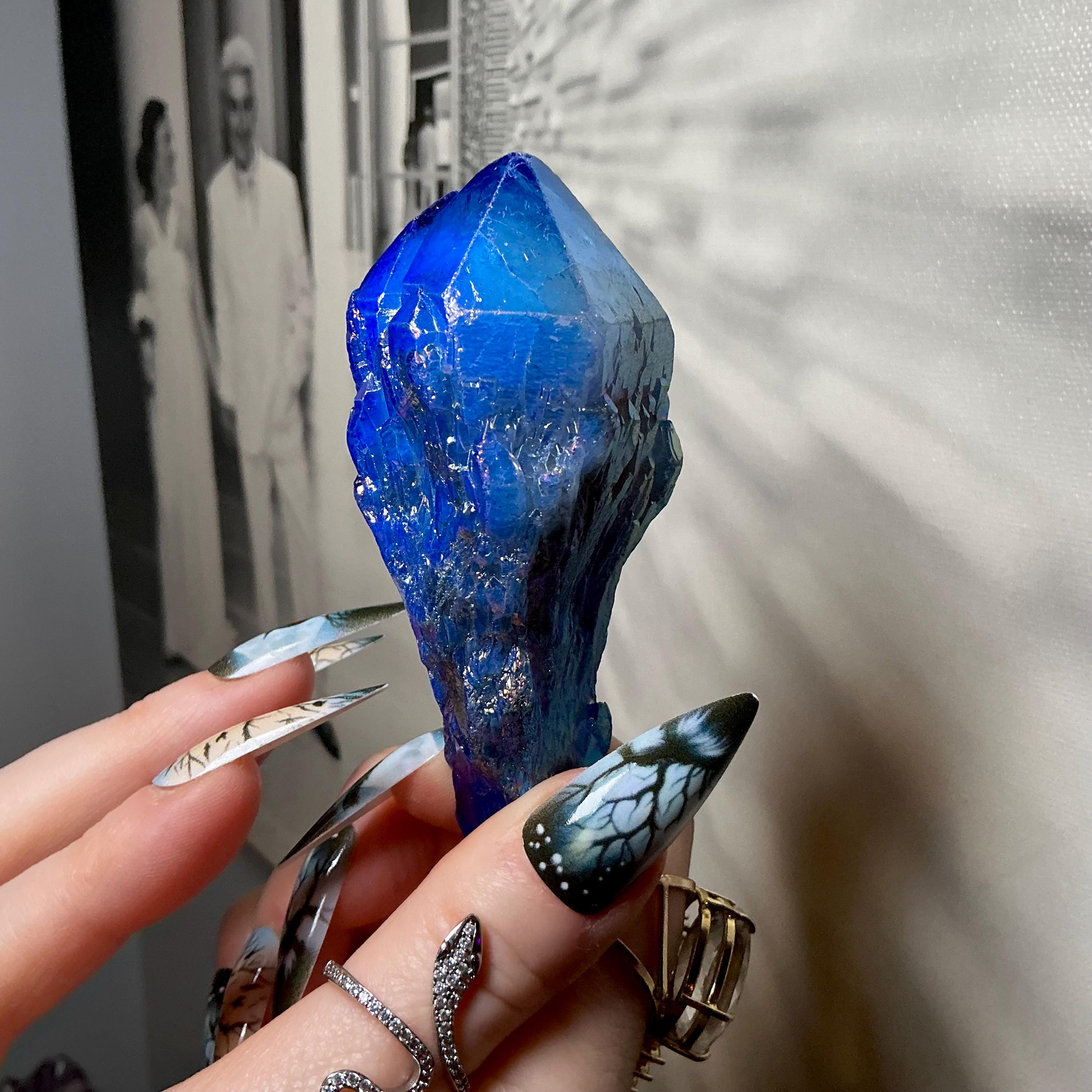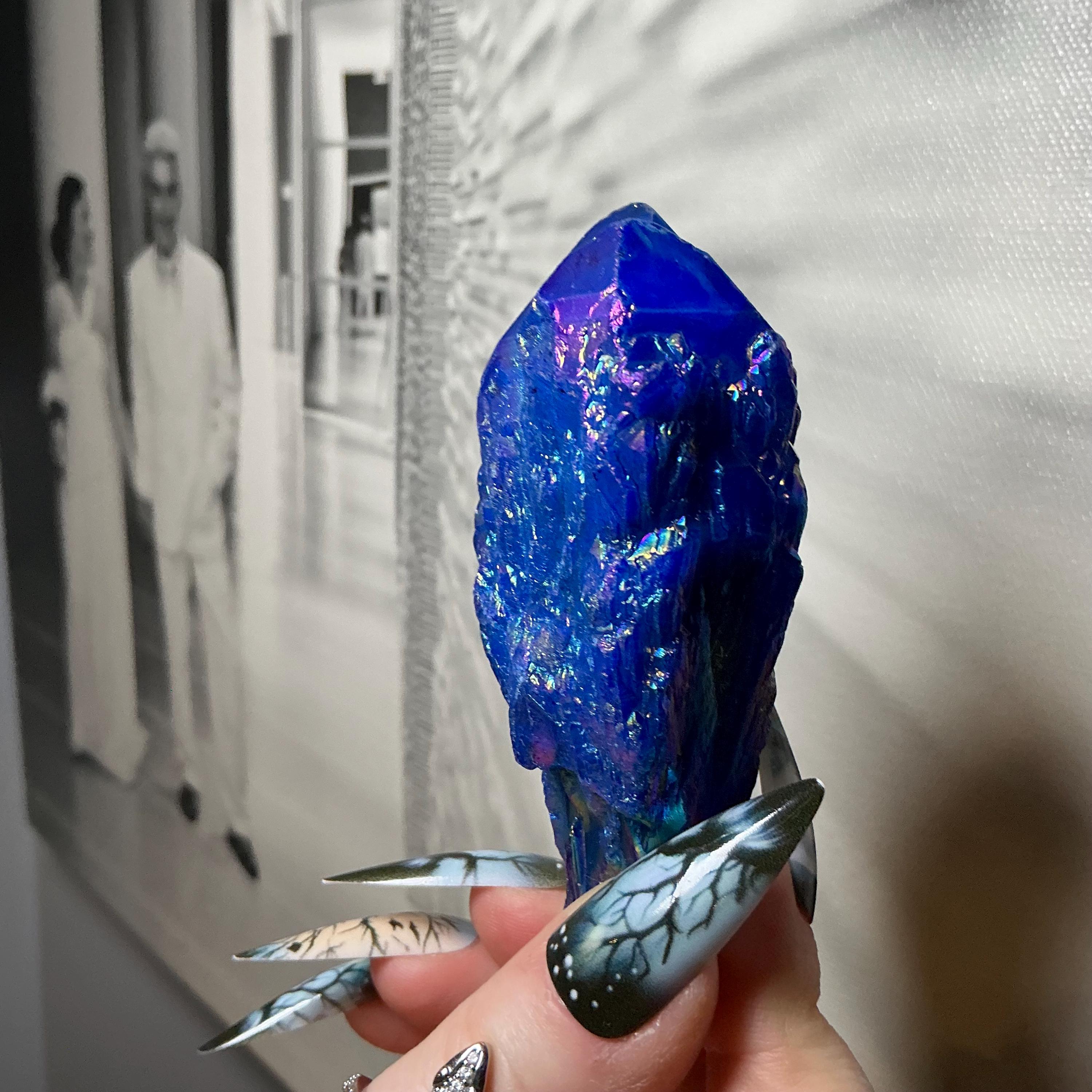 Aura Quartz Elestial Crystal Point ~ Sparkling Iridescent Blue ~ 4 oz. ~ 3 1/2" Long