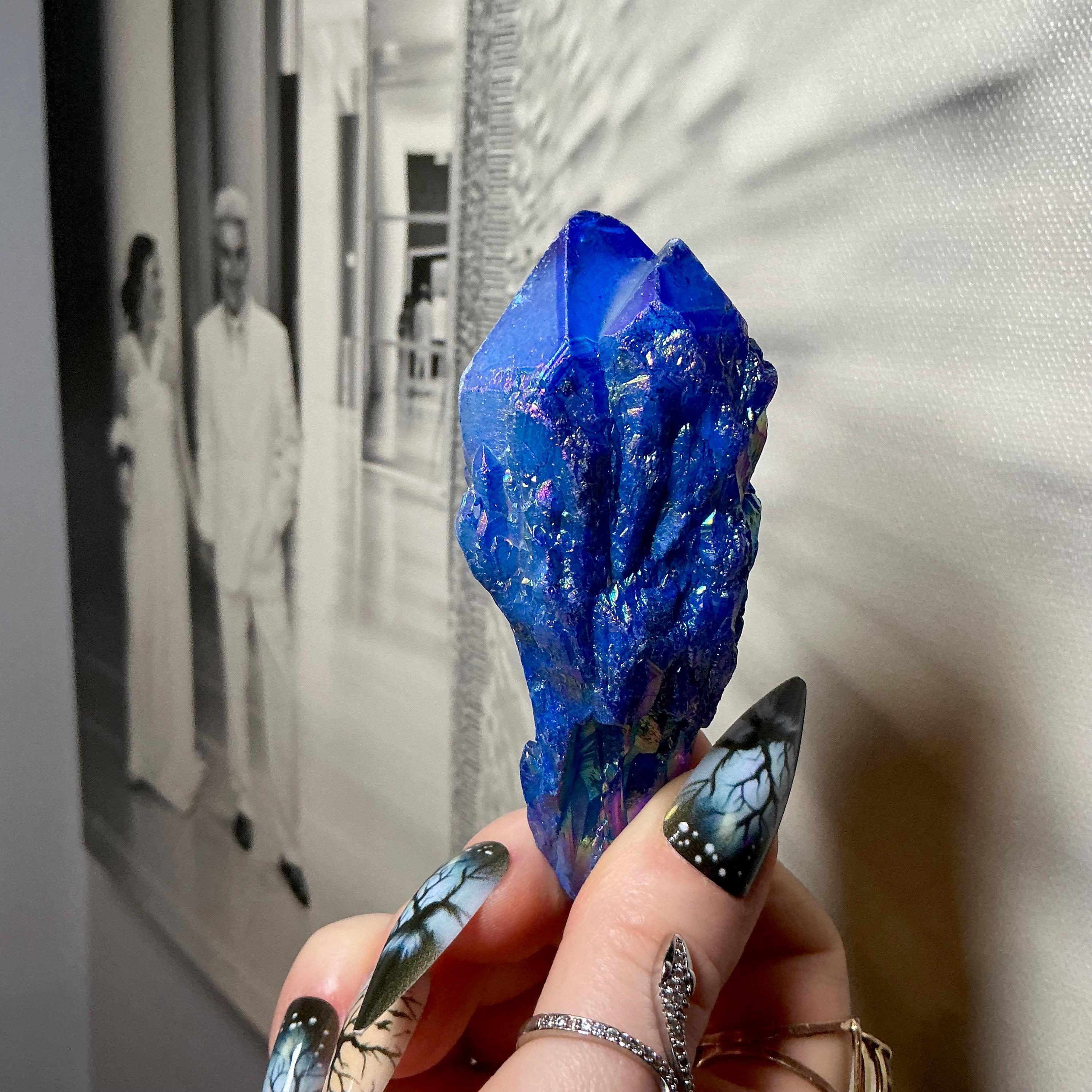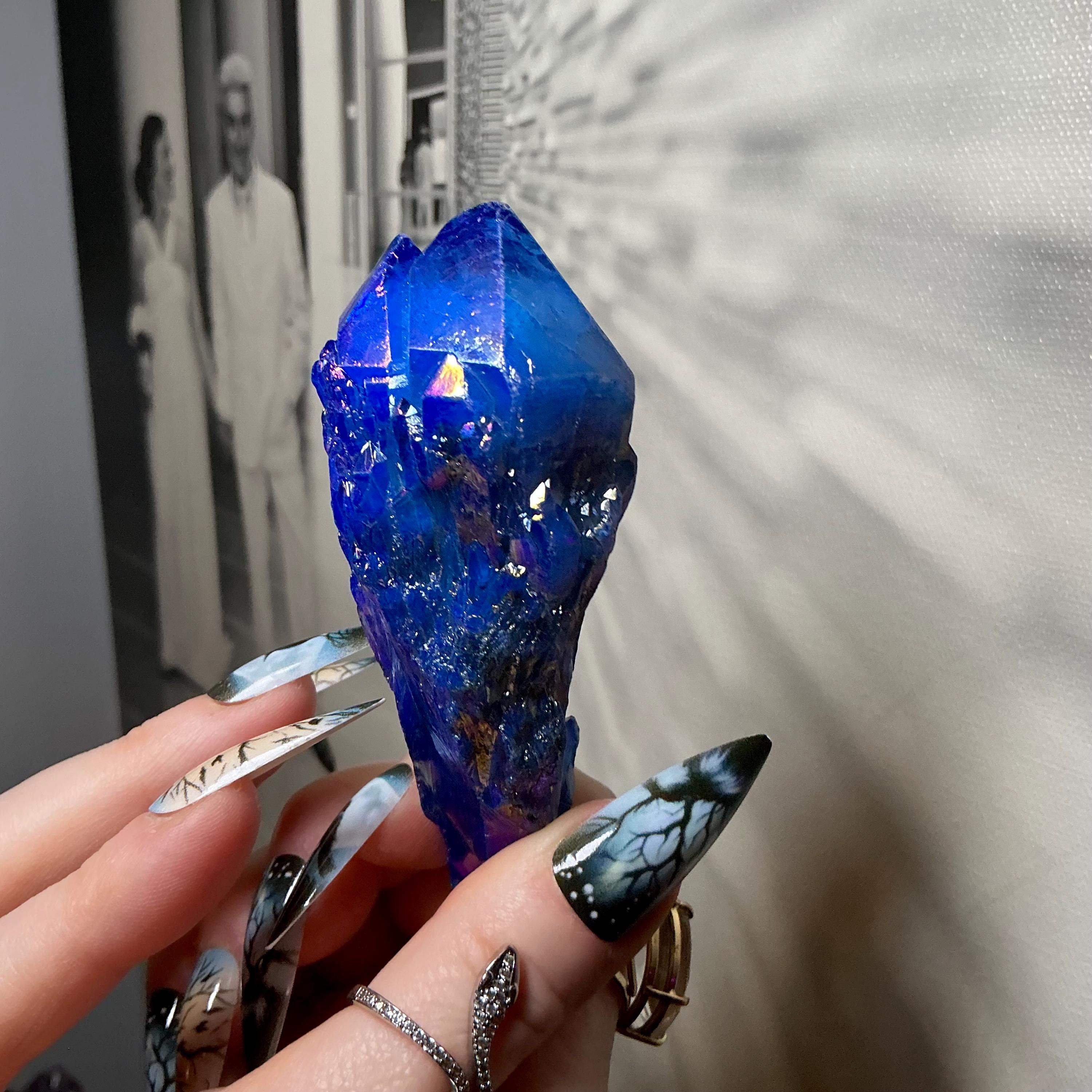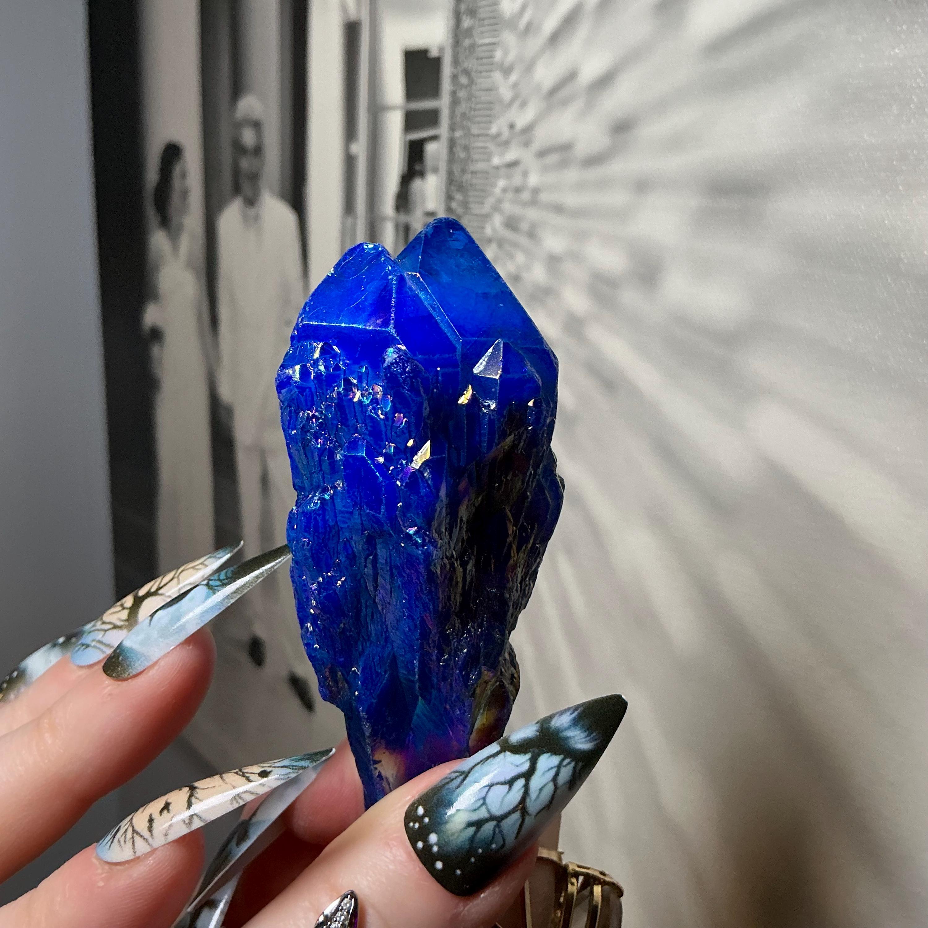 Iridescent Blue Aura Quartz Elestial Crystal ~ Large 4 oz. ~ 3 1/2" Long ~ Rainbow Iridescent Electric Points