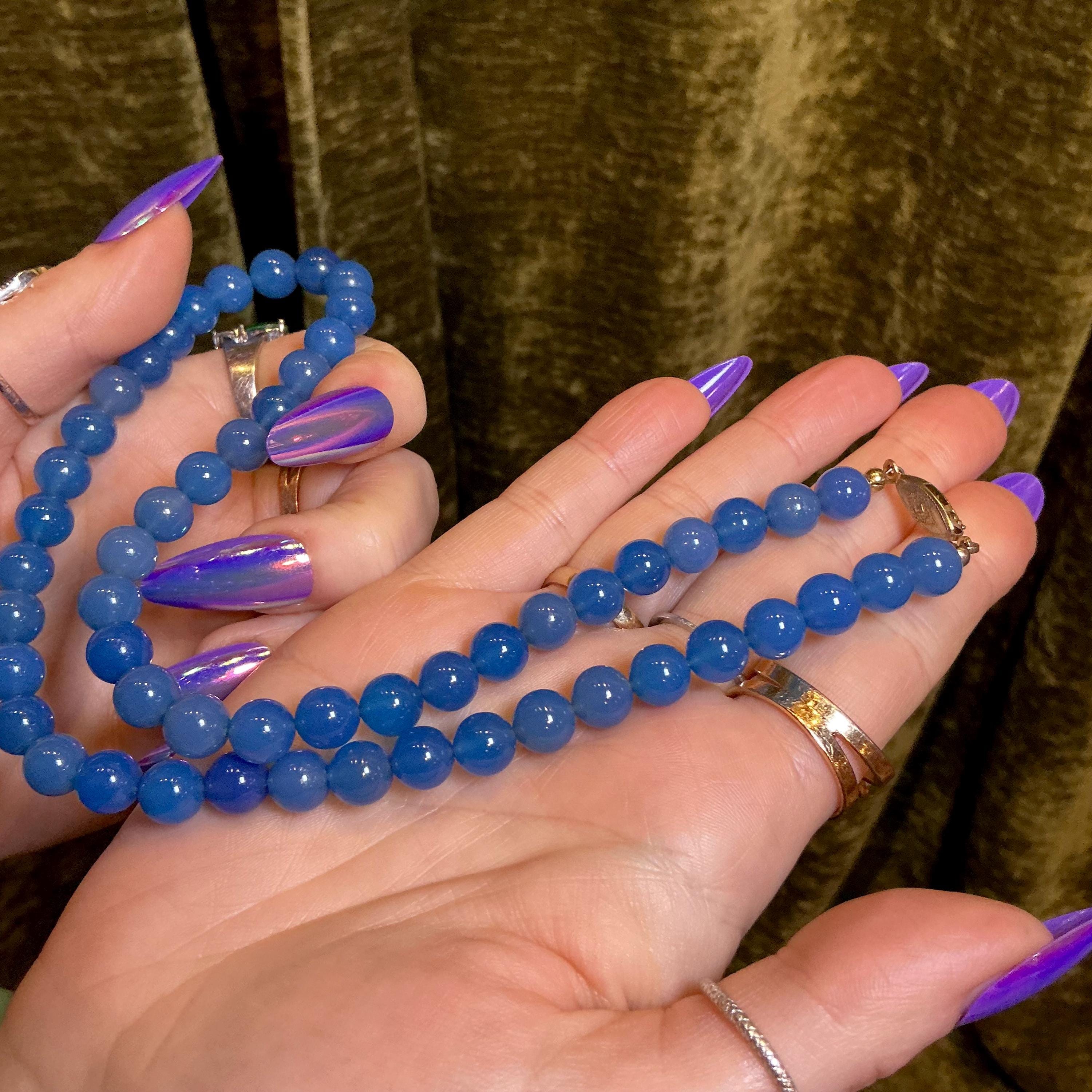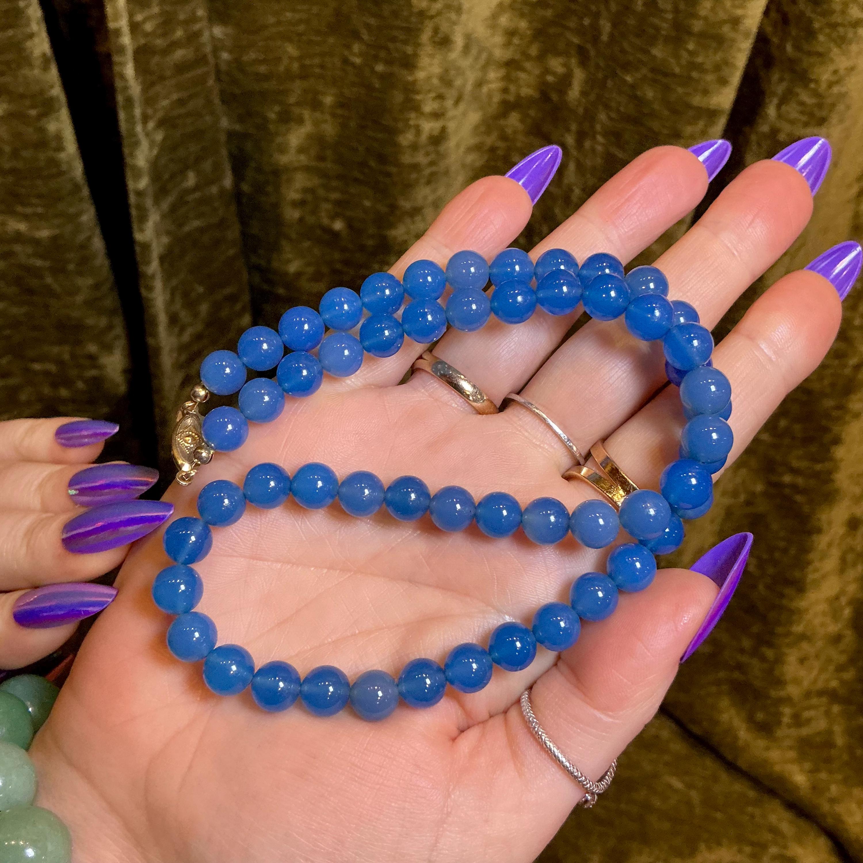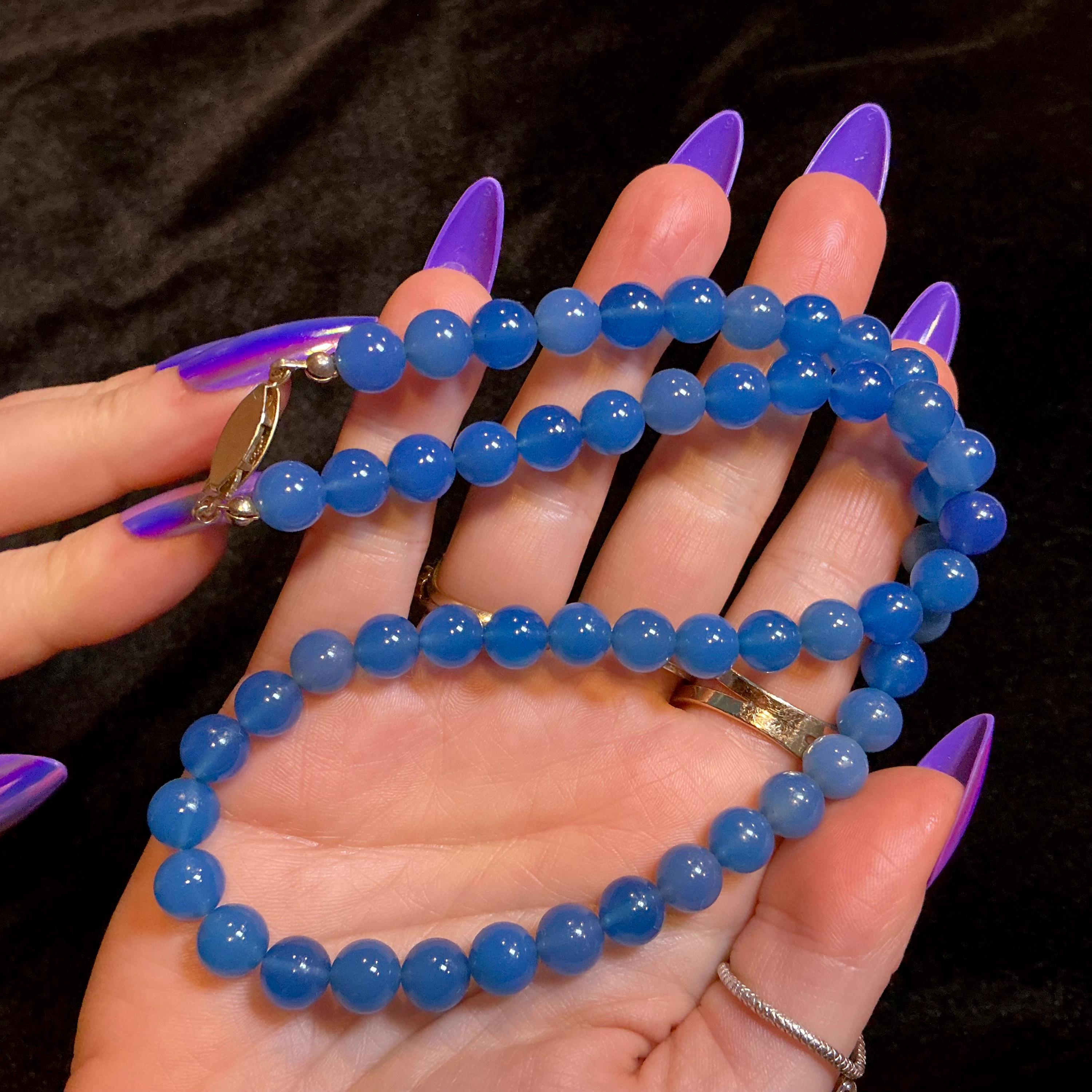 Vintage Chalcedony Necklace ~ Genuine Blue Beaded Gemstones ~ Crystal Goddess Sacred Adornment ~ 18 inches.